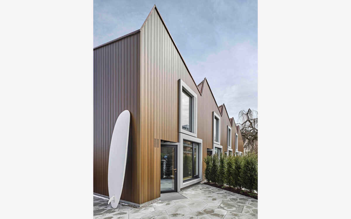 …und doch gibt es Orte, die einen an Ferien erinnern. Neuerdings sorgt eine Sequenz kleiner Häuser an den Gestaden des Zürichsees für Fernweh. Und für die Option, dieses dank der maritim inspirierten Architektur gleich an Ort und Stelle auszuleben. Die «Beach Houses» sind als ebenso kleinteilige wie aussichtsreiche Anlage auf einer Restparzelle entstanden. Sie verstehen es nicht nur, diese clever auszunutzen, sondern auch die Besonderheit des Ortes auf ganz unterschiedliche Weise zu zelebrieren.