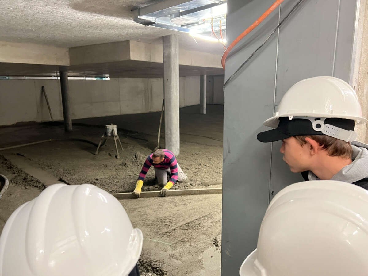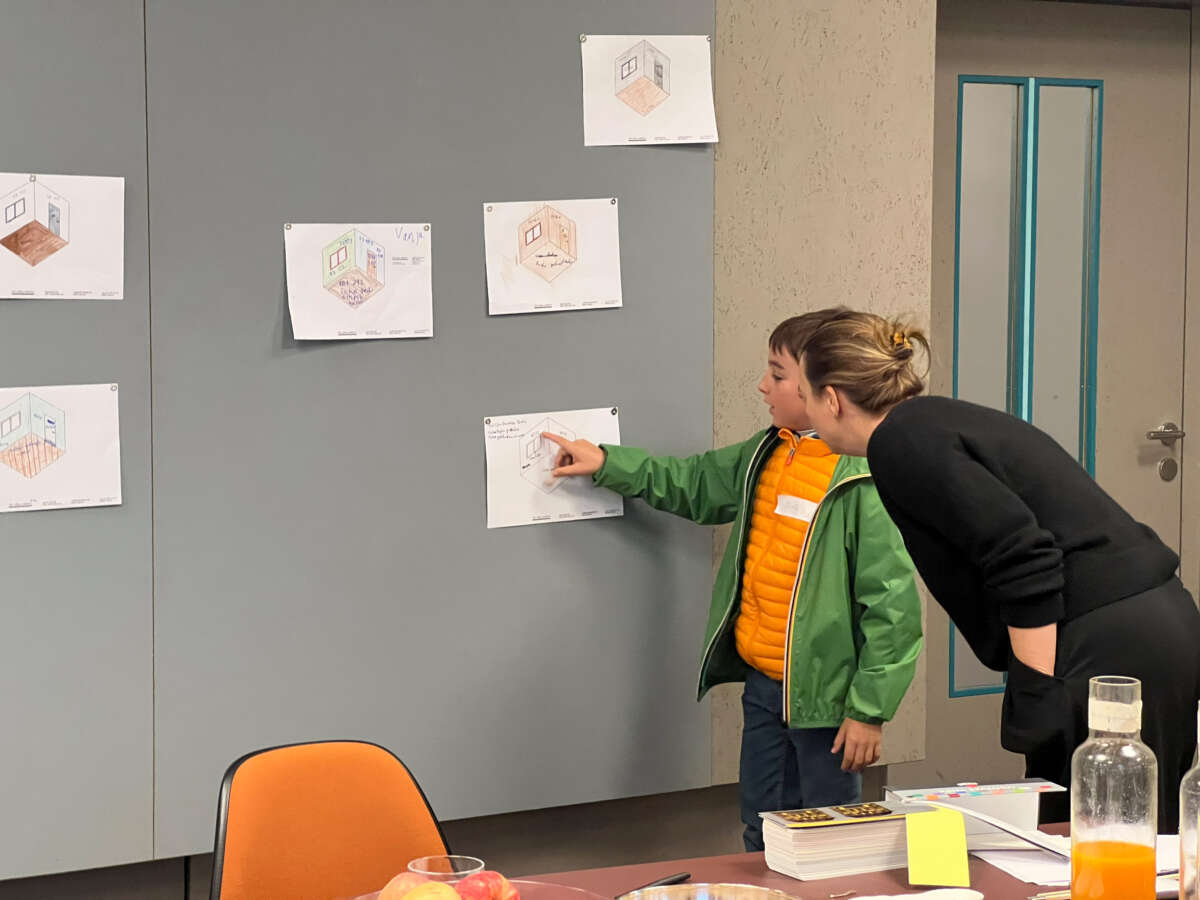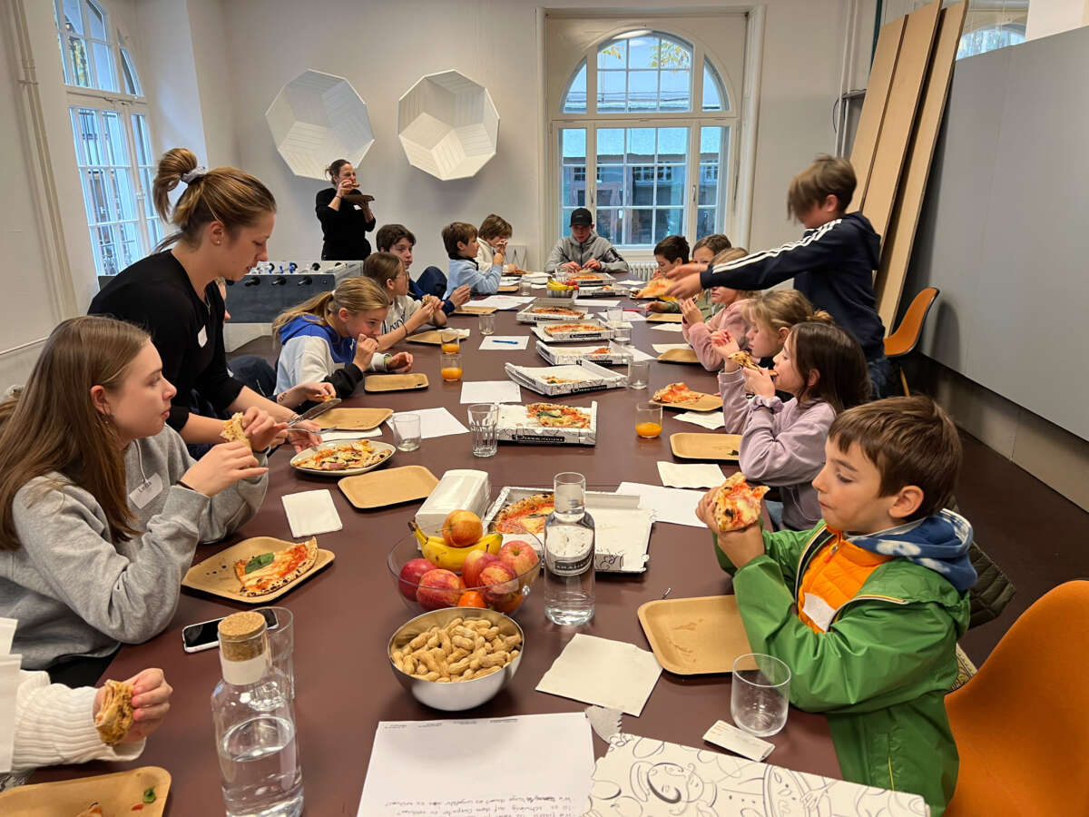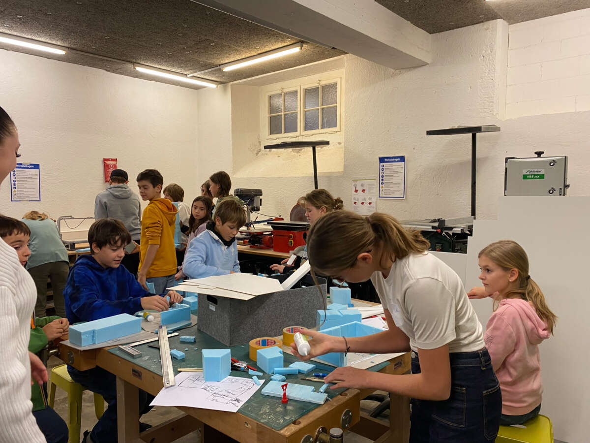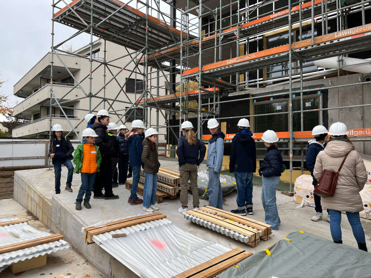 Es folgte der aufregende Gang auf die Baustelle (Was ist ein Rohbau? Wohnen da schon Leute?), wo oben gerade in Windeseile Parkett verlegt und unten Hartbeton gegossen wurde. Die Musterwohnung taxierten die kritischen Geister als zu dunkel, die detailverliebte Möblierung inklusive Kunststoffbrötchen in der Küche dagegen als umso gelungener. Eindrücke und Kritiken, die erst mal sacken mussten: Pizza, Glacé und Töggelikasten verschafften die nötige Erdung.