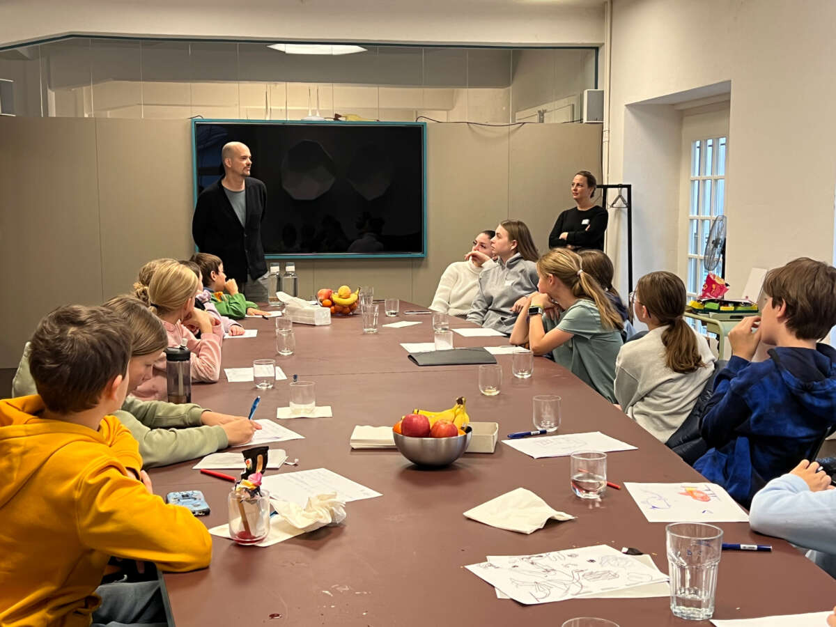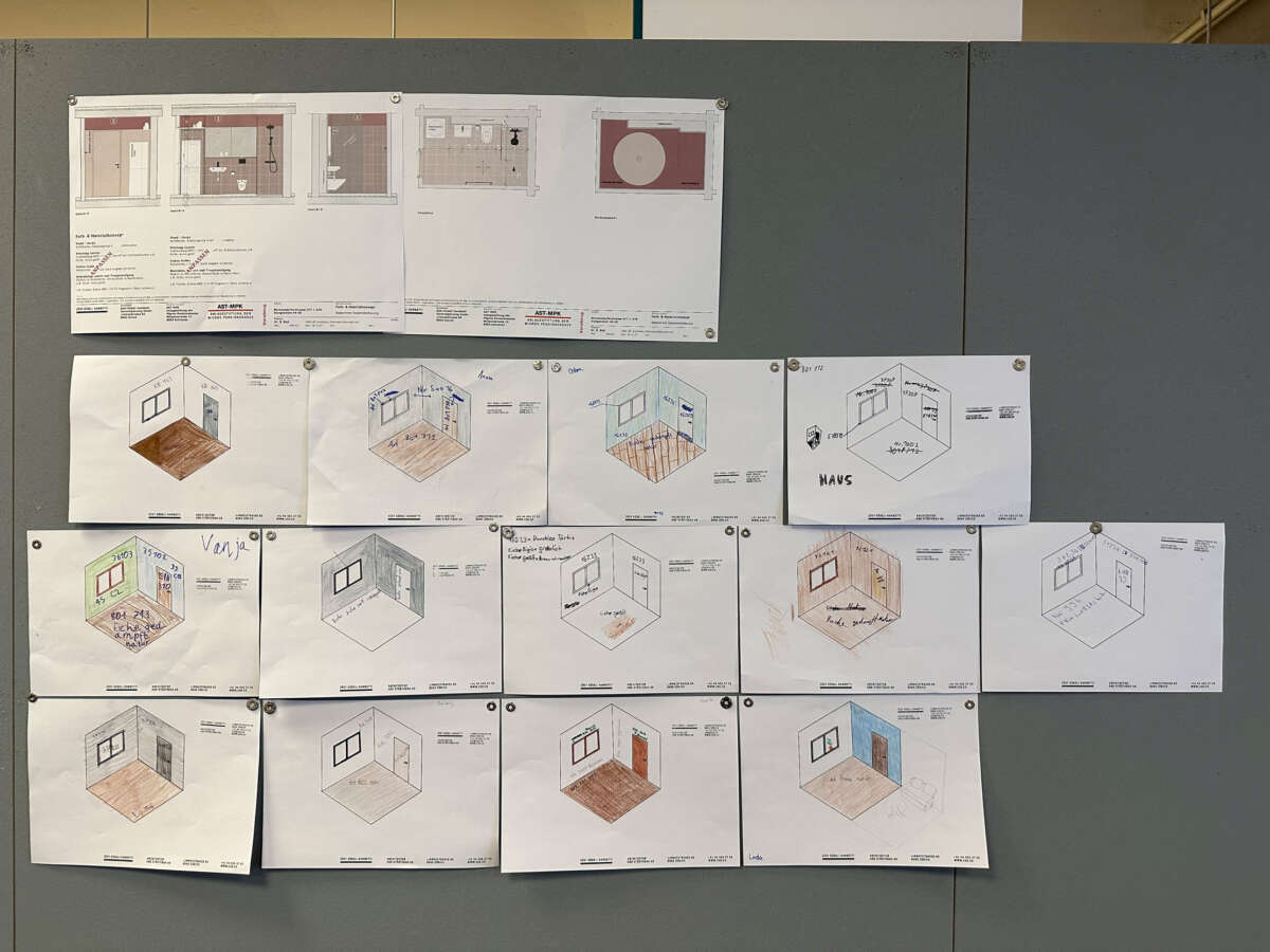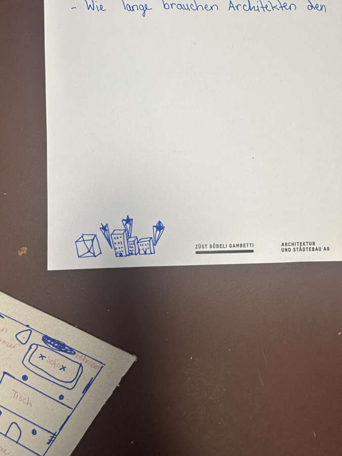 Nach einem ersten Warm up mit Freihandskizzieren ging es auf Tuchfühlung: Warst Du schon immer Chef? (Zufall.) Was ist Deine Hauptaufgabe? (Probleme lösen.) Was gefällt Dir am besten am Beruf? (Vom Plan zum fertigen Haus.)