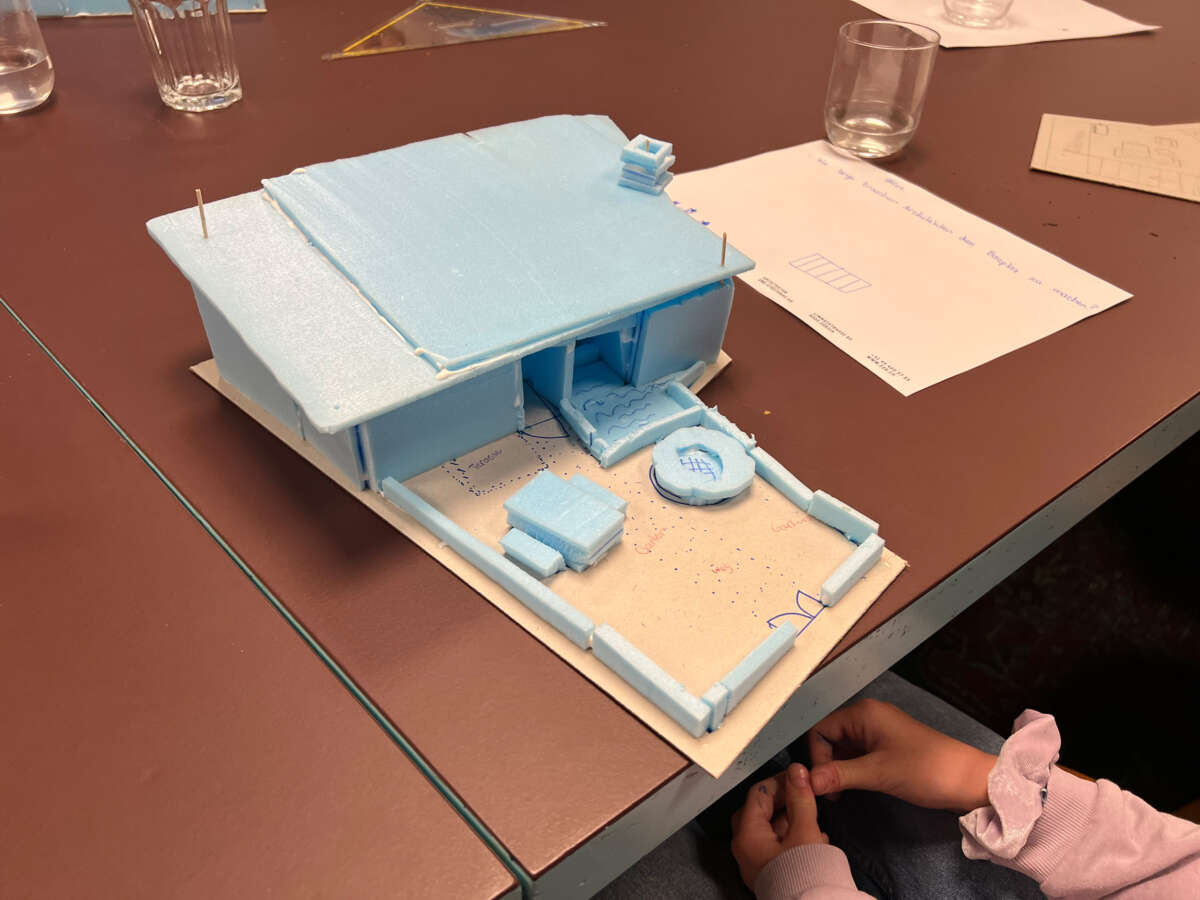 Beim Materialkonzept am Nachmittag standen Nachhaltigkeit und Umweltfragen ganz oben, Holz und Naturfarben sind beim Nachwuchs Trumpf. Ebenso zeigte der Modellbau der eigenen Traumhäuser, dass die Jugend eher konservativ tickt – und Fenster überbewertet sind. Viel wichtiger sind Whirlpool und Trittsteine im Garten.