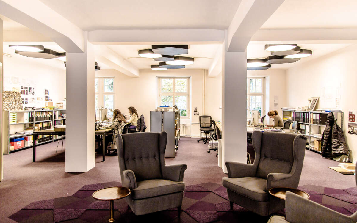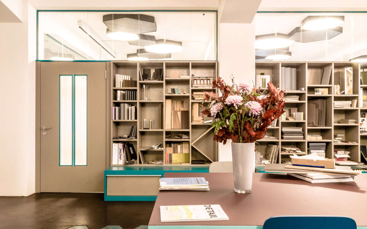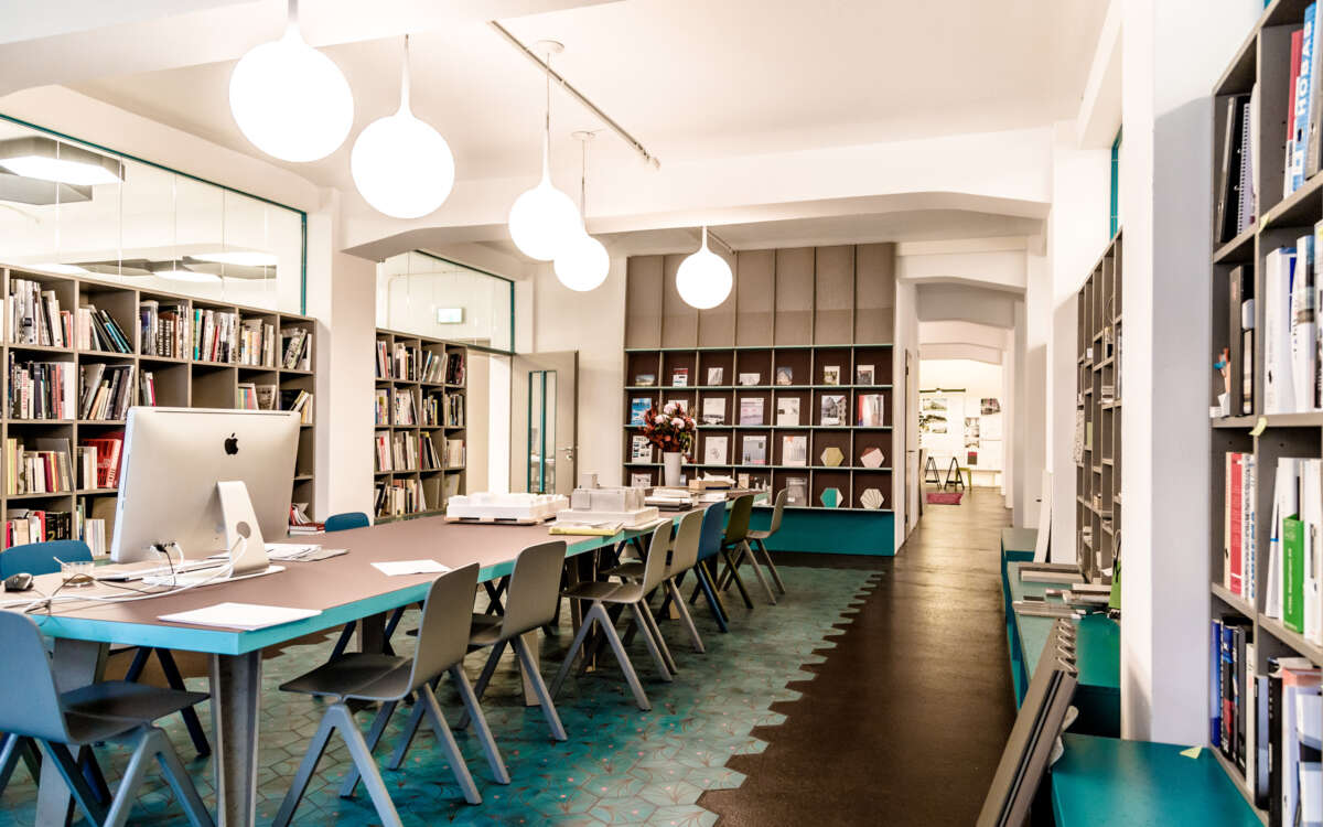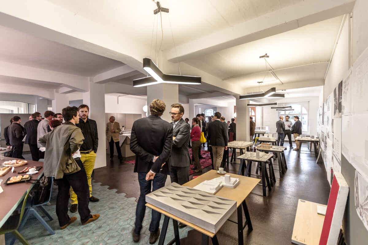 Unsere Räume gliedern sich in ein direkt vom Trottoir begehbares, öffentliches Hochparterre für Ausstellung, Aufenthalt, Bibliothek und Sitzungen, danach folgen zwei Obergeschosse mit den eigentlichen Arbeitsplätzen und schlussendlich ist im Keller die grosse Modellwerkstatt angeordnet.