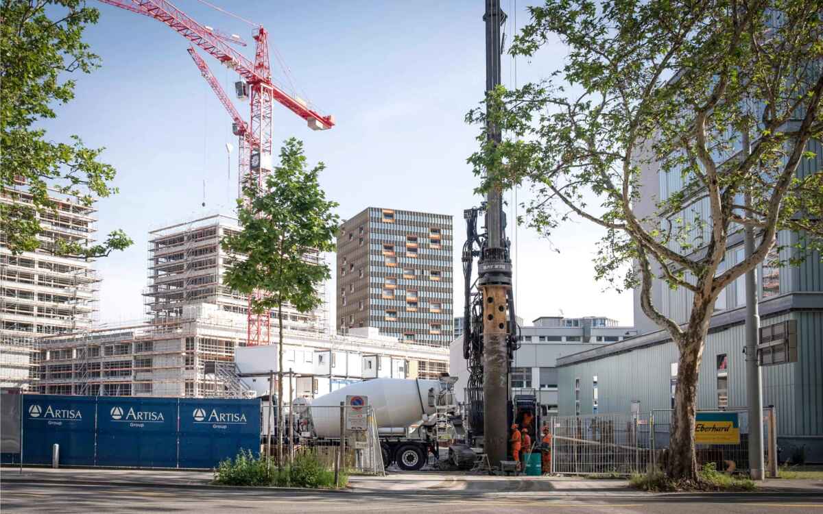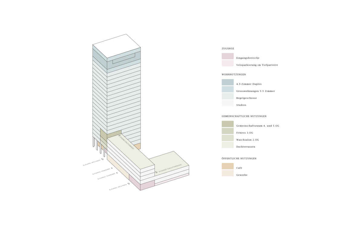 Wir erobern die dritte Dimension – und das in bester Gesellschaft. Direkt neben dem WolkenWerk-Ensemble wird unser jüngstes Kind und Beitrag zur Leutschenbacher Skyline bald 80 Meter in den Himmel wachsen. Damit kratzt es zwar noch nicht an den Wolken, verfolgt aber anstelle des einst geplanten, gewerblichen Regelbaus hochgesteckte Ziele: Seine elegante Silhouette soll dereinst unterschiedliche Wohnpräferenzen, Gemeinschaftsräume und Dachgärten vereinen und dem rückseitig geplanten «Inneren Garten» des Quartiers einen gebührenden Auftakt verschaffen. Zugleich geht es auch darum, dass der Turm würdig auf die Hagenholzstrasse trifft und sie belebt – mittels eines entsprechend choreografierten Sockelbaus…