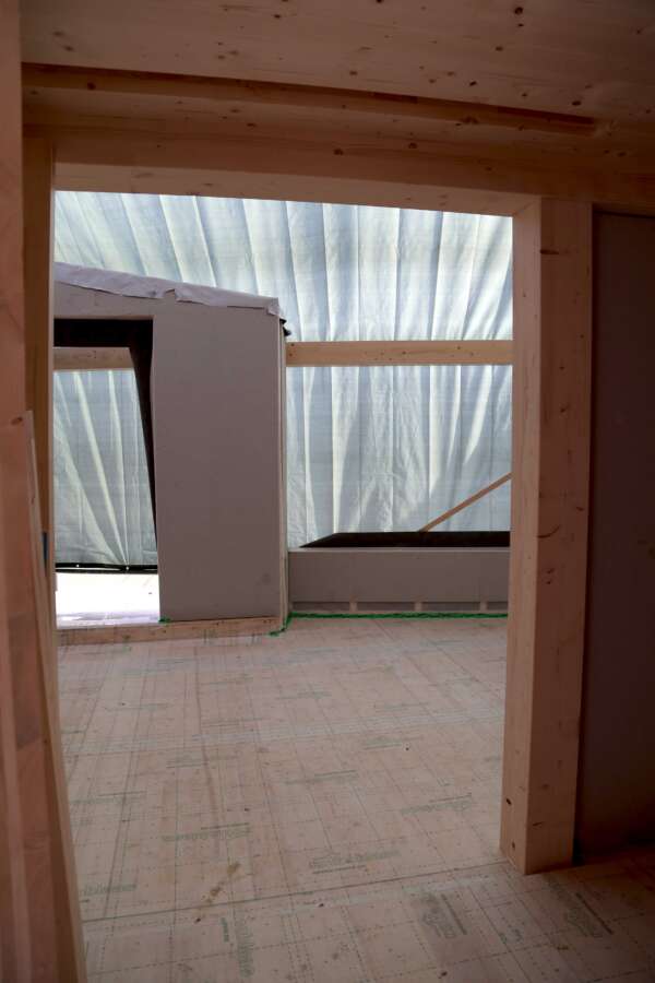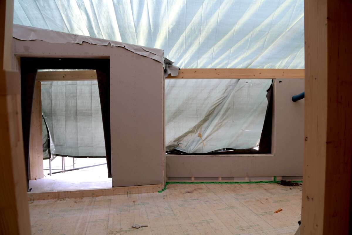 Der umherschweifende Blick beim Gang durch das Unfertige lässt andere Perspektiven zu, die – durch Licht, Löcher und Hüllen gefiltert – auch neue Eindrücke bringen. Bilder, die von einer Reise in die Welt zwischen Materie und Atmosphäre, zwischen Ort und Übergang, zwischen Fantasie und Konkretem erzählen …