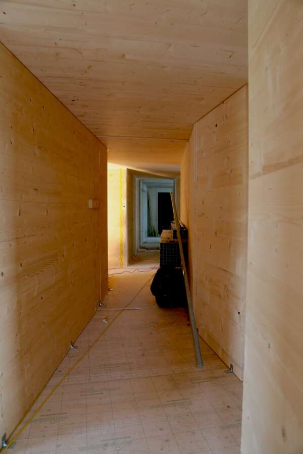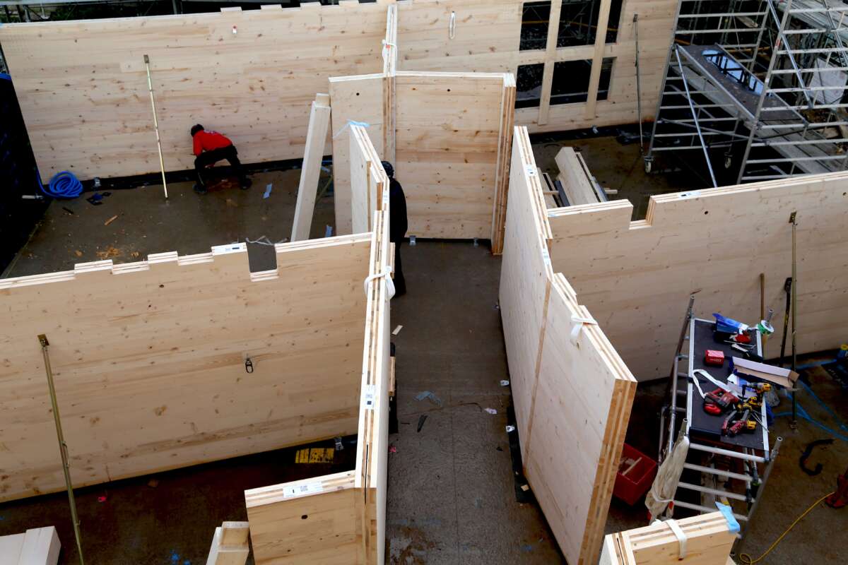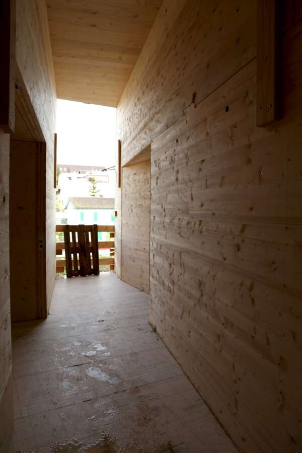 Kibako – japanisch für Holzkiste – liegt in Klotens Norden, an der Nahtstelle zwischen Gross und Klein. Es ist ein Holzbau, unter dessen langgestrecktem, gemeinsamen Dach sich ein System kleiner, präzis gefügter Holzkisten vereint.