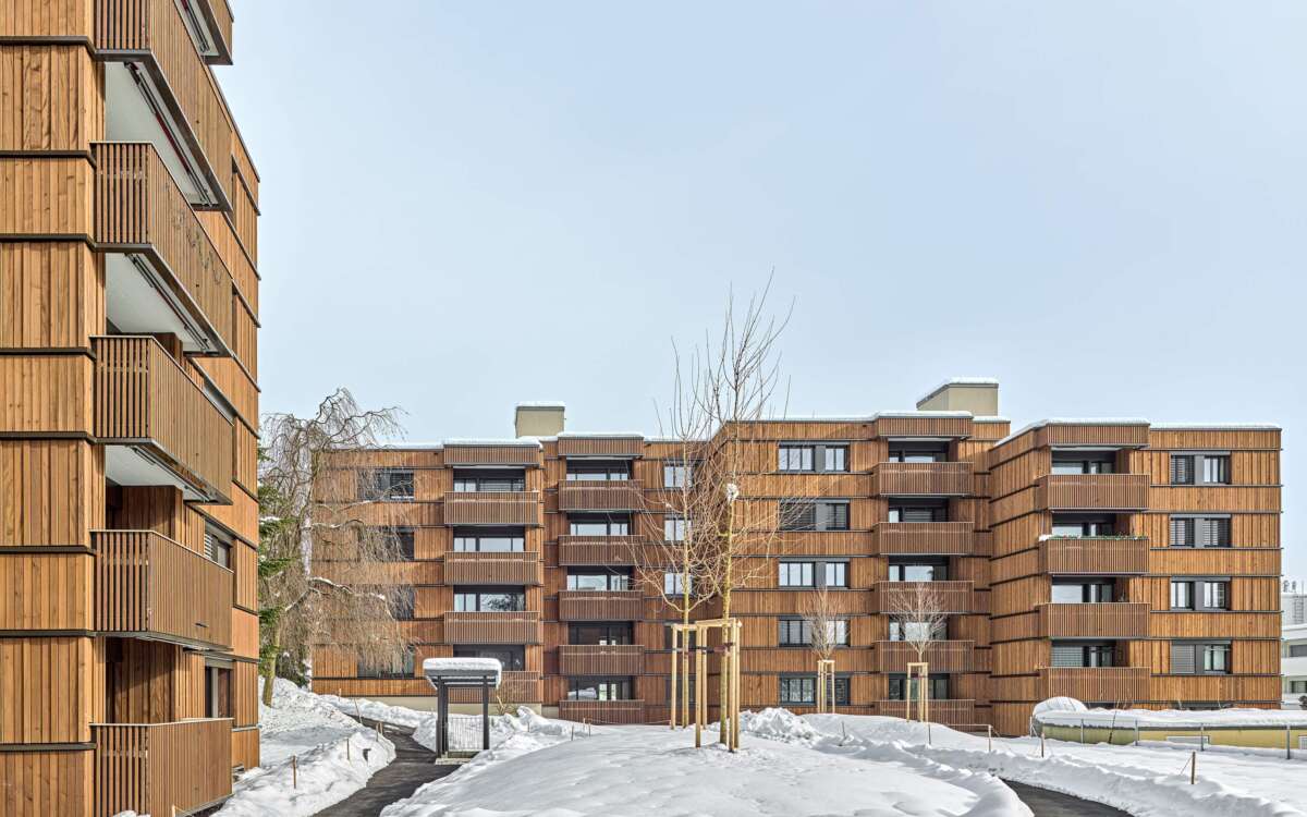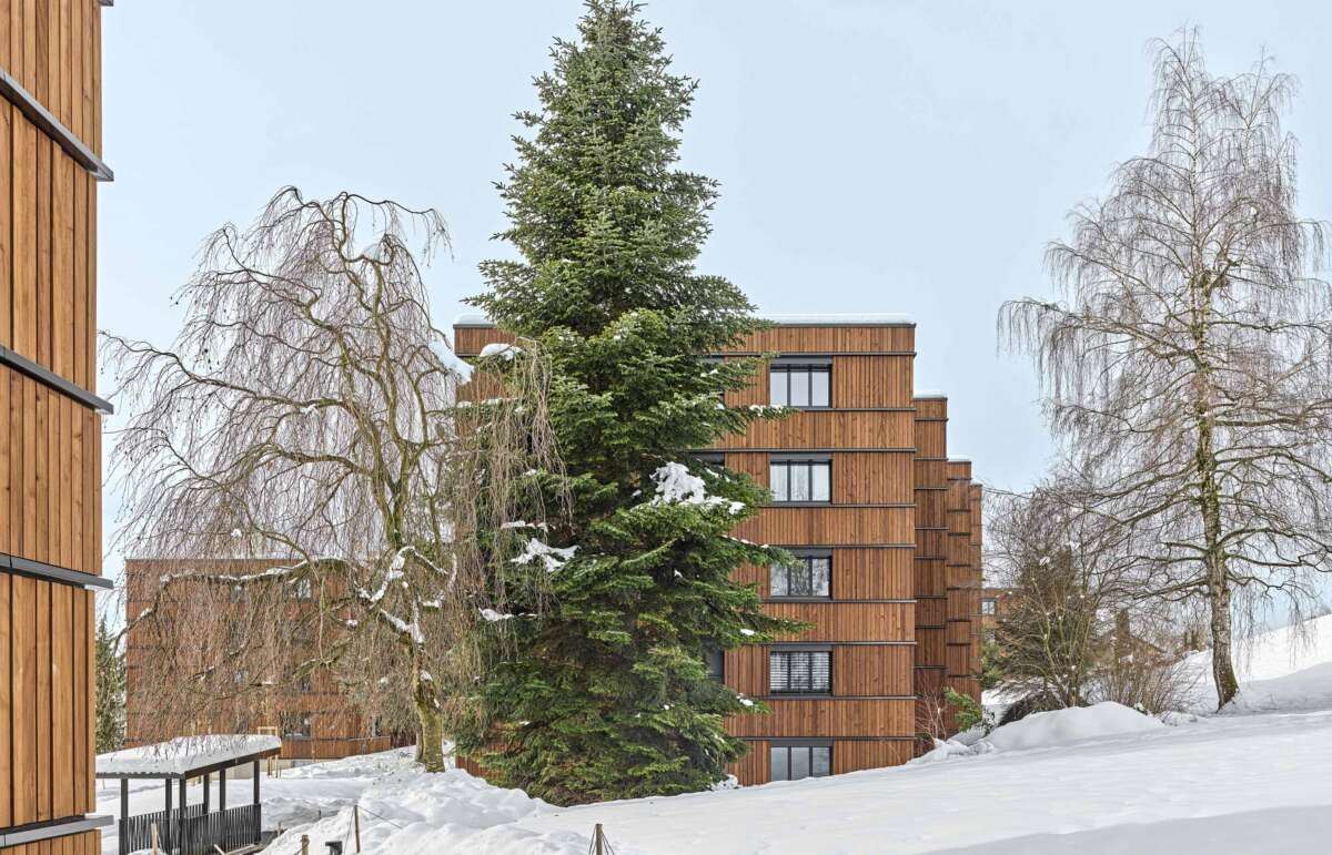 Nun steht die 1972er-Überbauung in einem nachhaltigen Holzgewand da. Es ist eine Transformation, die auch Bezüge zur nahen Landwirtschaft sowie dem alten Baumbestand macht.
