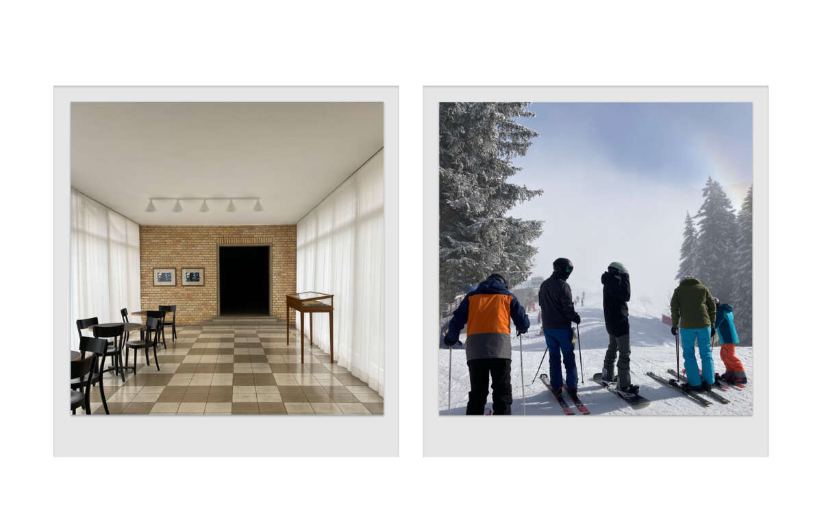 Kunst & Schnee sind derzeit in aller Munde, wenn auch meist in anderem Sinne. Tatsächlich hat Skifahren in Zeiten des Klimawandels einen gewissen Beigeschmack bekommen. Gut, dass es dieses Jahr für Skischam-Befallene, Tal-Kleber, Nicht-Wedler und Knochen-Morsche ein neu eingeführtes Kulturprogramm als Alternative gab. Wer aber hätte gedacht, dass es so viele Parallelen zwischen Schnee- und Kunstpiste geben würde? Auf jeden Fall lieferten beide Universen den perfekten (Nähr-) Boden für die gemeinsame Apéro- und Fondue-Runde danach …