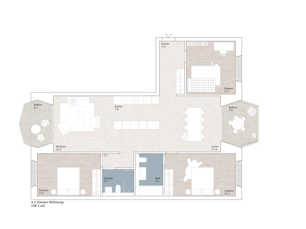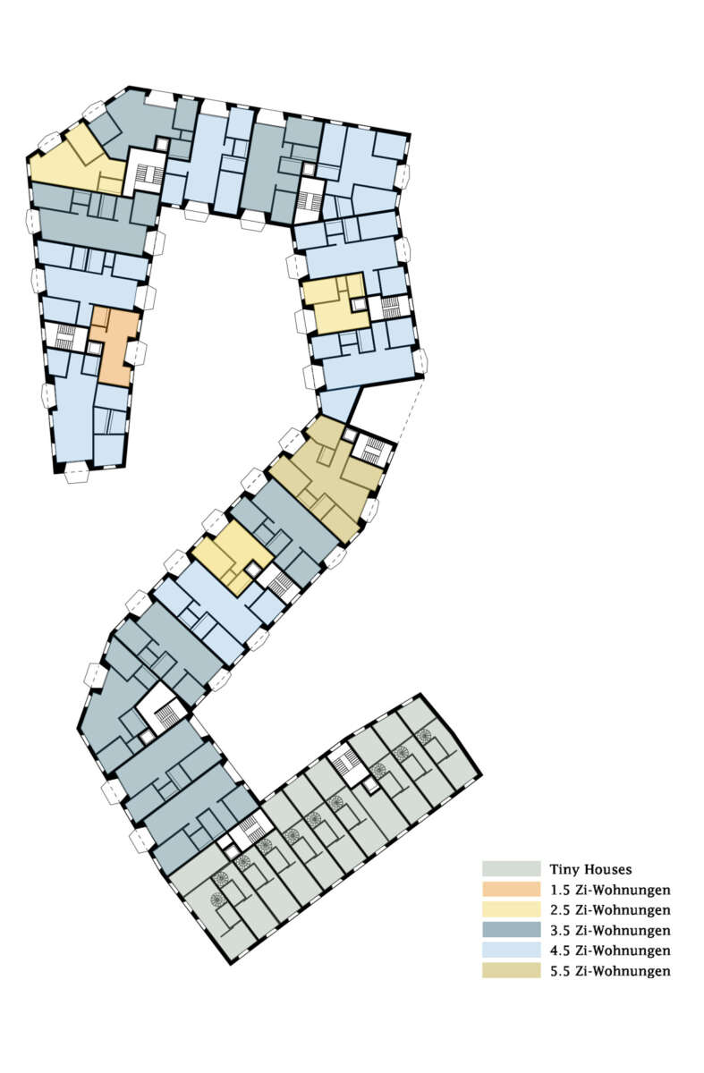 Ausgangsfrage für den Entwurf war: Was macht es eigentlich aus, dass Bewohner ihren Wohn- oder Arbeitsort als «Heimat» erleben? Zum einen ist es die Verständlichkeit: Nur Orte, die von vielen als «wohnlich» und «vertraut» wahrgenommen werden, können den Rahmen für urbanes Sozialleben bilden. Eine Architektur, die geschätzt und irgendwann sogar als Heimat empfunden wird, bedingt ein Entwerfen entlang der Sehnsüchte und Bedürfnisse ihrer Nutzer – und damit Einfühlungsvermögen in die «Sicht des Laien» sowie ein Interesse am alltäglichen Leben.