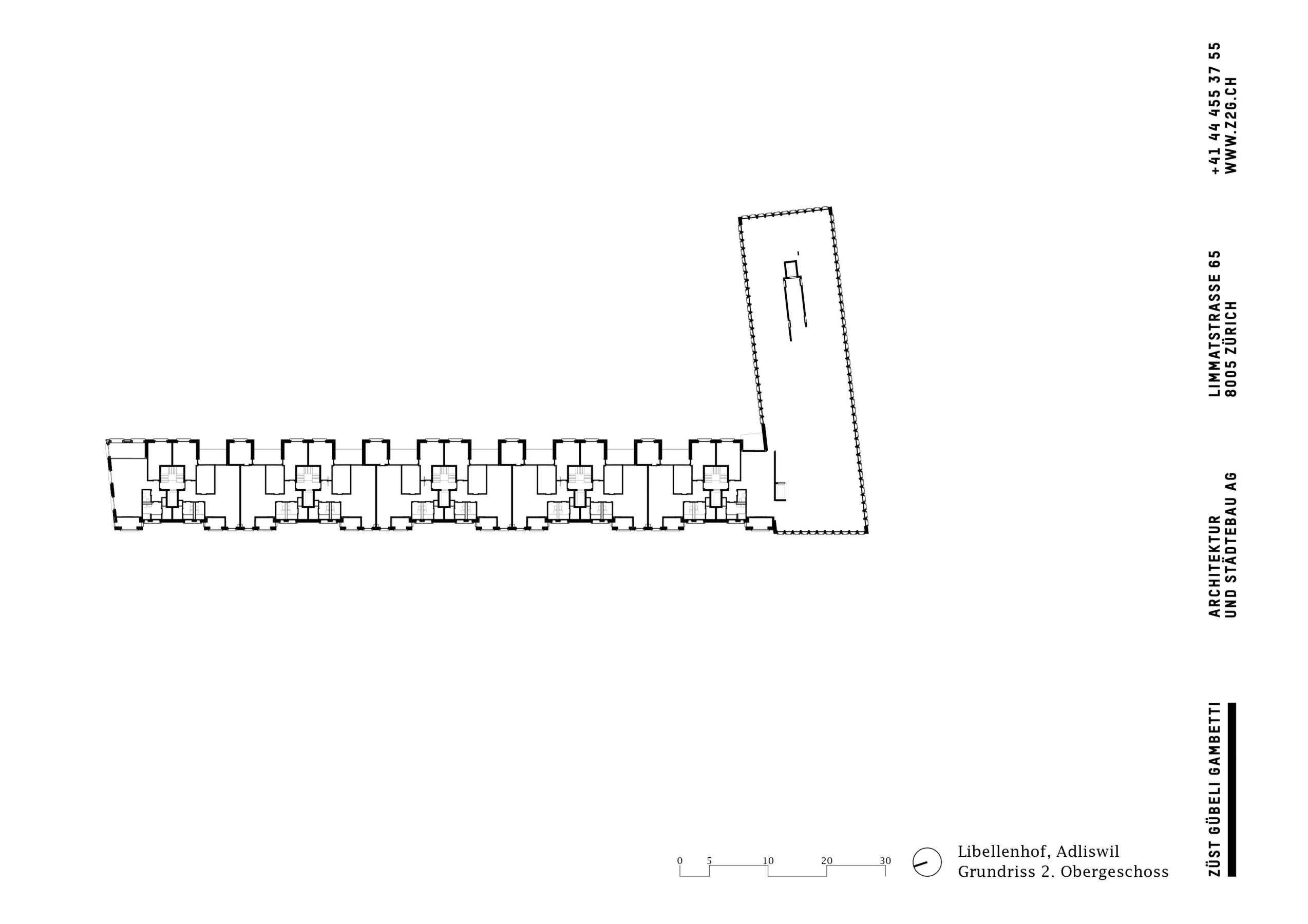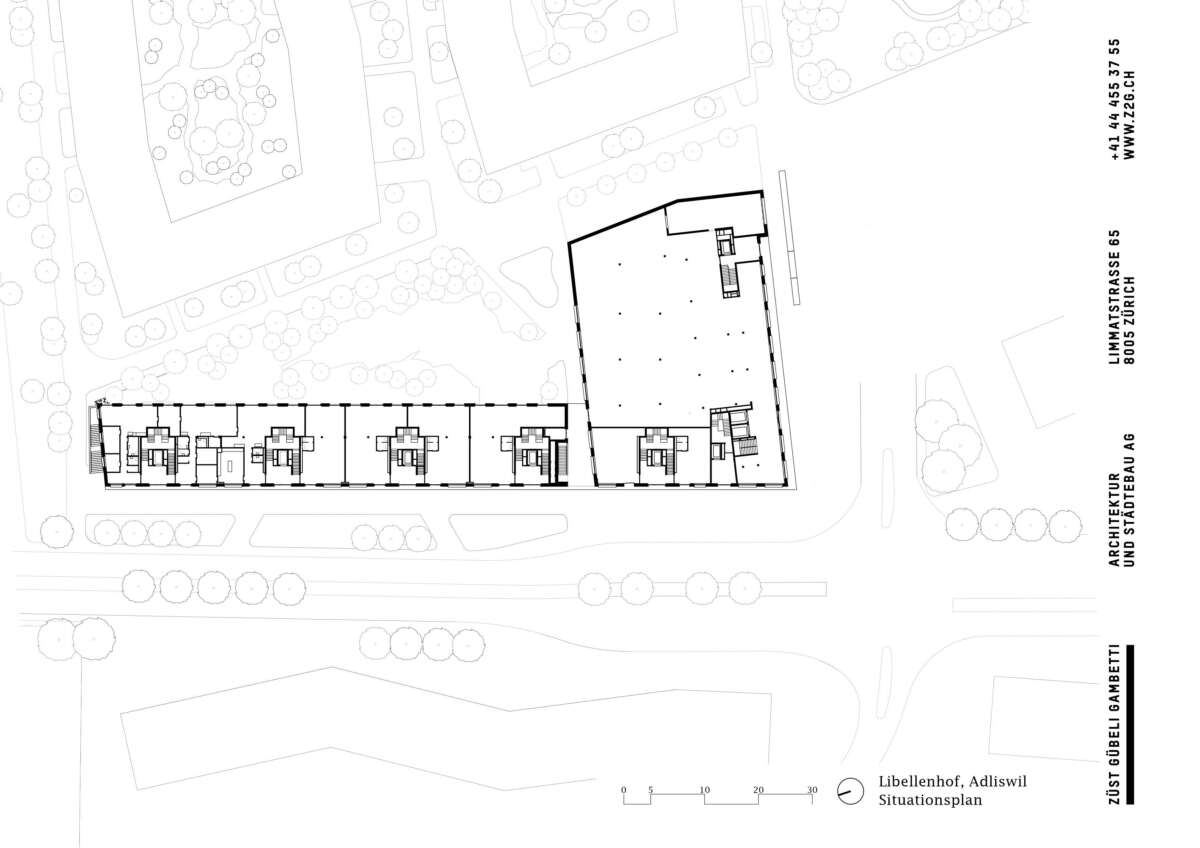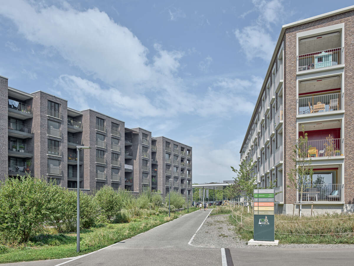 Neue Erschliessungen an der Stadtgrenze sowie ein grosser Bevölkerungszuwachs begünstigten in Adliswil über die Jahre einen wilden Flickenteppich, dessen Teile oft ohne Anker auskommen mussten. Das 5,4-Hektaren-Areal Dietlimoos-Moos liegt im Norden der Gemeinde zwischen Autobahn und Zürichstrasse. Für das von Züst Gübeli Gambetti bearbeitete Baufeld bedeutete dies eine erhebliche Lärmbelastung vor den künftigen Haustüren sowie ein durchgrüntes Wohnquartier im Rücken. Eine Zweiseitigkeit, die den Entwurf prägt.