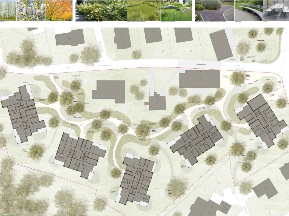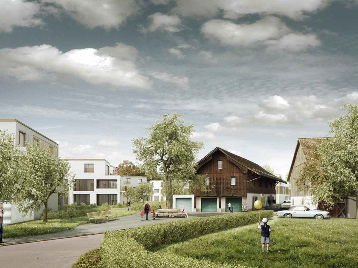 Wohnüberbauung Areal Meilibachwiesen Kategorie Wohnen1. Rang Ort Au Wädenswil Auftragsart Konkurrenzverfahren 1. RangProjektierungAusführung Jahr 2016—2020 Status Gebautes