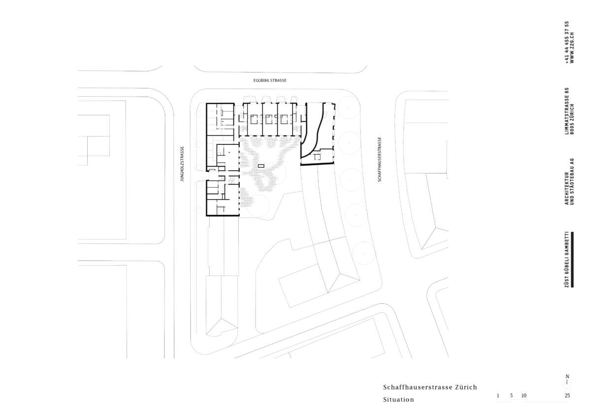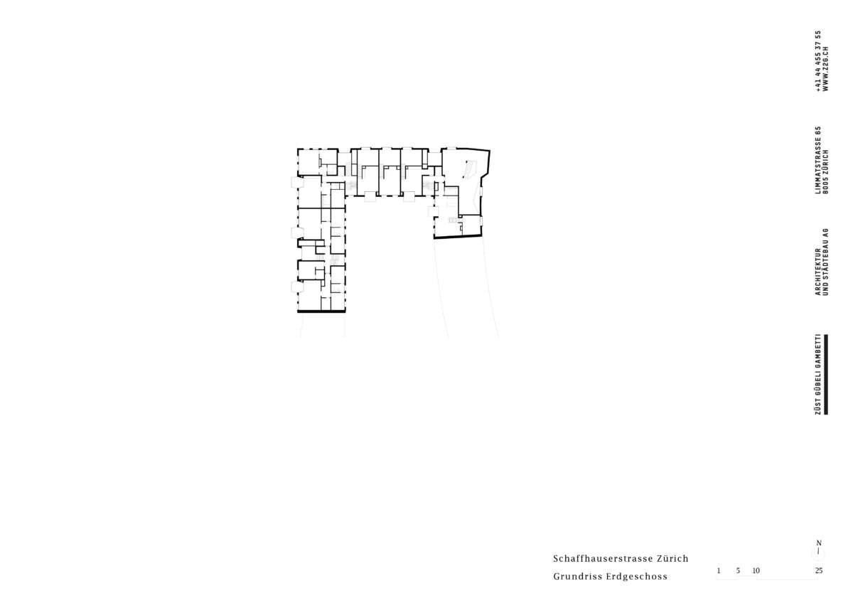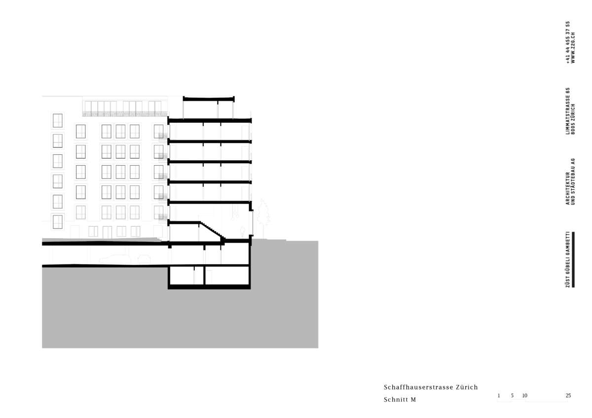 Ein Aktionsfeld im urbanen Hinterhof der City ist Oerlikon. Angeschoben durch das aus Industrieruinen erwachsene Zürich Nord und verdrängte Bewohner- und Arbeiterheere aus der Innenstadt, erlebt es ein Revival. Was viele beklagen: Nur punktuell existieren Dienstleistungen für die rasch gewachsene Bevölkerung – und mit belebendem Effekt für das Strassenbild. Züst Gübeli Gambetti plante deshalb an einer der großen Ausfallachsen der Stadt ein stimulierendes Gefäß für ortsspezifische Urbanität.