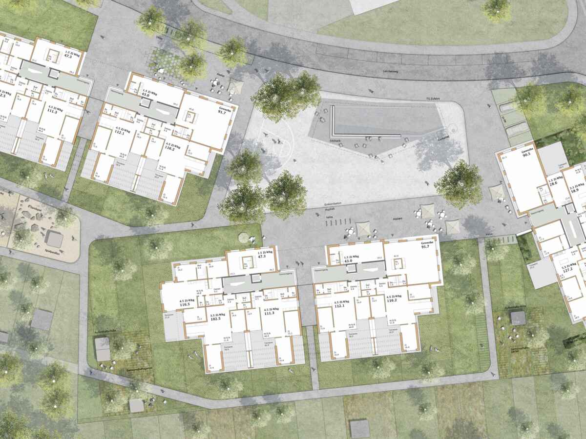 Ersatzneubauten Lerchenweg, Kloten Kategorie StädtebauWohnen Ort Kloten Auftragsart Studienauftrag Jahr 2020 Status Wettbewerb