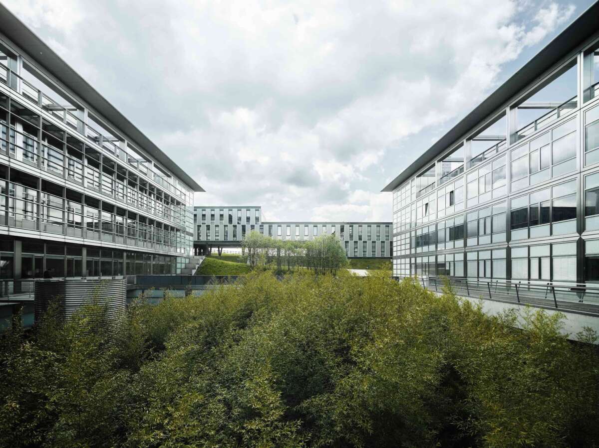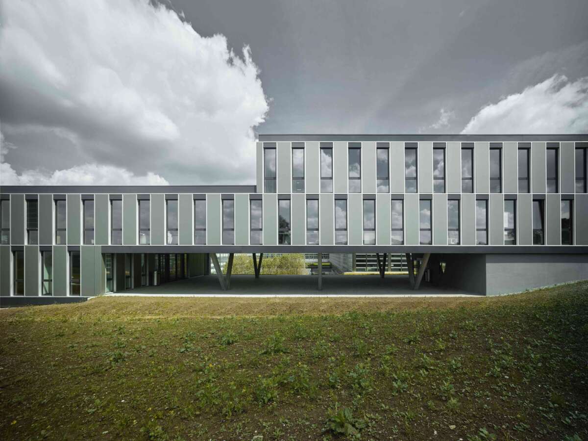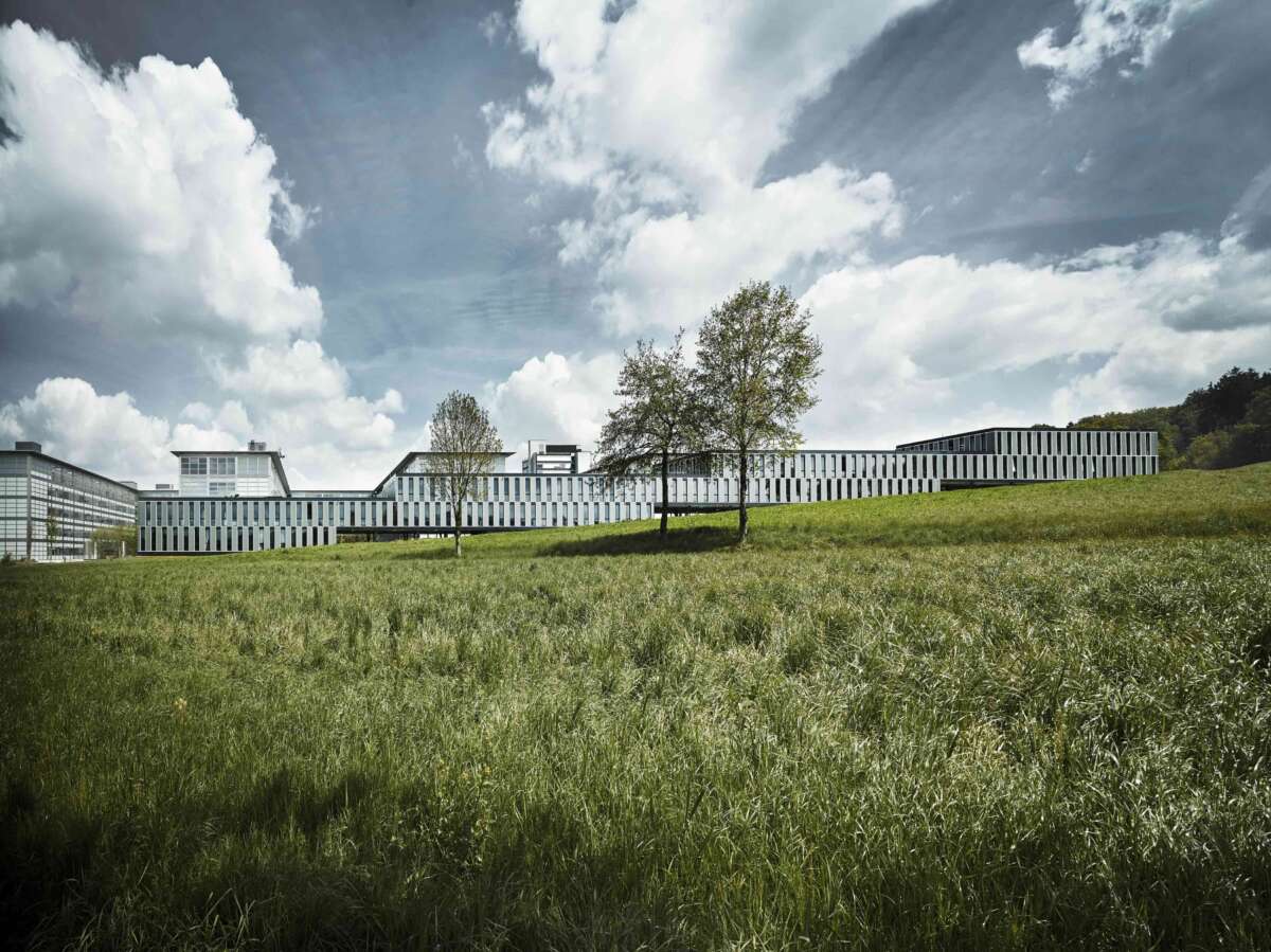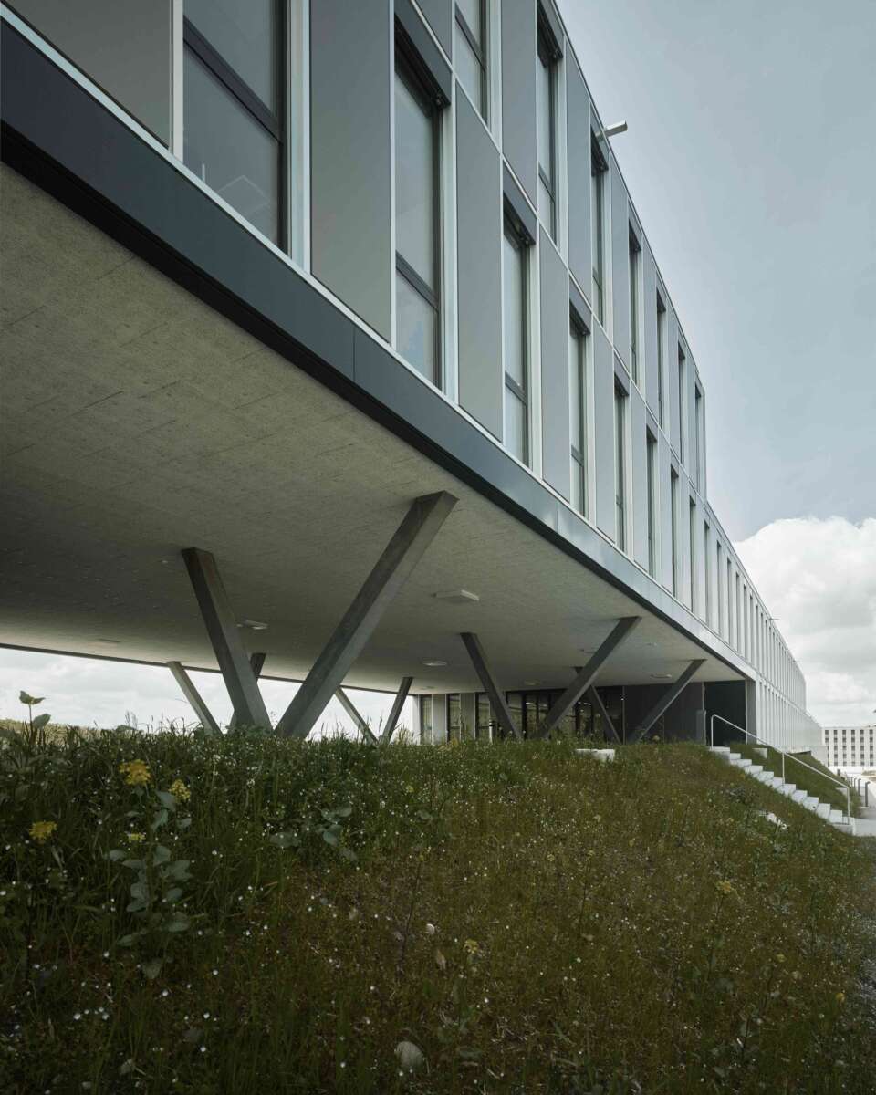 Sowieso ist die austarierte Figur eine Symbiose wirtschaftlichen und architektonischen Kalküls. Die gleiche Behandlung aller Fassaden resultiert aus dem Wechselspiel offener und geschlossener Elemente, was den skulpturalen Eindruck noch betont. Innen bewährt sich die Horizontale, weil sie die Kommunikation begünstigt und flächeneffiziente Grundrisse schafft. Die serielle Anordnung der Fassadenmodule trägt dabei wesentlich zur Flexibilität bei. Effizient ist auch der Anschluss an das Anergie-Netz des Campus sowie ein ökonomisch wie ökologisch vernünftiges Low-Tech-Konzept, das für eine C02-freie Energieregie und leichte Wartung sorgt. (mc)