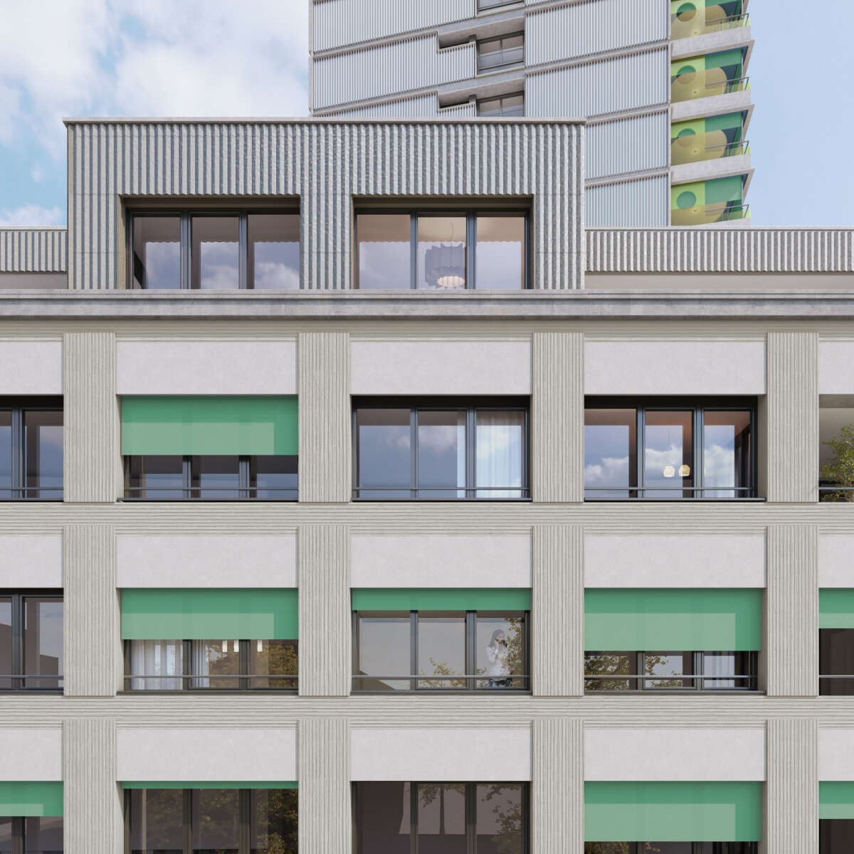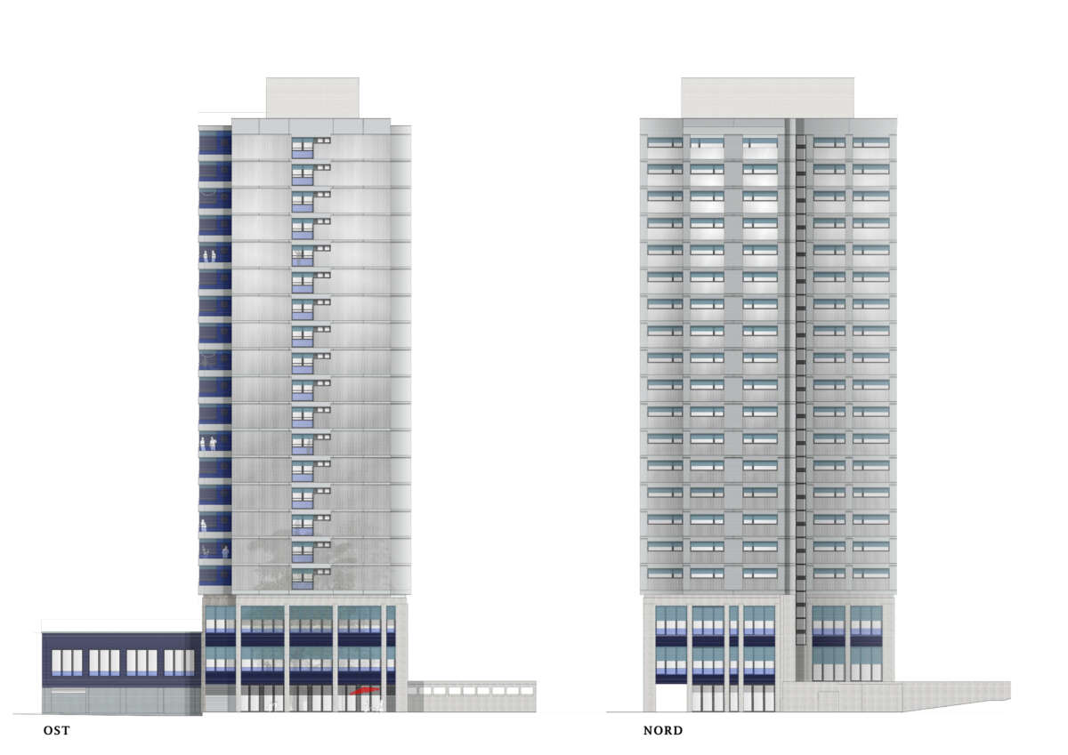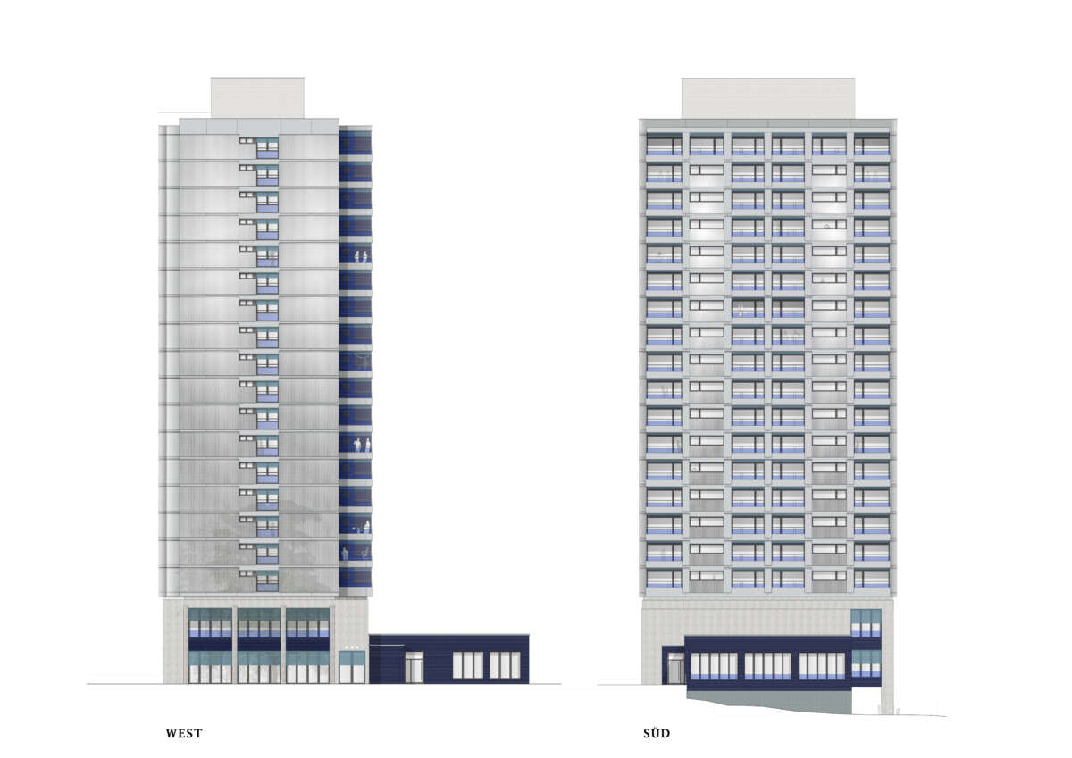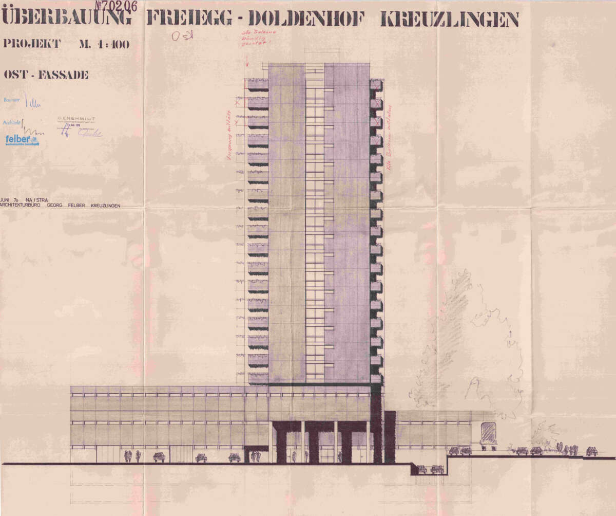 Fassadenstudien Hochhaus Freiegg / Doldenhof, Kreuzlingen Kategorie WohnenUmbau & Sanierung Ort Kreuzlingen Auftragsart MachbarkeitsstudieStudienBaueingabe Jahr 2022–2023 Status StudieZukünftiges
