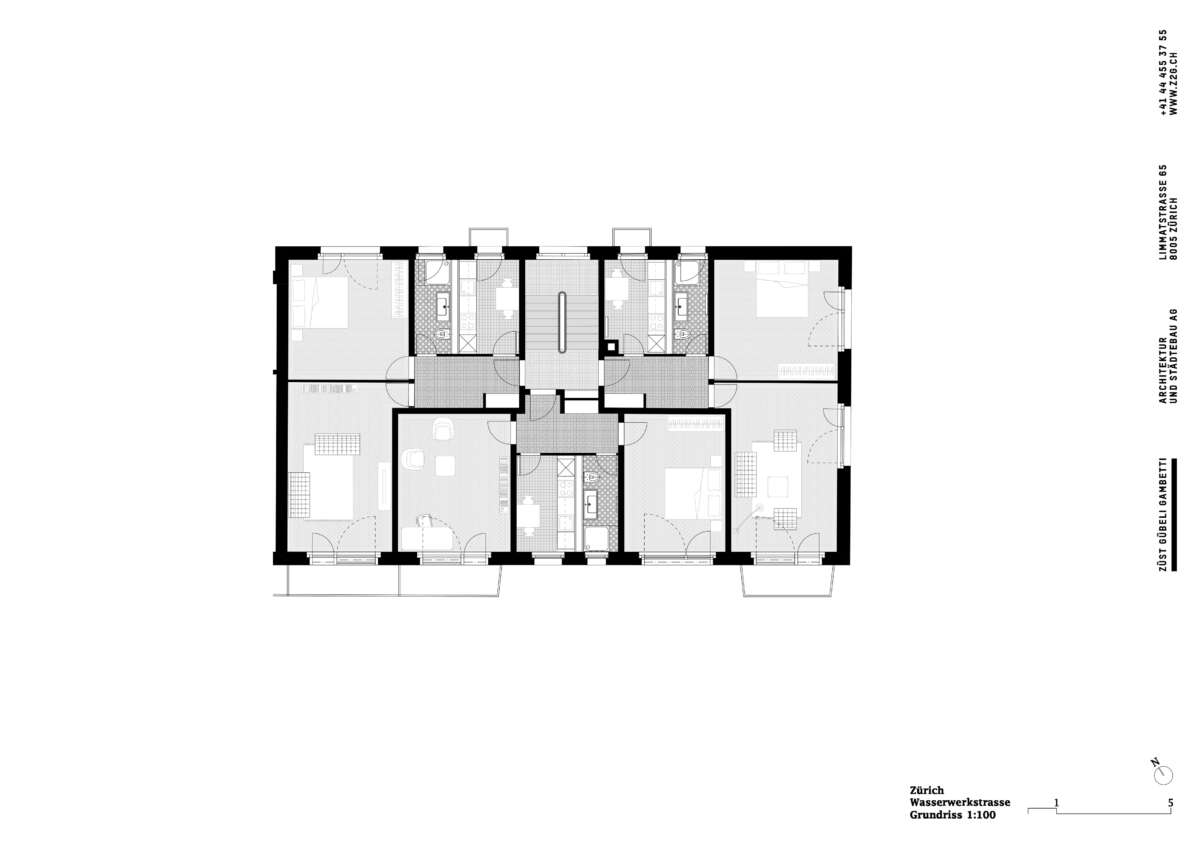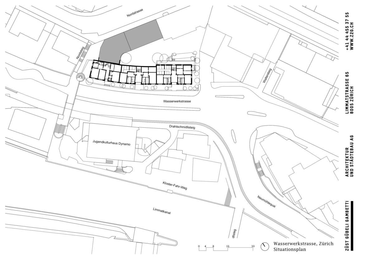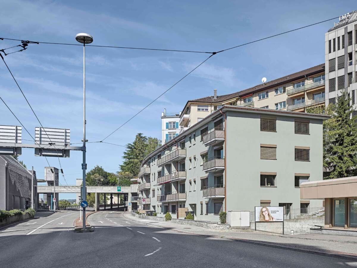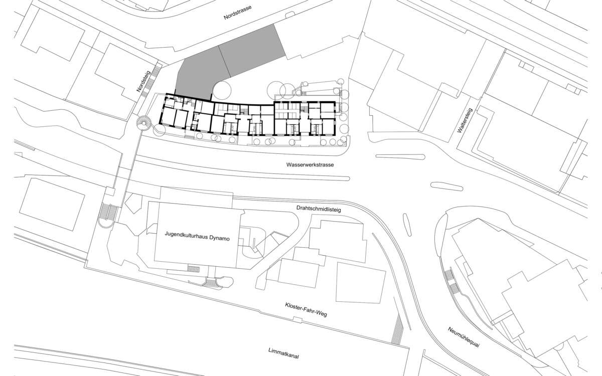 Obwohl an augenfälliger, zentraler Lage in Limmatufernähe und gleich hinter dem Jugend- und Kulturhaus «Dynamo», geben sie sich seit jeher unauffällig: Die drei Mehrfamilienhäuser an der Wasserwerkstrasse sind Baujahr 1943 und Teil eines Fünfer-Ensembles, das für schutzwürdig befunden wurde. Zur Strasse wirken sie als strassenbegleitendes Dreiergespann, dahinter – durch die steile Hanglage abgeschirmt – werden sie von einem Zweigestirn ergänzt. Der starke Sanierungsbedarf machte den drei bis dato im Originalzustand verbliebenen Häusern an der Strasse schon länger zu schaffen.