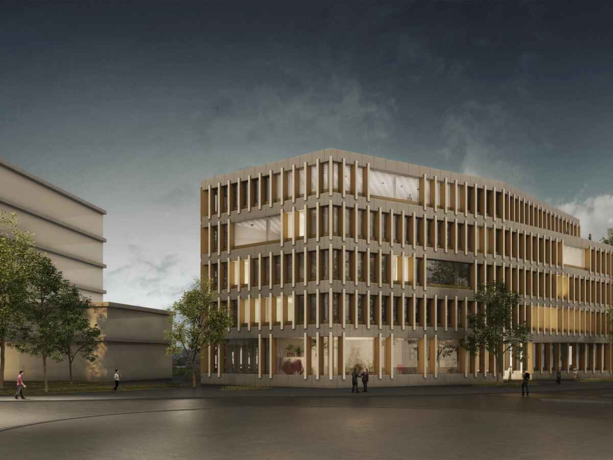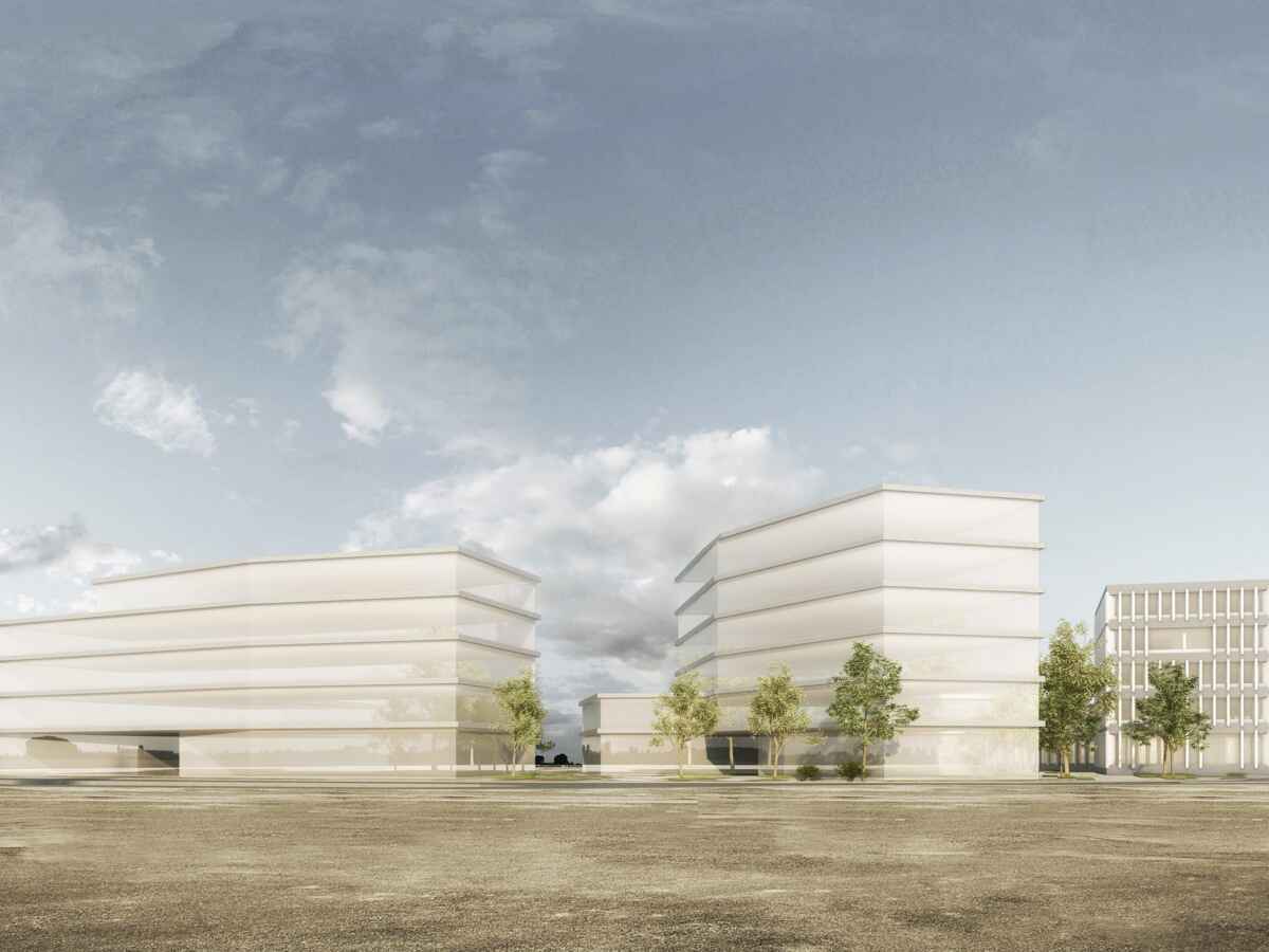 Zu diesem Zweck gibt es ein einladendes Sockelgeschoss, das publikumswirksame Nutzungen wie auch die Adressbildung begünstigt. Im Inneren des Areals kreieren niedrigere «Flügel» intimere Hofbereiche, wobei gebäudeinterne Durchgänge und Querungen eine eigentliche promenade architecturale ermöglichen. In den Obergeschossen entstehen dank eines sinnfälligen Rastersystems, Raumhöhen von 3.30 m sowie möglicher Überhöhen vielseitig nutzbare Freiräume für innovative Unternehmen. Der innen bestimmende Raster zeichnet sich auch in der Fassade ab, ohne rigide zu wirken: Horizontale Bänder und vertikale Stützen, ähnlich brise-soleils, ergeben im Zusammenspiel ein feines Geflecht. (mc)