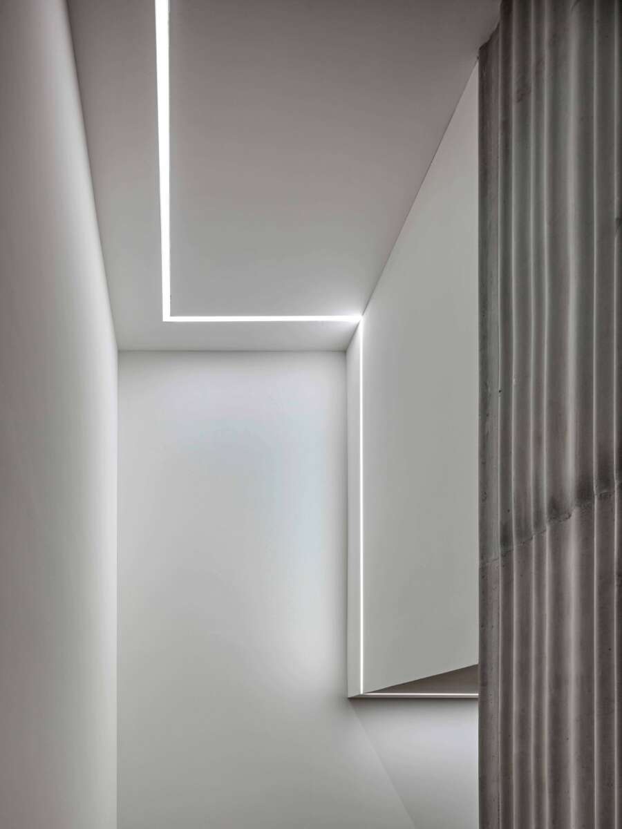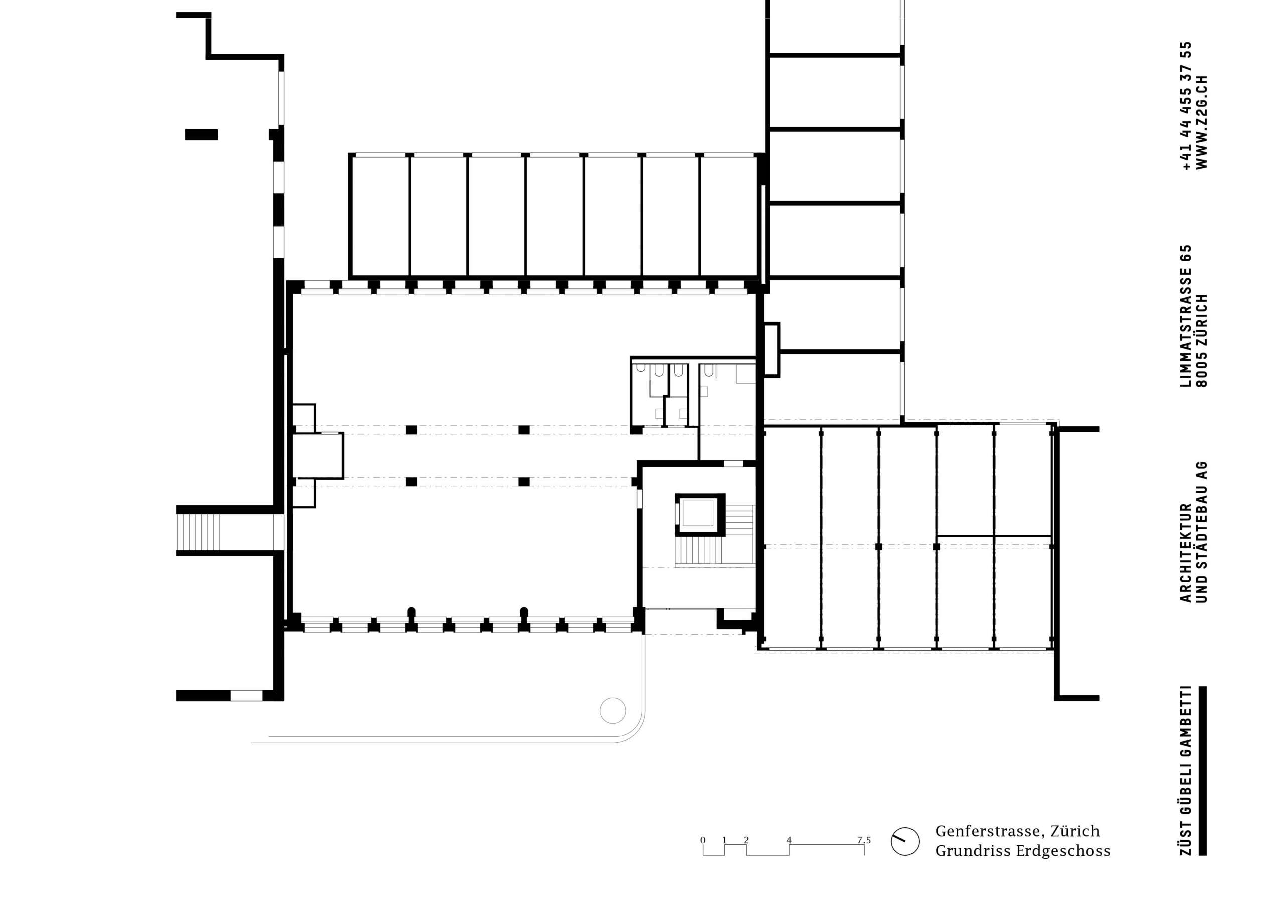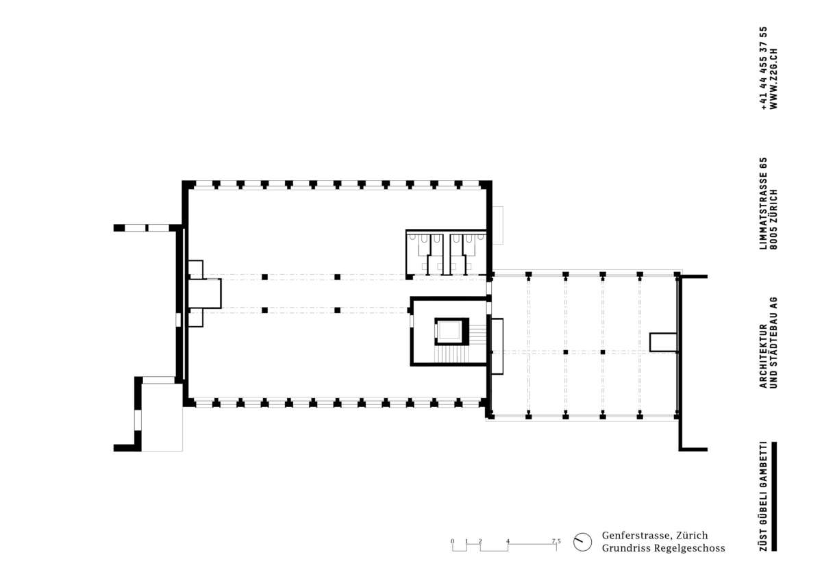 Ihre innere Entrümpelung ging einher mit der Verlegung der Treppe an die Nahtstelle der beiden Häuser. Neu gibt es eine zentrale Halle, die sich als sorgfältig materialisierte Bewegungsachse vertikal über zwei Etagen öffnet. Durch diesen Kniff sowie neu eingeführte Gesimse gelingt es, eine optische Einheit der Gebäude zu erwirken. Darüber hinaus wird mit der Überhöhung der Eingangspartie der klassische Sockel paraphrasiert, um sich im illustren Umfeld zu behaupten. Loch- und Bandfassade erfahren auch über ihre Materialisierung eine interpretierende Angleichung. So entsteht bei aller Verschiedenartigkeit eine elegante neue Hülle, die zugleich zur bildhaft-formalen Einbettung in die Umgebung beiträgt. (mc)