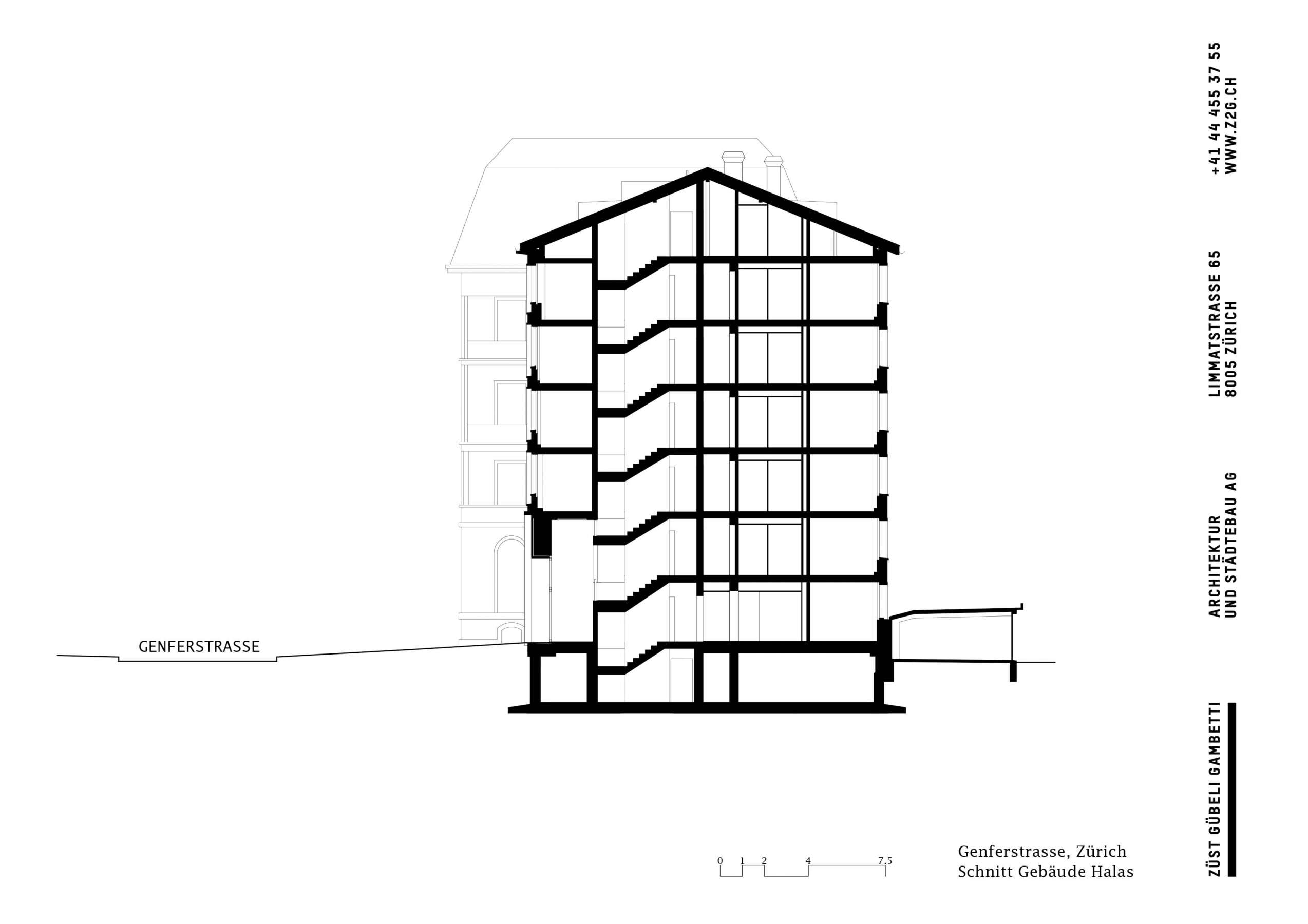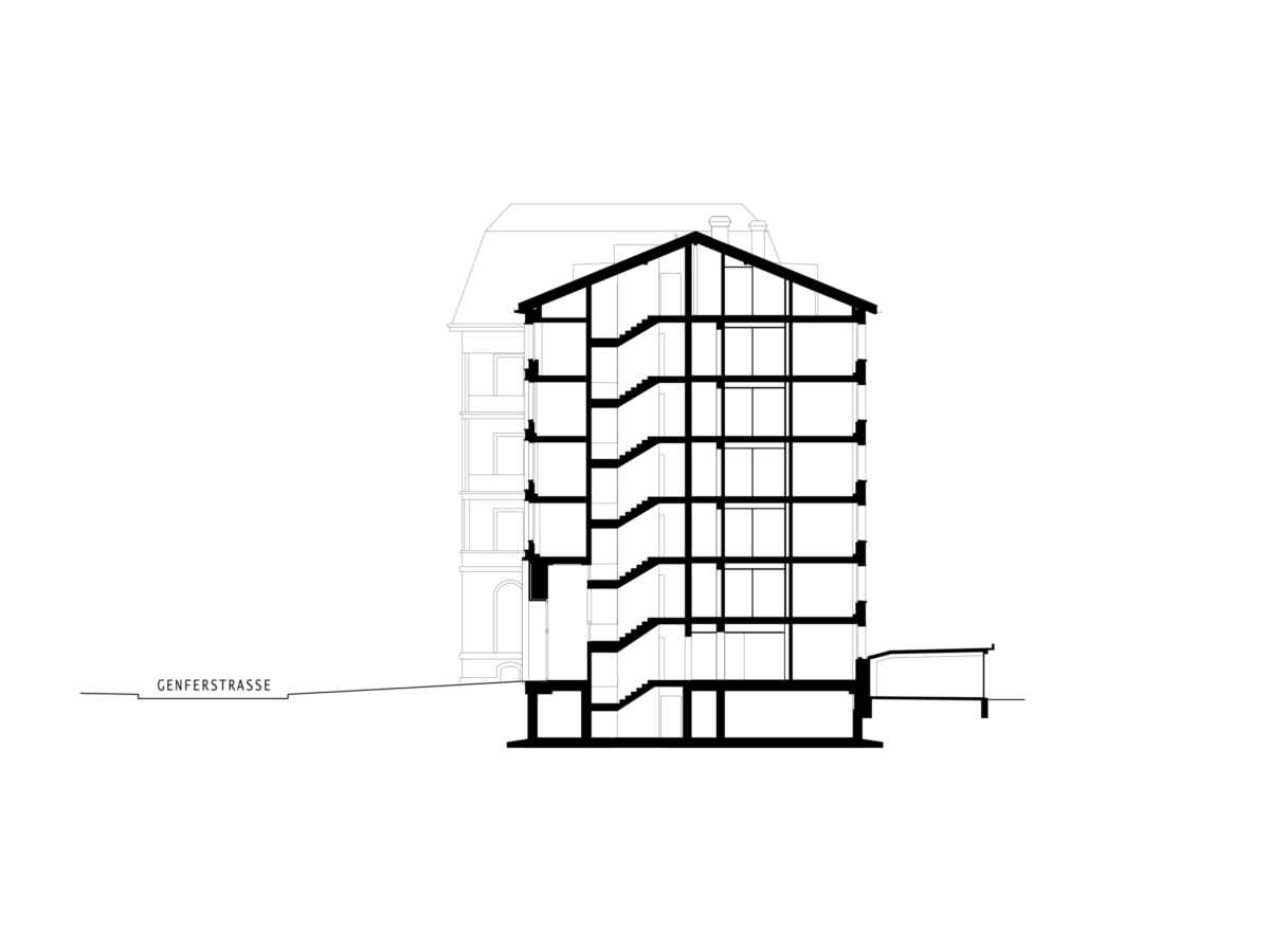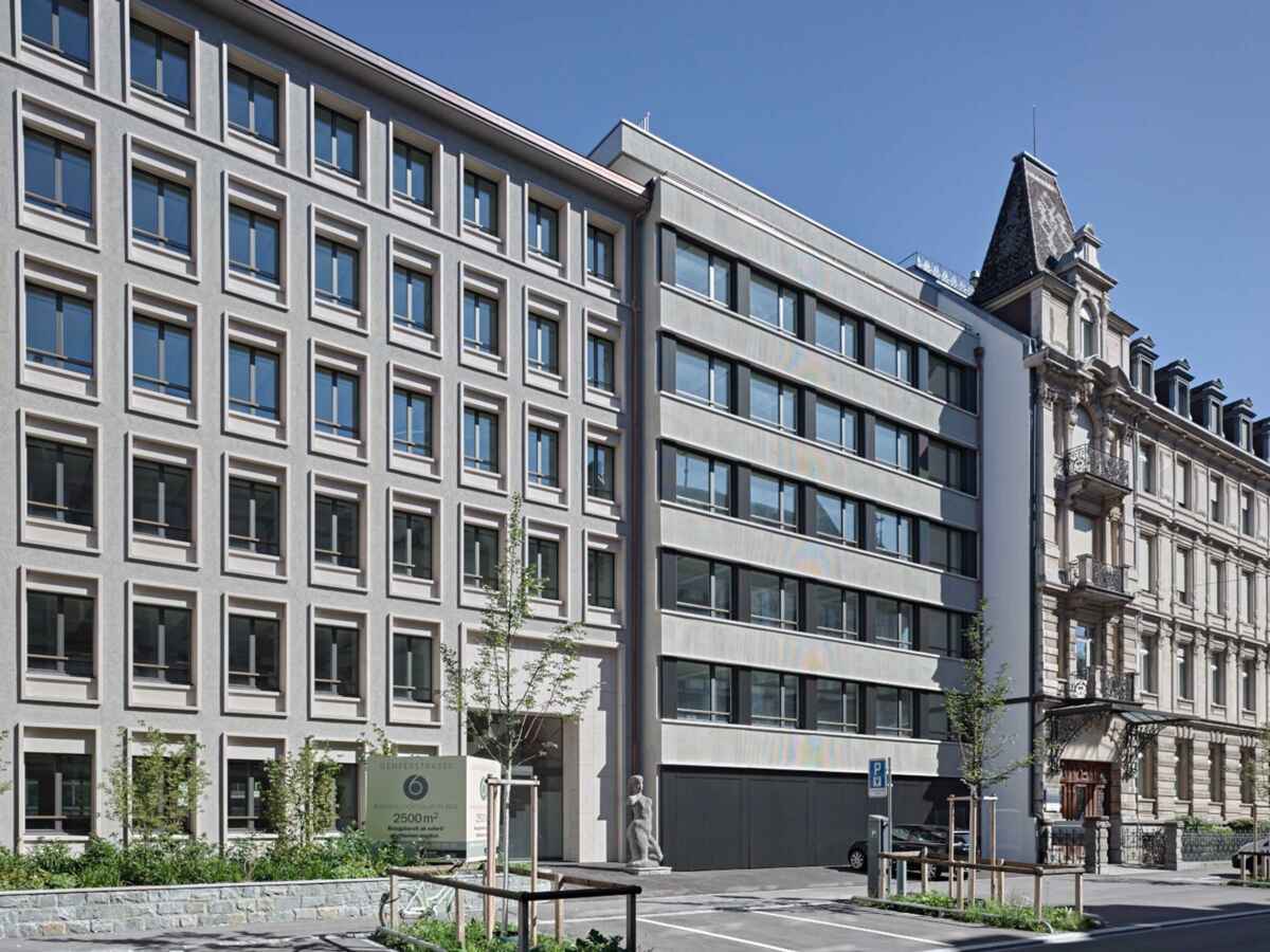 Seit kurzem reihen sich zwei Zeitzeugen der Moderne mit neu erstarktem Selbstbewusstsein in den Gründerzeitkontext des Weissen Schlosses ein. Es galt, eine nüchterne Lochfassade aus den 1940ern sowie einen von Werner Stücheli 1970 erstellten Anbau mit funktionalistischer Bandfassade zu einer repräsentativen Einheit zusammenzuführen. Seit längerem hatten Unregelmässigkeiten der Grundrisse eine effiziente Nutzung der in die Jahre gekommenen Bausubstanz erschwert.