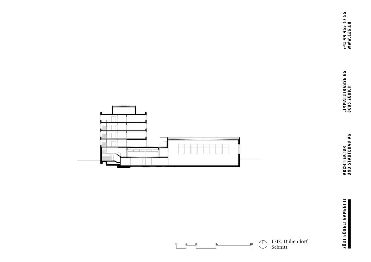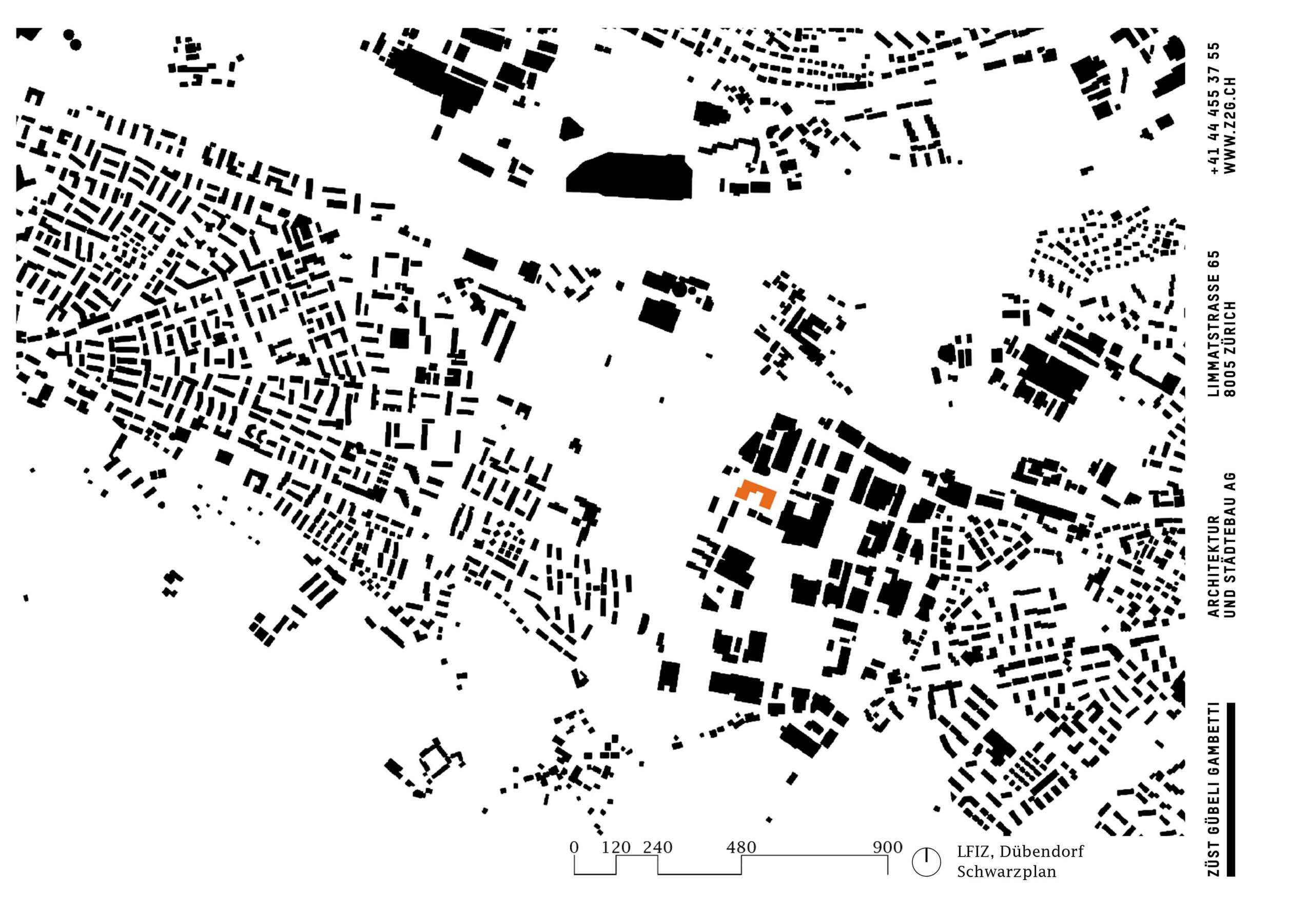 Die volumetrische Lösung für das stattliche Raumprogramm – es umfasst Kindergarten bis Gymnasium sowie Mensa und Doppelturnhalle – lag in seiner Fügung und Schichtung zu einer Hufeisenform. Entstanden ist ein Ensemble, aus dessen Höhenspiel und Verschränkungen sich vielseitige Freiräume auf unterschiedlichen Niveaus ergeben. Gleichzeitig wird der Massstab des stattlichen Baus gebrochen, ohne aber seine Rolle zu schmälern. Dafür sorgt auch die Kopfausbildung des Mittelbaus, die an der Ecke des Kreisverkehrs städtebauliche Präsenz markiert.