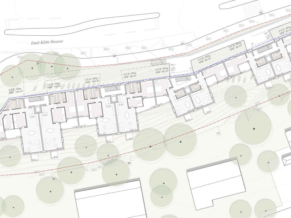 Mehrfamilienhäuser Emil-Klöti-Strasse, Zürich Kategorie Wohnen Ort Zürich Auftragsart Machbarkeitsstudie Jahr 2018—2019 Status Studie