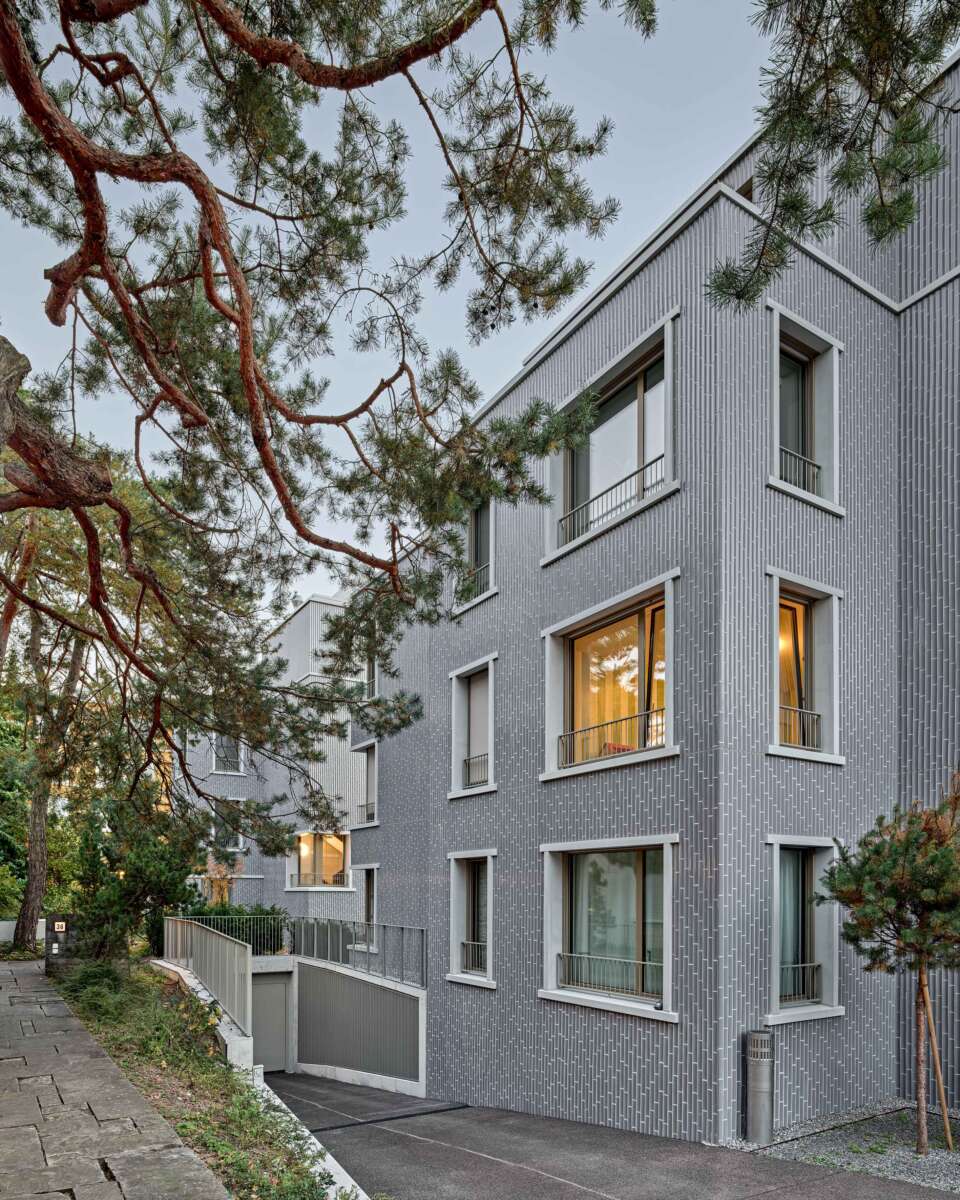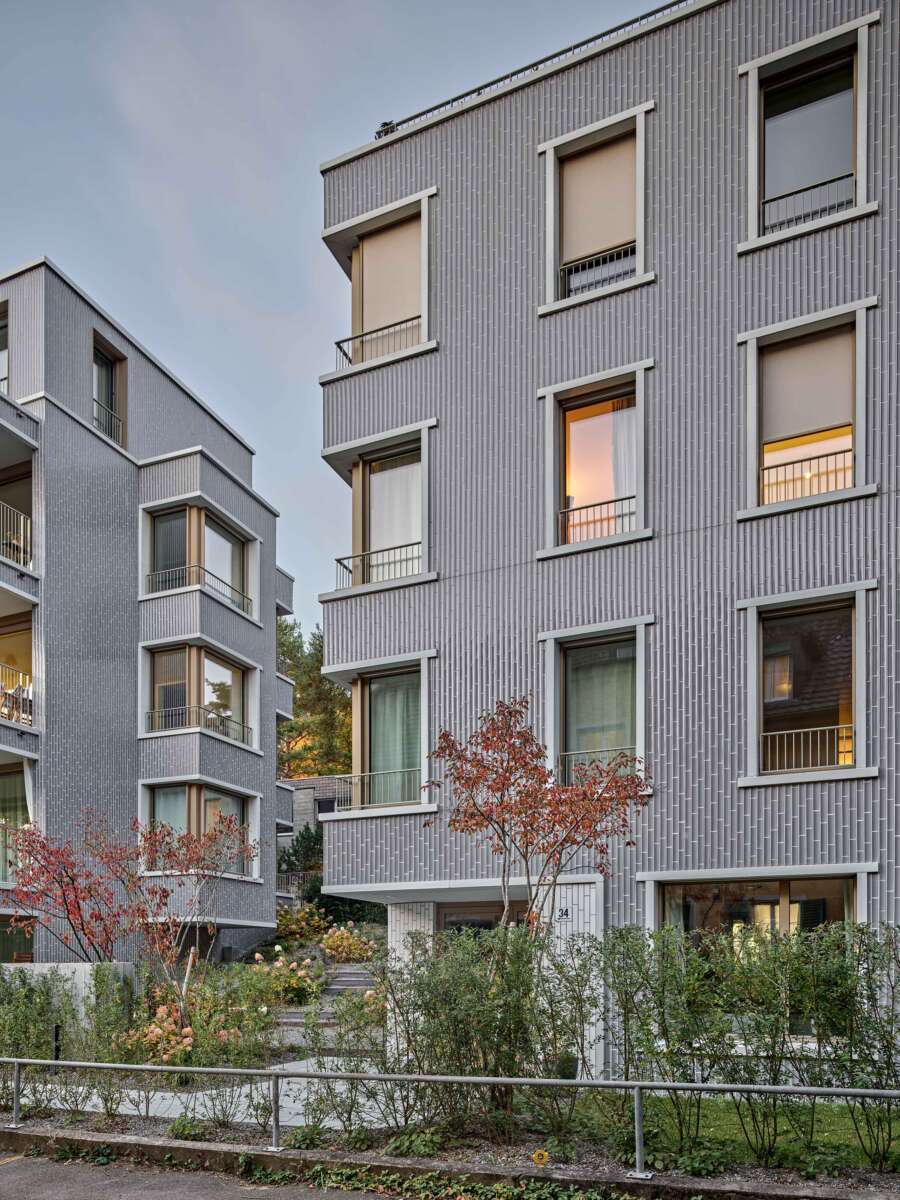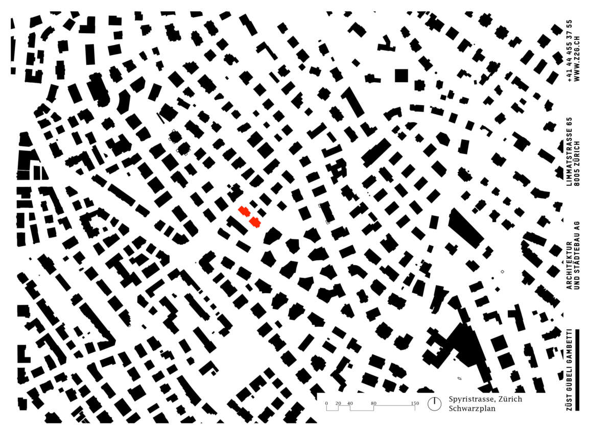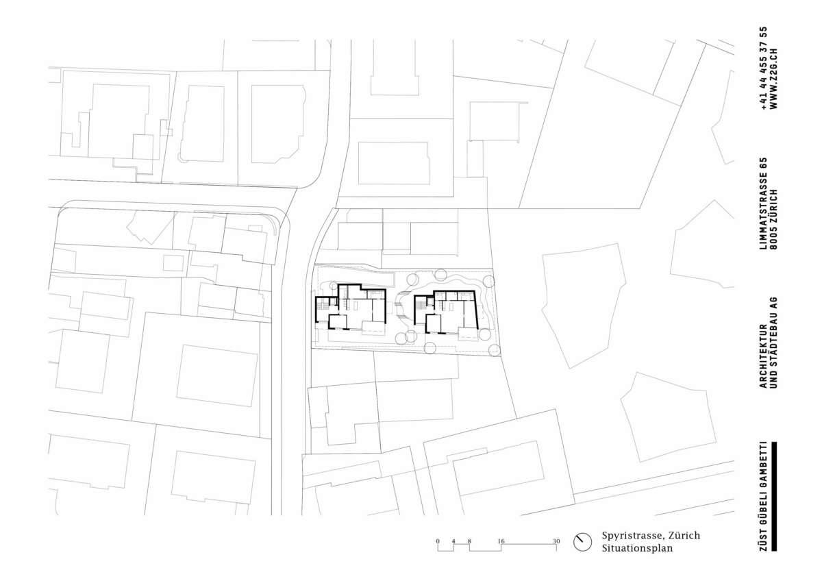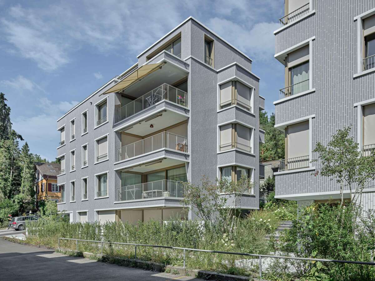 Fluntern ist geprägt von einem lockeren Potpourri aus denkmalgeschützten Zeitzeugen und freistehenden Mehrfamilienhäusern der unterschiedlichsten Dekaden. Nur unweit des Spyriplatzes befanden sich zwei in die Jahre gekommene Wohnblöcke aus den 1960er Jahren. Auf einem massiven Garagensockel vereint, machten sie einen wenig zugänglichen Eindruck. An ihrer Stelle sollten zwei Ersatzneubauten entstehen, die nicht nur dem Gebot der Innenverdichtung nachkommen, sondern auch die quartierstypische Hanglage wieder erfahrbar machen: Sie sollten jeden hermetischen Eindruck vermeiden und stattdessen Durchlässigkeit und Zugewandtheit vermitteln.