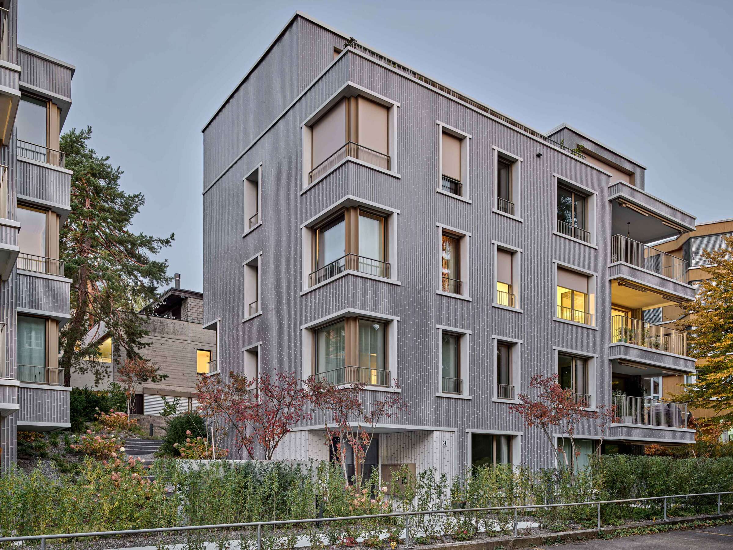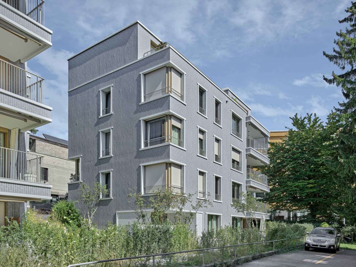 Ergebnis sind zwei Baukörper, die sich wie Passstücke ins Terrain und Quartier einfügen und zwischen Anpassung und Eigenständigkeit changieren. Anders als der verschlossene Bestandsriegel schaffen die beiden aufgegliederten Bauten allseitige Bezüge zur Umgebung. Dank plastischer Modulationen wie Erker, Einkerbungen, Staffelungen und einer rundum zurückspringenden Attika erfahren sie auch visuelle Brechung.Die Etagenwohnungen profitieren innen von der vieleckigen Grundfigur mit einem zentralen Wohnbereich, um den sich das Leben nach allen Seiten fächert. Die den Gebäudeecken im Süden teils vorgelagerten, teils in die Wohnräume eingeschriebenen Balkone sind zudem echte Raumerweiterungen.