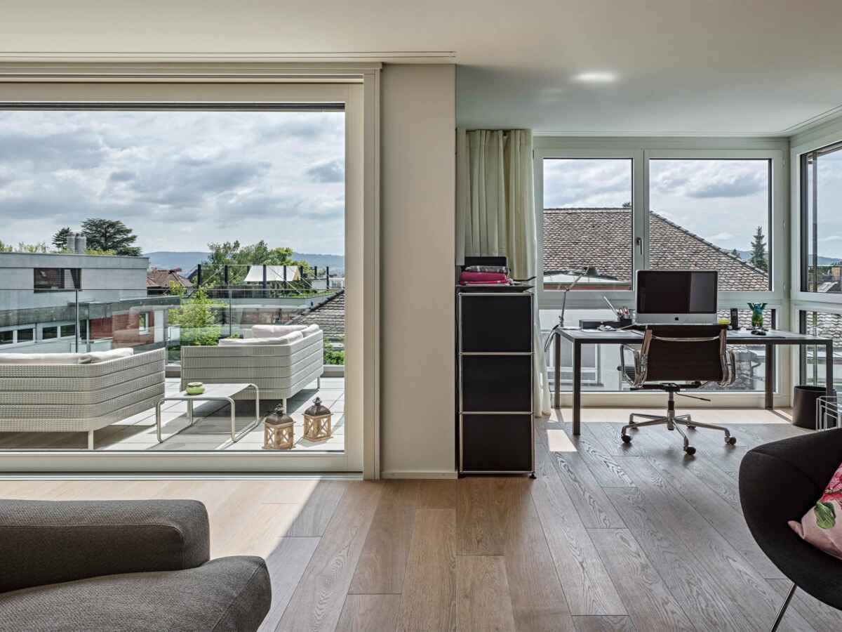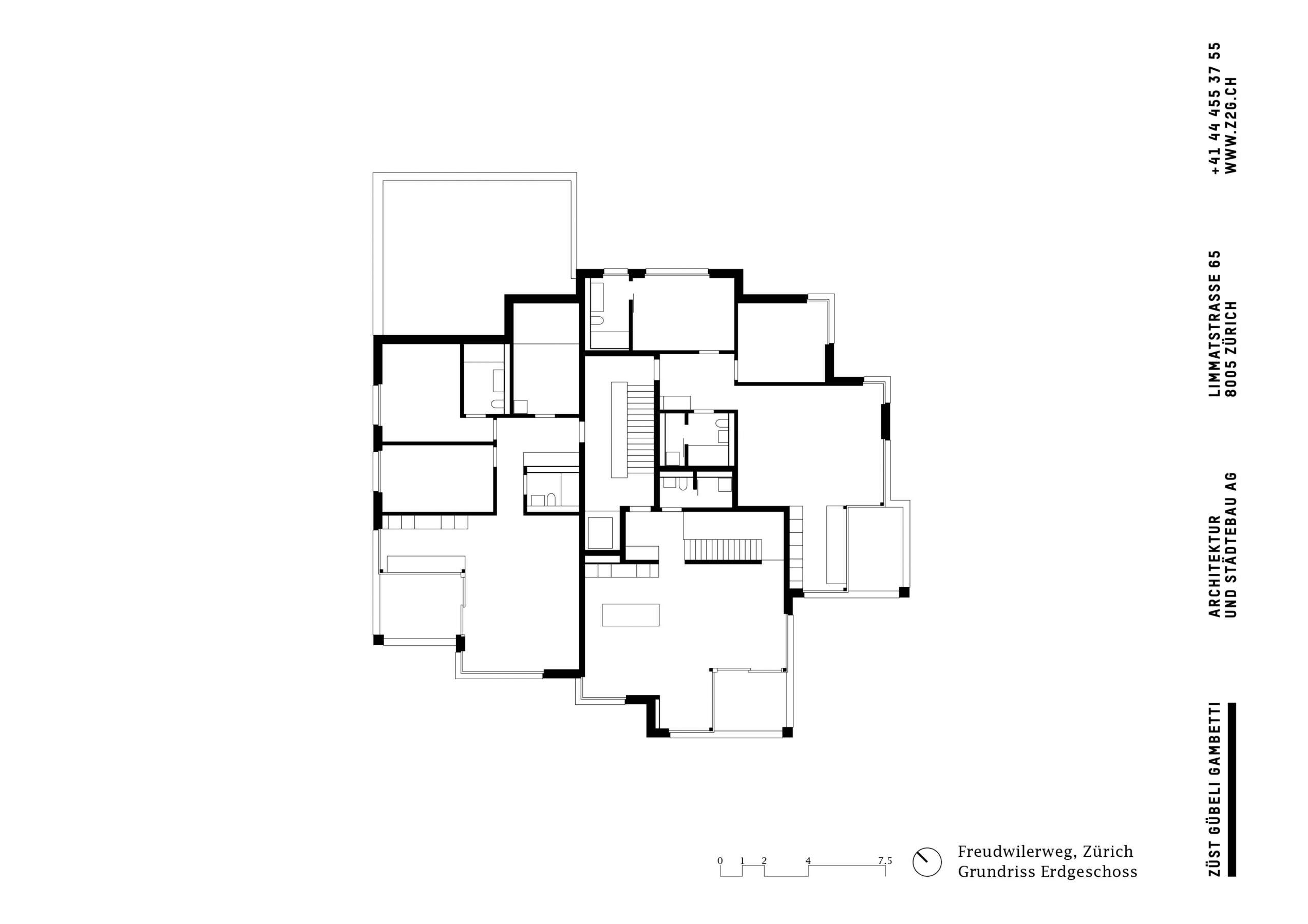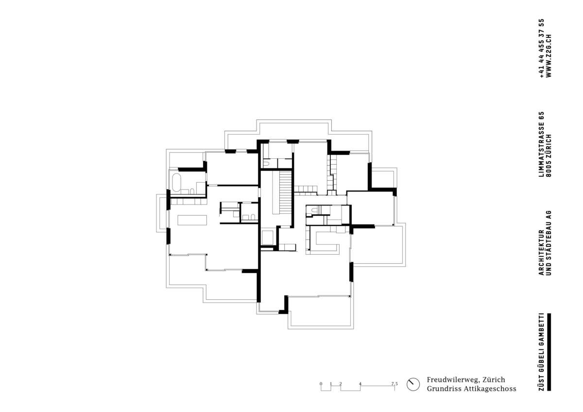 Auch am Zürichberg haben sich Ersatzneubauten als probates Mittel zu Verdichtungszwecken etabliert. Nachdem Durchgrünung und Weite den besonderen Reiz des Quartiers ausmachen, lag ein spezielles Augenmerk von Züst Gübeli Gambetti darauf, diese Qualität auch auf das Grundstück zu übertragen. Man entschied sich deshalb bewusst gegen das Hermetische, das ein strassenbegleitender «Riegel» mit sich bringen würde. Stattdessen sorgt jetzt ein Punkthaus ohne klare Vorder- und Rückseite für allseitig vermittelnde Gesten.