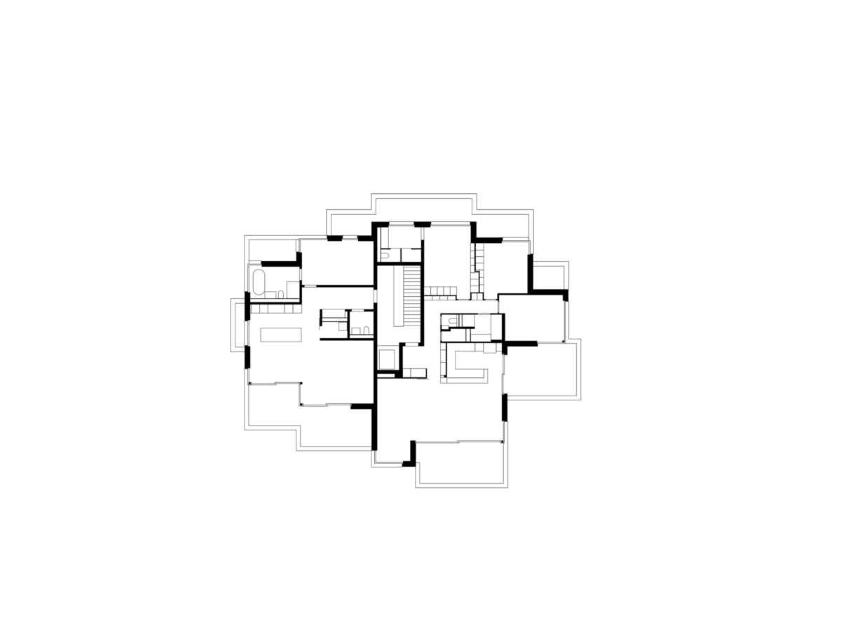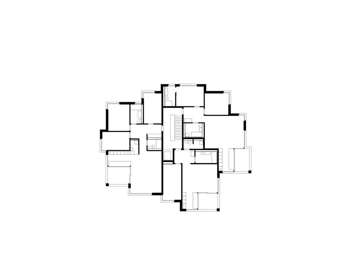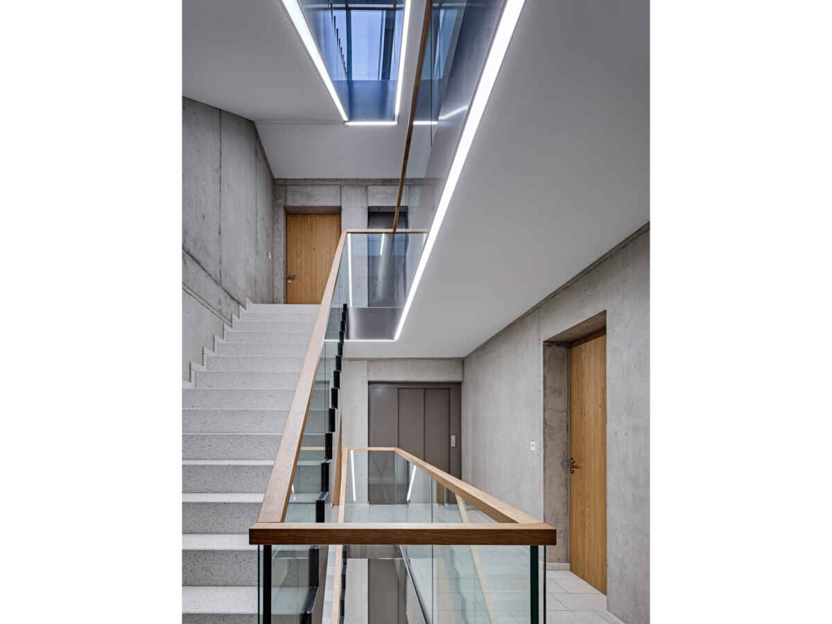 Überhaupt wurde eine Grundrisstypologie entwickelt, die das Wohnen auf spezifische Weise thematisiert. Das beginnt mit dem Motiv des Entrées anstelle eines Korridors. Raumabfolgen und Diagonalbezüge gliedern die Wohnung ganz selbstverständlich in verschiedene Bereiche. Dem Wohnraum vorgelagert sind eine offene Küche sowie eine ergänzende Loggia, was trotz ineinandergreifender Raumkonstellation eine filternde Wirkung hat. Die räumliche Staffelung bringt weitere Vorteile: Eckfenster und Erker lenken den Blick aus den Wohnungen in die Weite und steigern die Wohnlichkeit, was einen Rückzug ins Private begünstigen dürfte. (mc)
