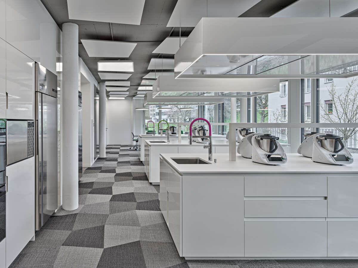 Multimedia & Cooking Hub Vorwerk International Kategorie ArbeitenHotel & GastronomieInnenarchitektur Ort Wollerau Auftragsart DirektauftragProjektierungAusführung Jahr 2020—2022 Status Gebautes