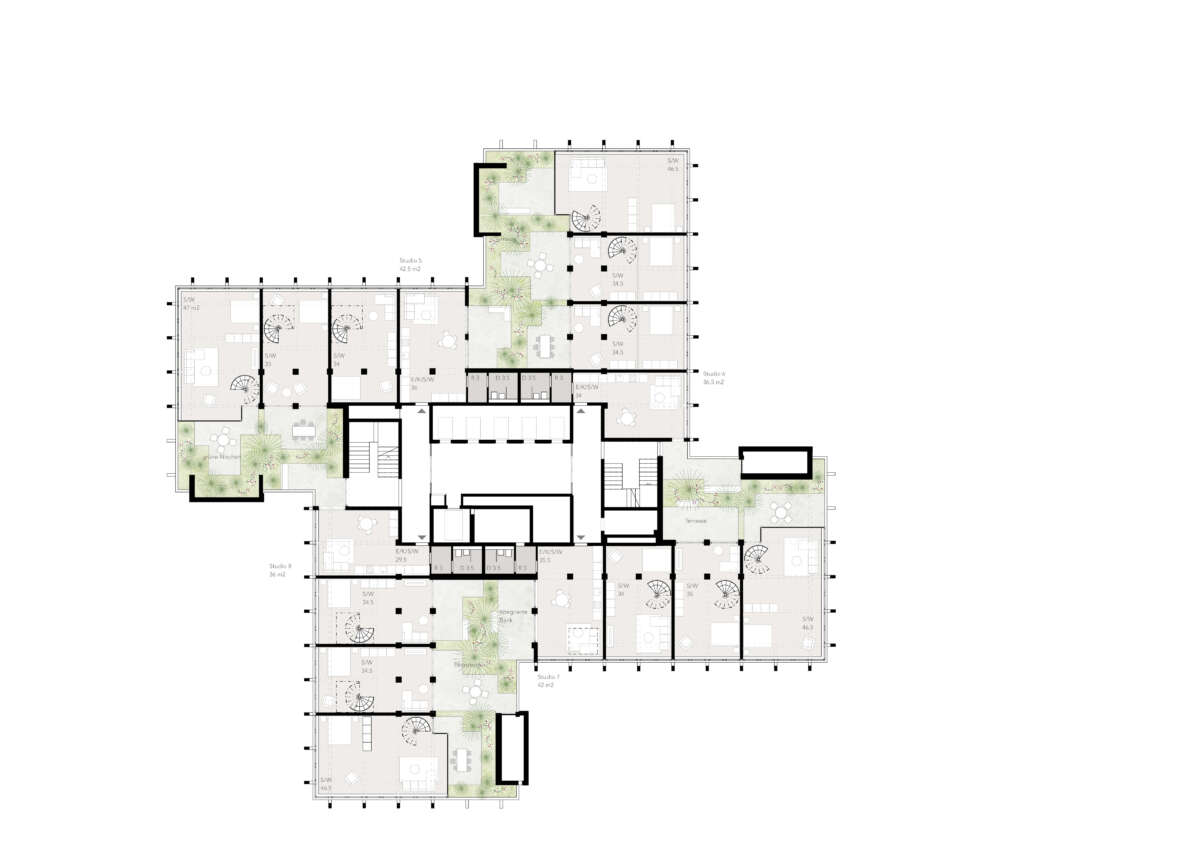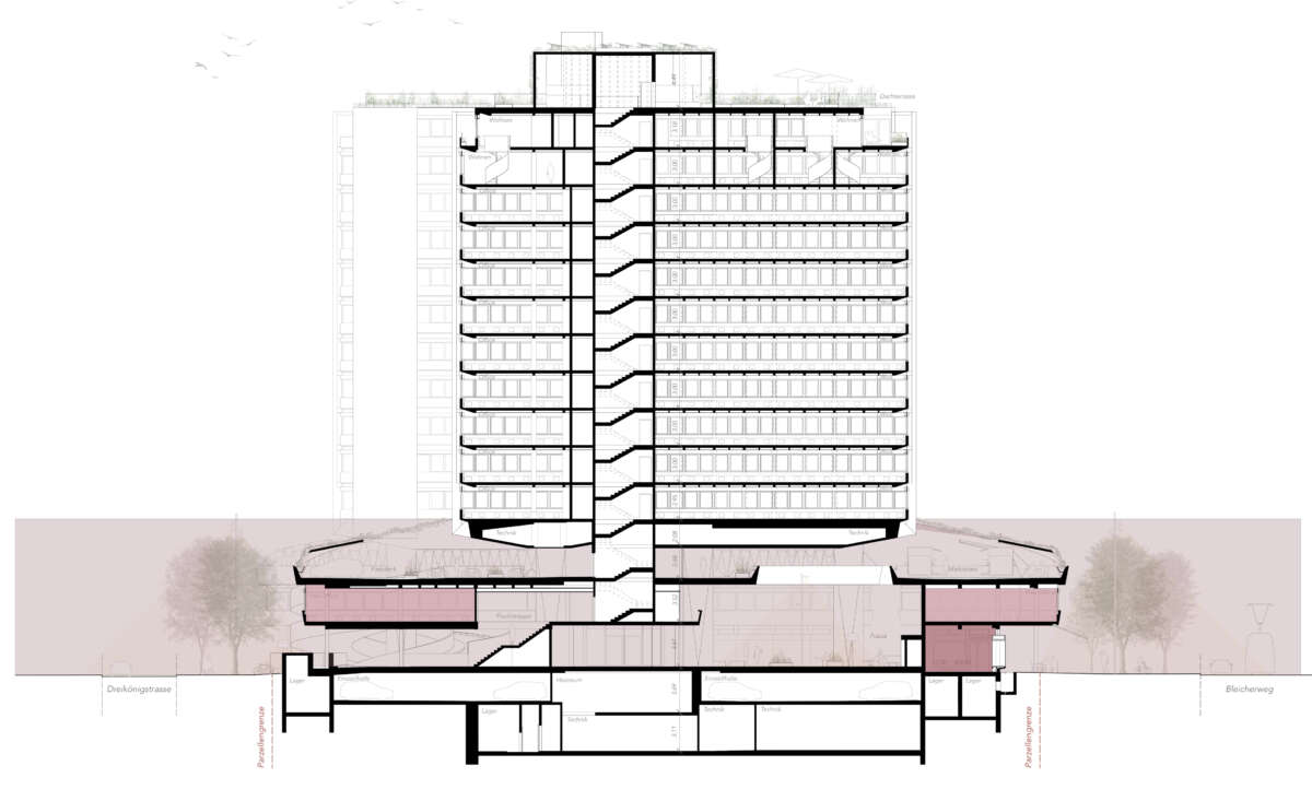 Revitalisierung «Hochhaus zur Palme», Zürich Kategorie Mixed UseUmbau & Sanierung Ort Zürich Auftragsart Gesamtleistungswettbewerb2. Rang Jahr 2021—2022 Status Wettbewerb