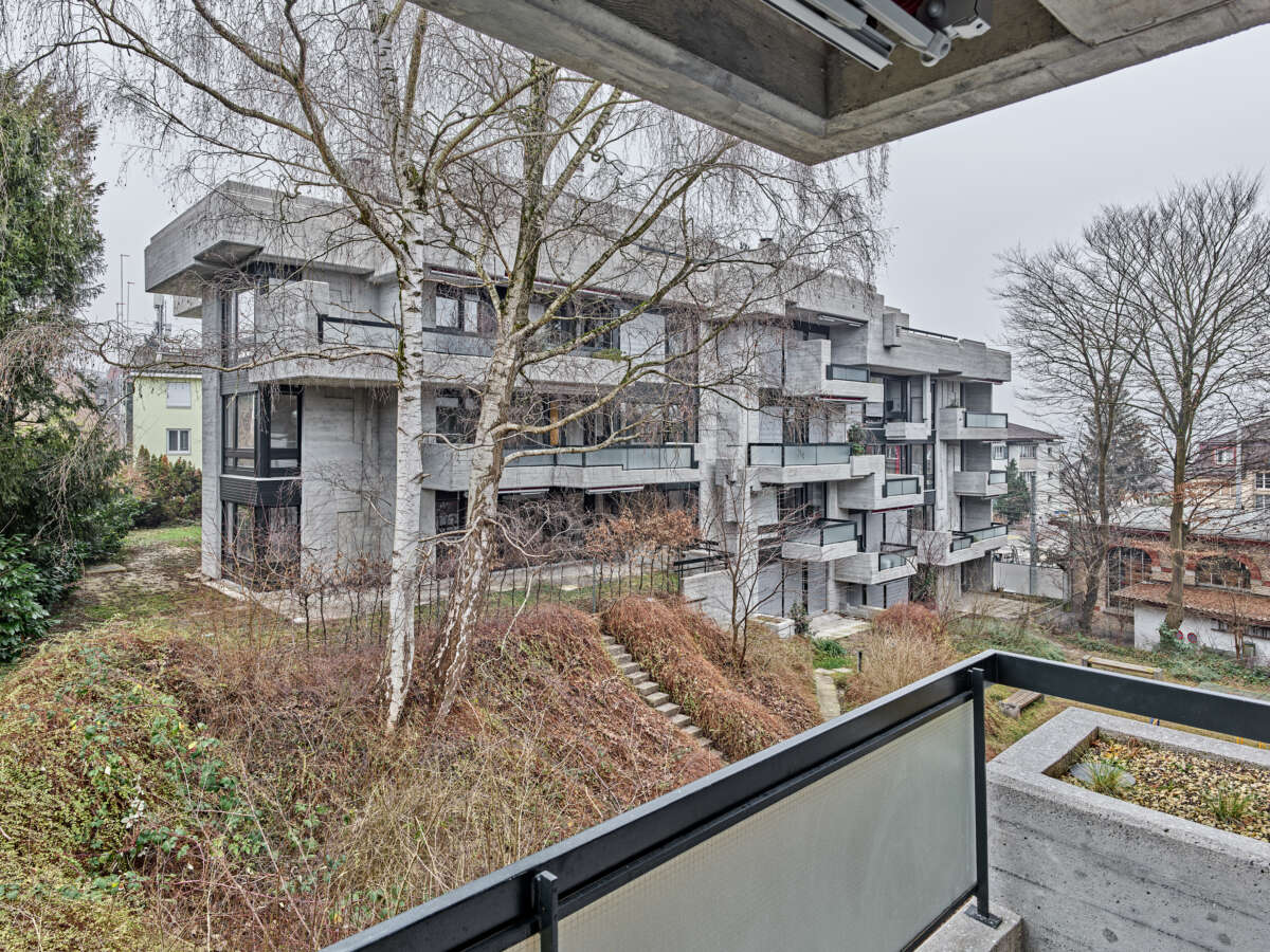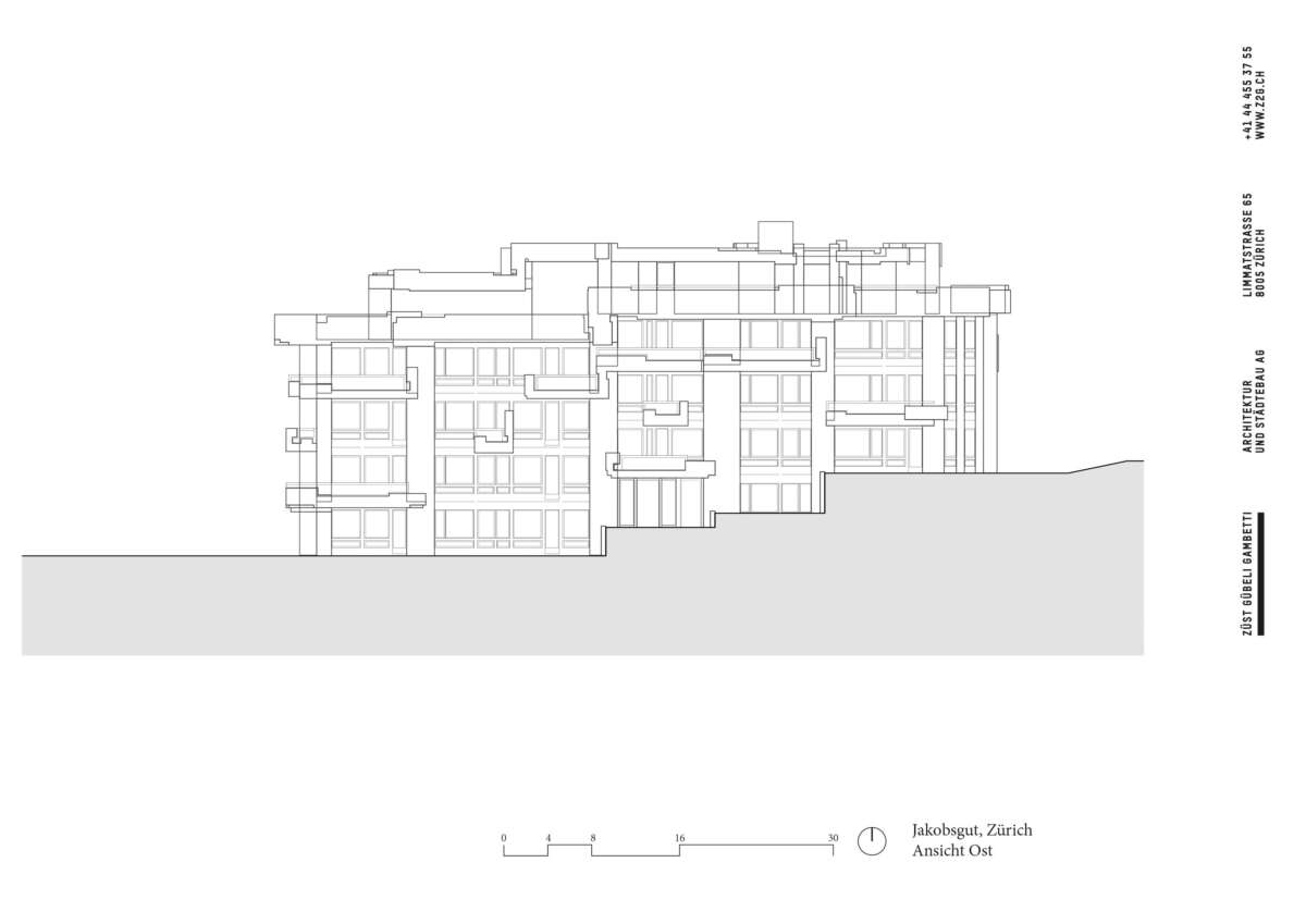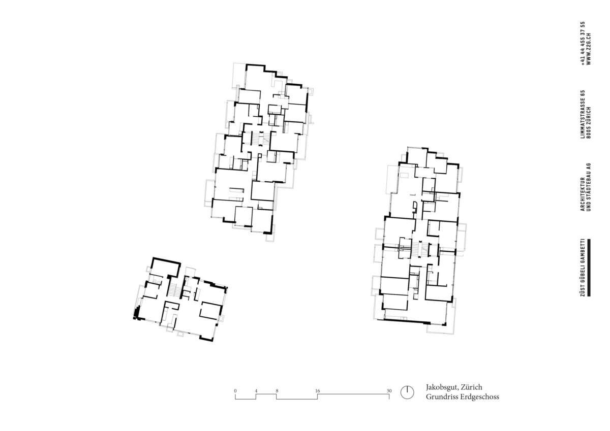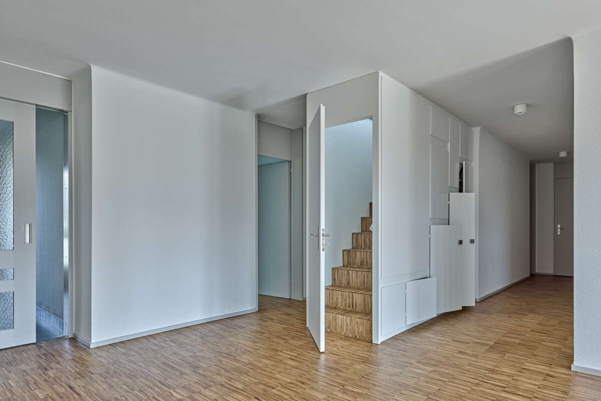 Innen fügt sich eine Vielzahl von Wohnungstypen zu individuellen Raumfolgen. Als Möbelentwerfer kümmerte sich Glaus auch um die Erstausstattung. In dieser auf Details bedachten Baukunst gründet die Schutzwürdigkeit des Ensembles. Im Laufe der Zeit haben indes Alterung und Sanierungssünden Spuren hinterlassen. Zudem ist das Gebäude an der Verkehrsachse im Ausdruck verändert: Einst als städtebaulicher Akzent mit expressiver Pergola bedacht, wurde diese später einer Attikawohnung einverleibt. So umfasste der Status Quo 50 Wohnungen unterschiedlichen Zustands, als der Auftrag kam: Sanierung und Überprüfung, ob ein Lift sowie Attikaaufbau ebenso für die zwei anderen Gebäude denkbar wären.
