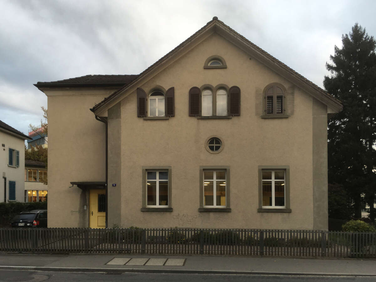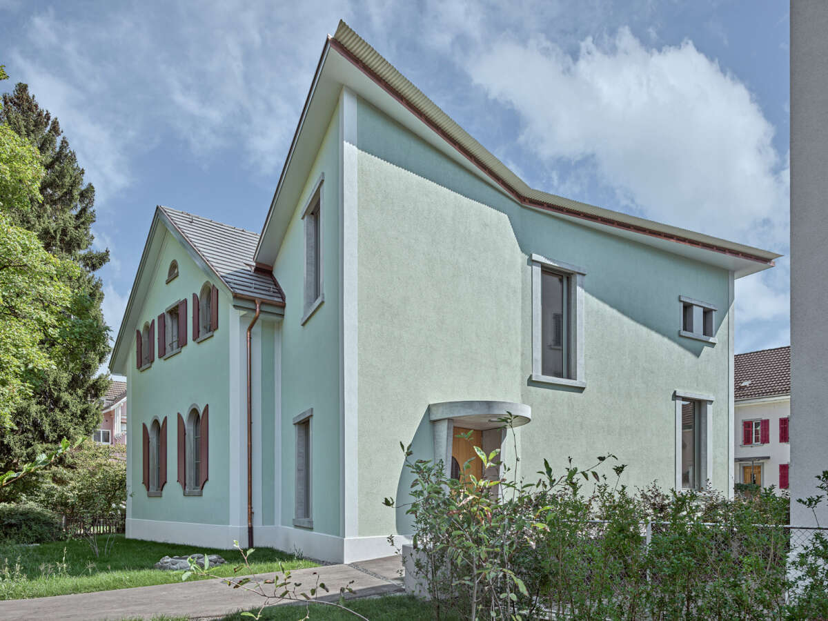 Züst Gübeli Gambetti ersann ein sinnfälliges Sanierungskonzept, das das alte Gemäuer in ein neues Nutzungszeitalter überführt und Bezüge zur Geschichte herstellt. Dabei antworteten sie mit einem Annexbau, der sich im heterogenen Umfeld changierend verhält und als «Pförtner» denSchleichweg zum nahen Schulhaus legitimiert. Durch seine ausgreifende Geste und die funktionale Zuordnung des Eingangs ist er nun klar ein Ort des Ankommens. Er nimmt Foyer, Erschliessung, Sanitärräume sowie Schulleiter- und Lehrerzimmer in sich auf. Zugleich bleibt er von aussen über seine Materialisation und Dachfläche eng mit dem Altbau verwoben.