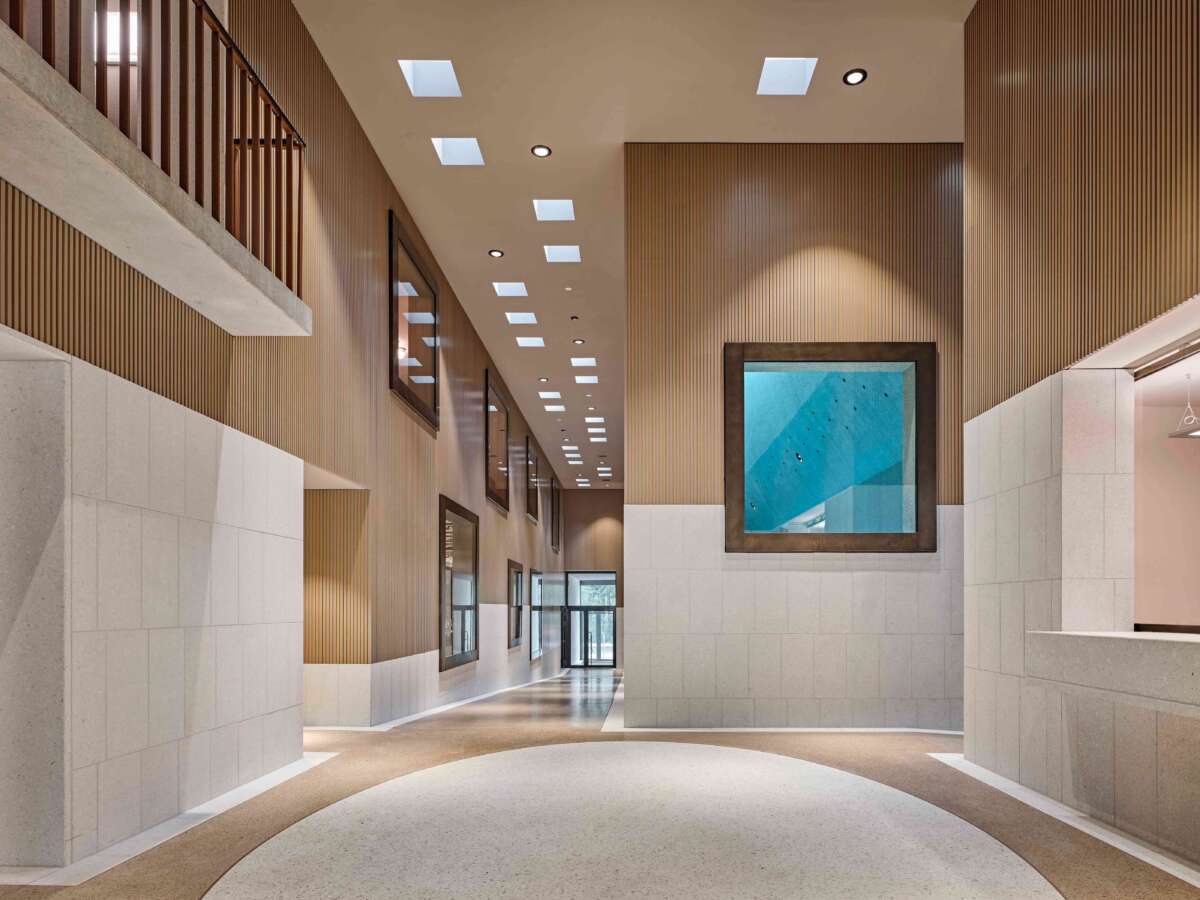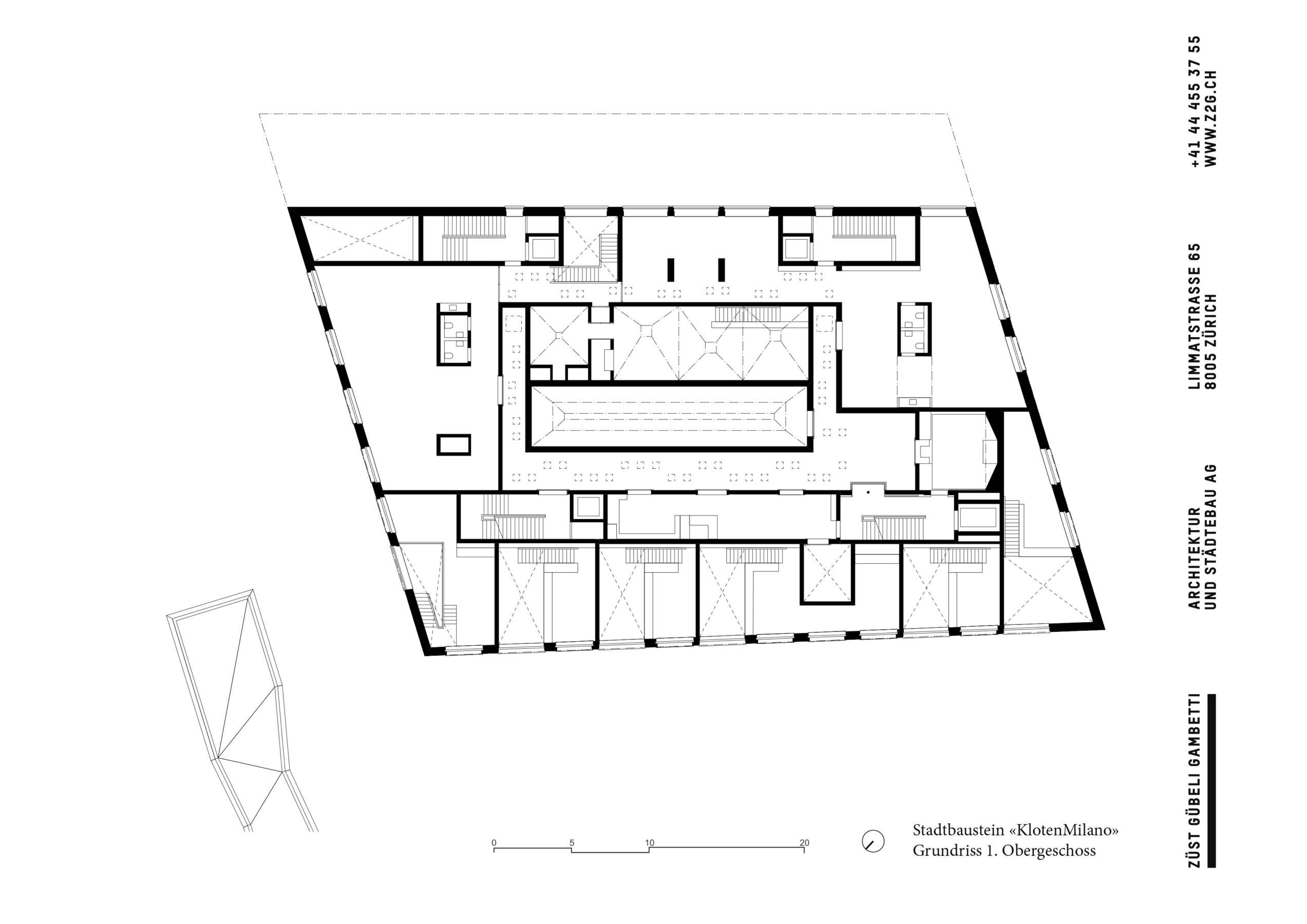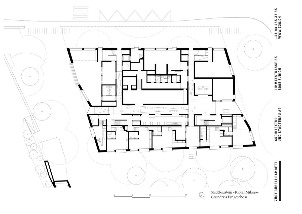 Züst Gübeli Gambettis Ersatzneubau für einen sanierungsfälligen 1970er-Wohnblock ist als ein Haus der Begegnung und des Zusammenlebens konzipiert, das mit einem facettenreichen Innenleben lockt. Direkt auf die Trottoir-Kante gesetzt, ruht es auf einem Sockel, der entlang der Hauptstrasse einen vitalen Nutzungsmix entfaltet. In seinem Inneren aber packt KlotenMilano die italienische Stadt in ein einziges Haus. Herzschlagader ist eine doppelstöckige Piazza mit zahlreichen Fenstern und Durchblicken, von der man über Treppen und Rampen ins geschäftige Innere gelangt.