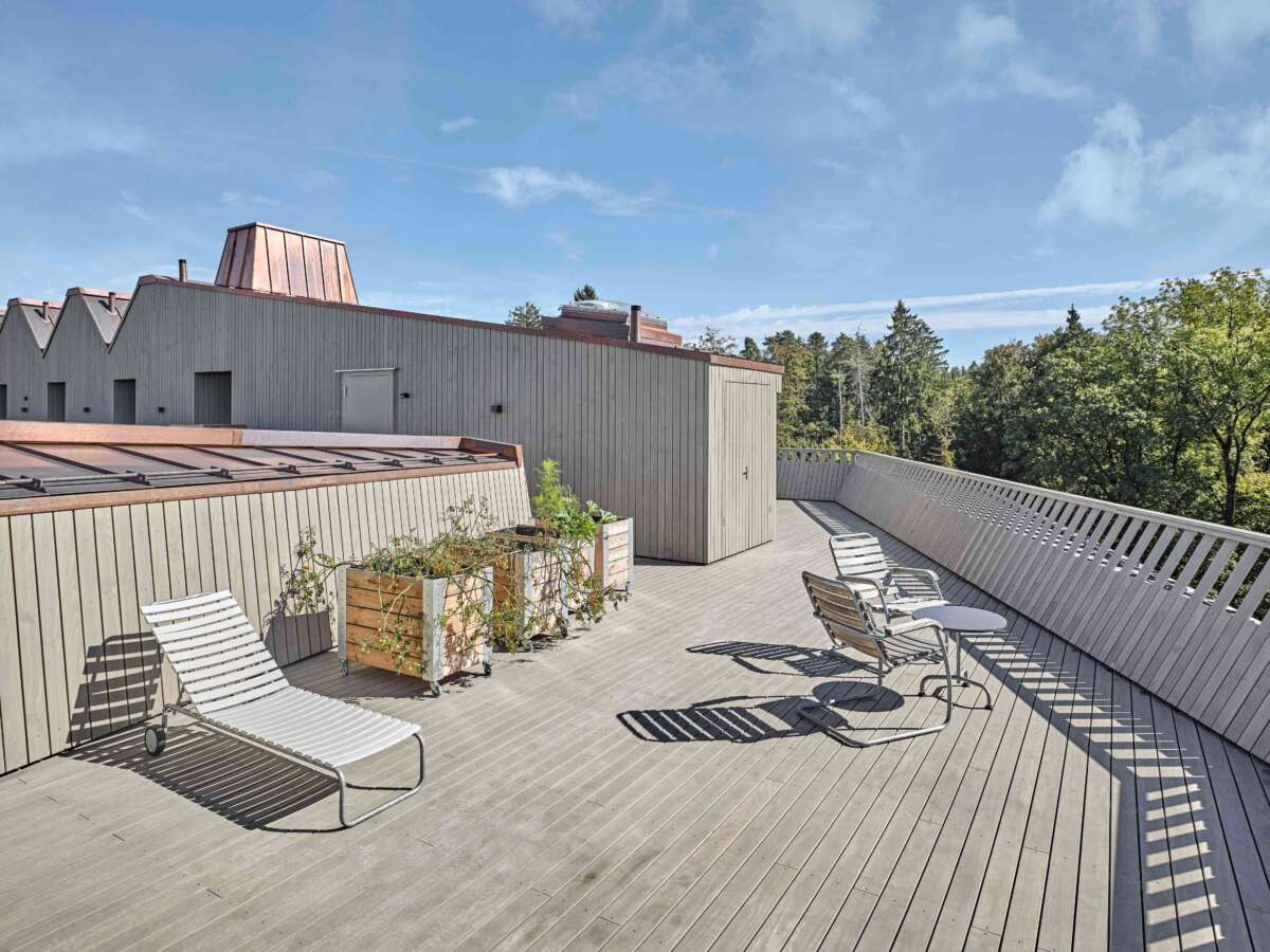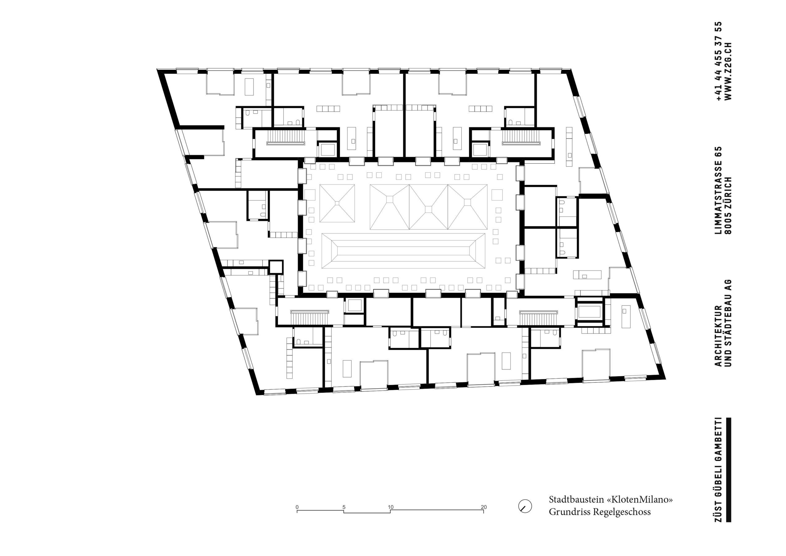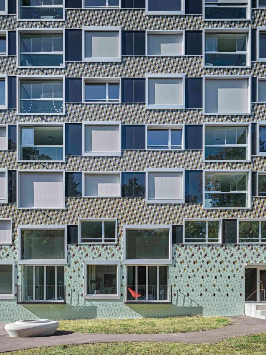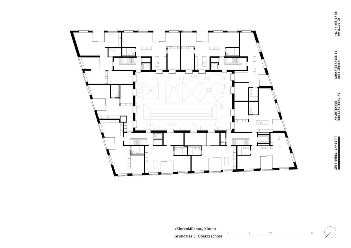 Auf acht Etagen wird hier nicht nur gewohnt und gearbeitet, sondern auch geschwommen, Fitness betrieben, Squash gespielt, gemeinsam gewaschen, gelesen und das Dach zum Relaxen, Handwerkern, Grillieren oder kollektiven Gärtnern genutzt. Mit seinen vielen Gemeinschaftsräumen und Begegnungszonen bietet der kompakte, auf Ökologie getrimmte Nutzungsstapel nicht nur erhebliche bauliche, sondern auch funktionale Verdichtung. Das Prinzip des Miteinanders war im Übrigen auch für seinen siebenjährigen Entstehungsprozess bezeichnend. KlotenMilano ist im engen Austausch mit einem innovativen Bauherrn und der Stadt Kloten entstanden. (mc)