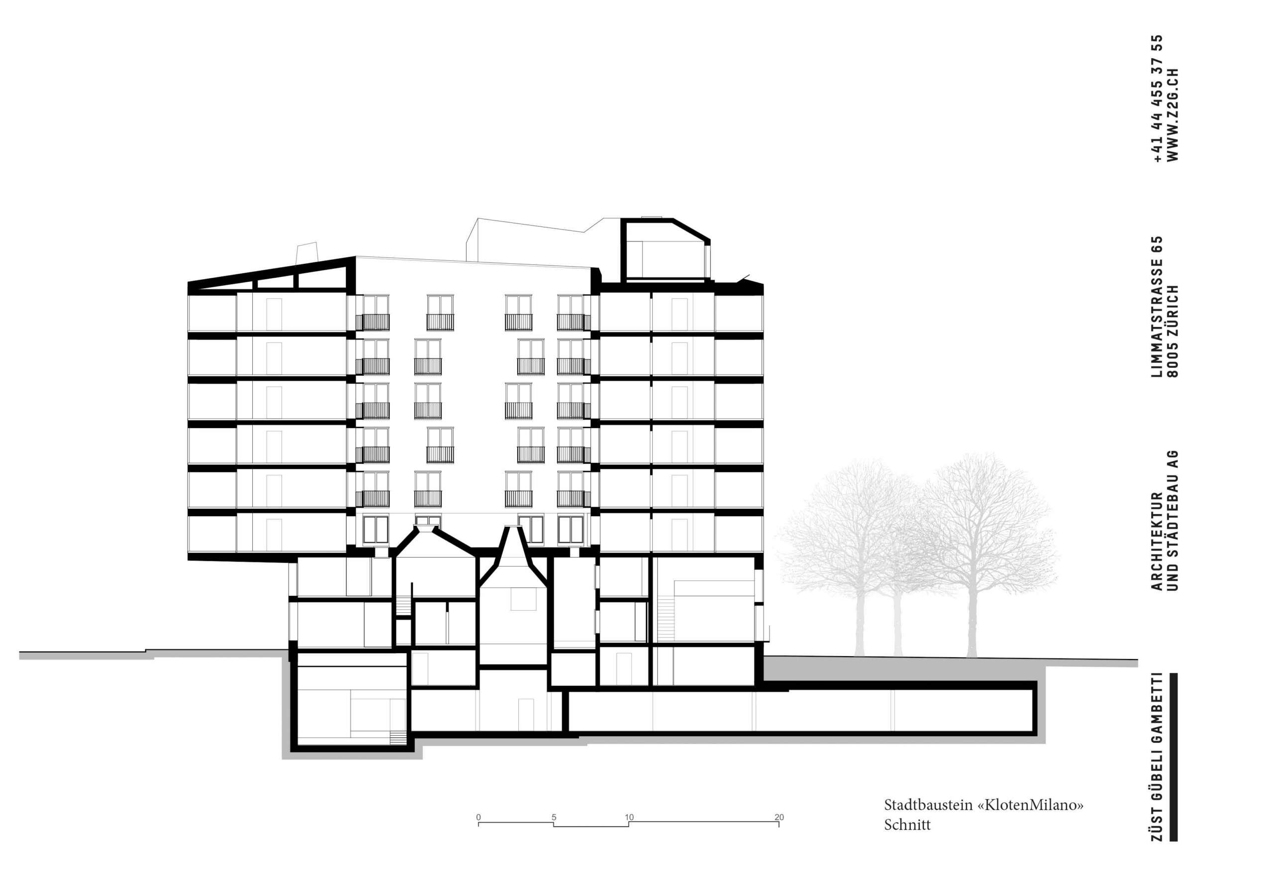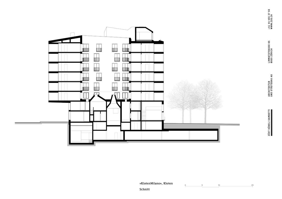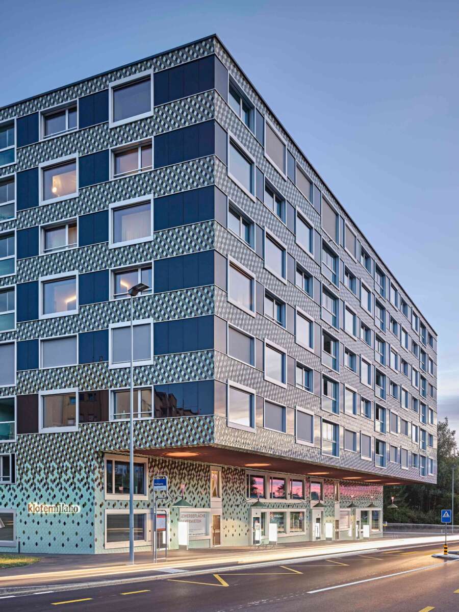 In Kloten spielt sich der Transformationsprozess zur Stadt mit neuer Identität in rasantem Tempo ab. Während der Dienstleistungsriese The Circle beim Flughafen das andere Ende der Stadt markiert, kristallisiert sich am Gewerbestandort Balsberg ein weiterer komplementärer Pol zum Zentrum heraus. Hier an städtebaulich brisanter Lage steht nun ein kühnes Gebäude, das dem Ortseingang im Süden ein markiges Gesicht verleiht. KlotenMilano ist eine Hommage an das Mailand der fünfziger Jahre und die Nachkriegsmoderne. Es ist ein Synonym für die Aufbruchsstimmung, die auch in Kloten herrscht. Und ähnlich wie die norditalienische Metropole zeigt es seine wahre Schönheit erst beim Blick hinter die Fassade.