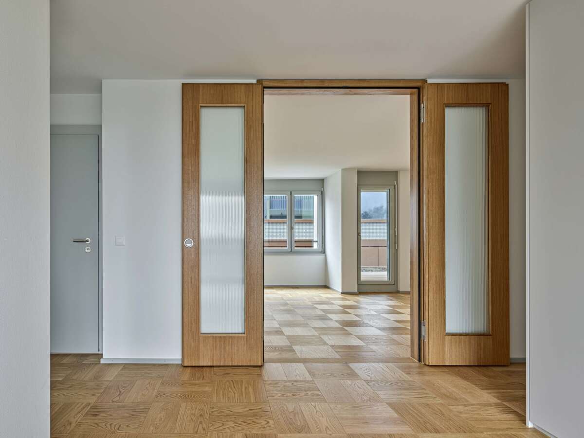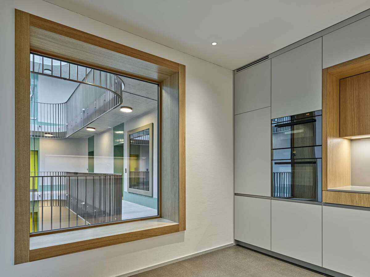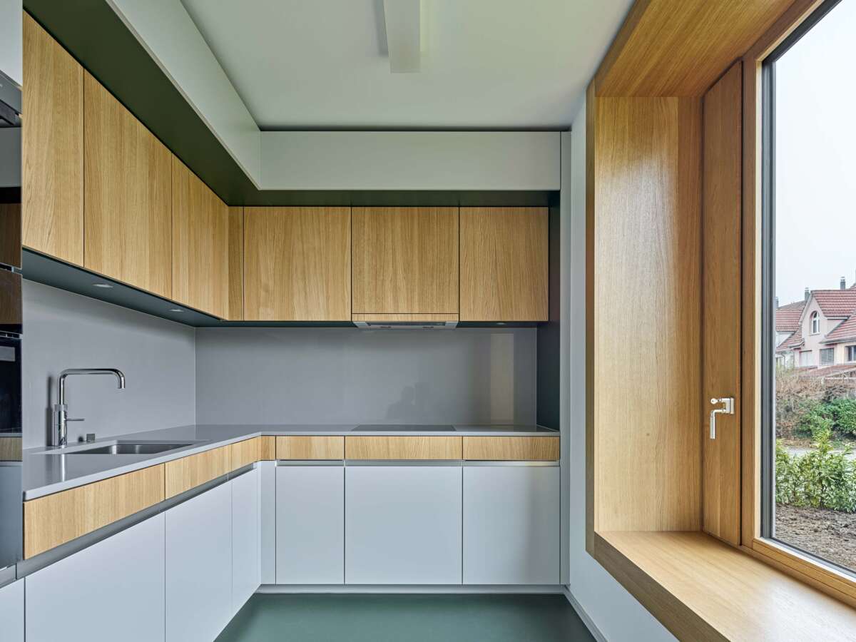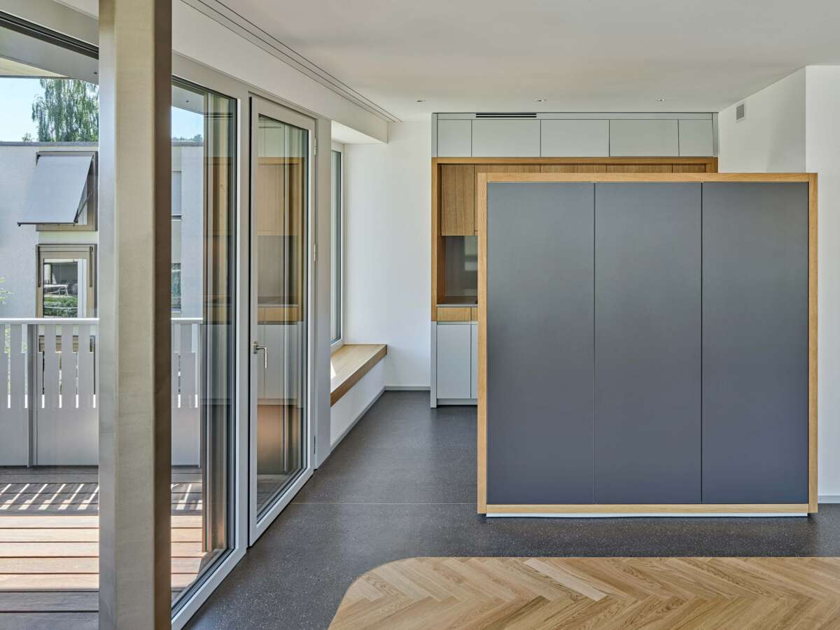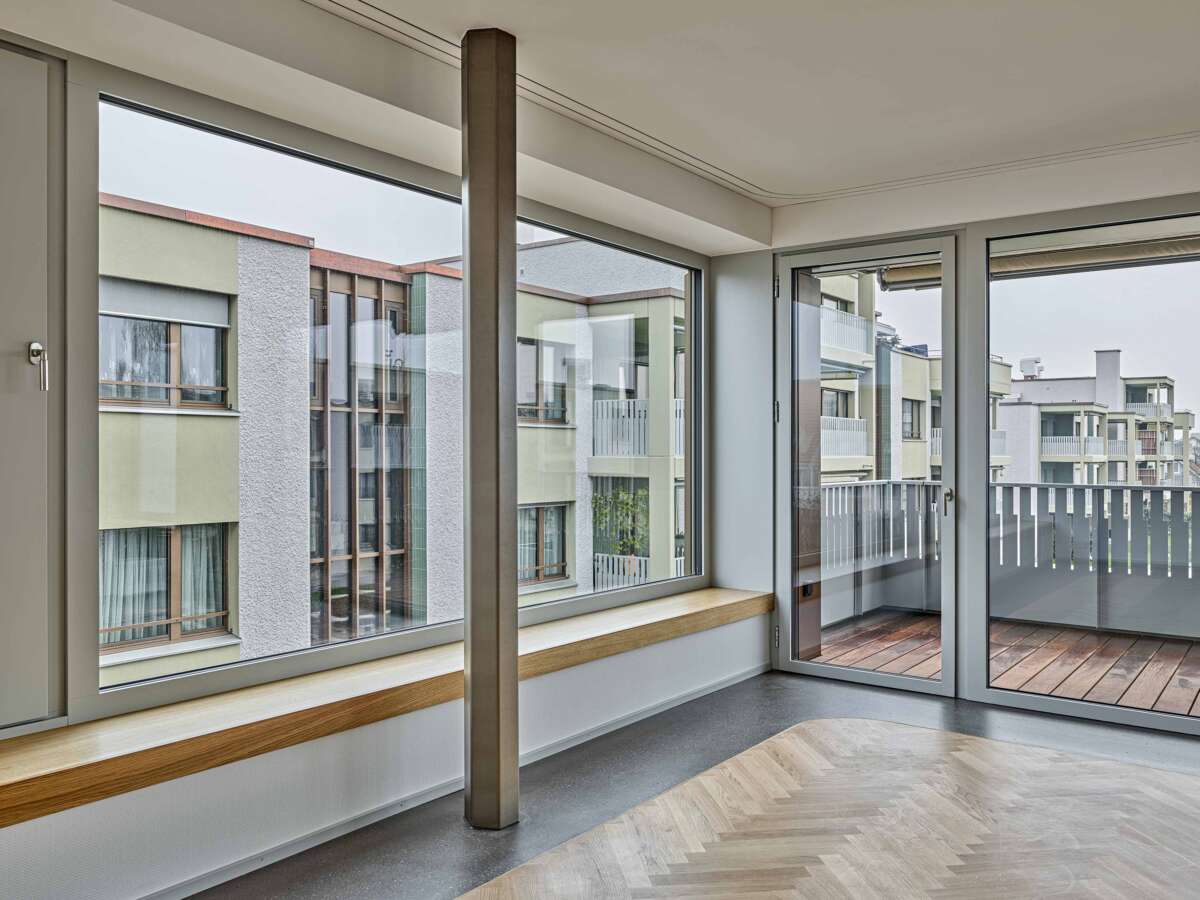 Die neuen Wohnungen basieren auf einer Kammerstruktur zunehmender Privatheit. Es sind Räume, in denen man sich auch ohne Möbel eingerichtet fühlt: Fensterbegleitende Holzbänke, sechseckige Stützen, Böden mit Intarsien und Schreinerarbeiten vermitteln Liebe zum Detail und das Gefühl, «zuhause» zu sein. Beim Bestand blieb es bei kleinen, hochwertigen Eingriffen. In den Küchen dominiert neu ein grosses Kastenfenster, das auch als Sitzbank dient. Die Küchenzeile wurde ins Esszimmer verlängert, welches sich via Flügeltüre in den Wohnbereich erweitert. Und statt der «Abfallsack-Balkone» sorgen nun Logenplätze für lustvolle Frühstücks-Momente. (mc)
