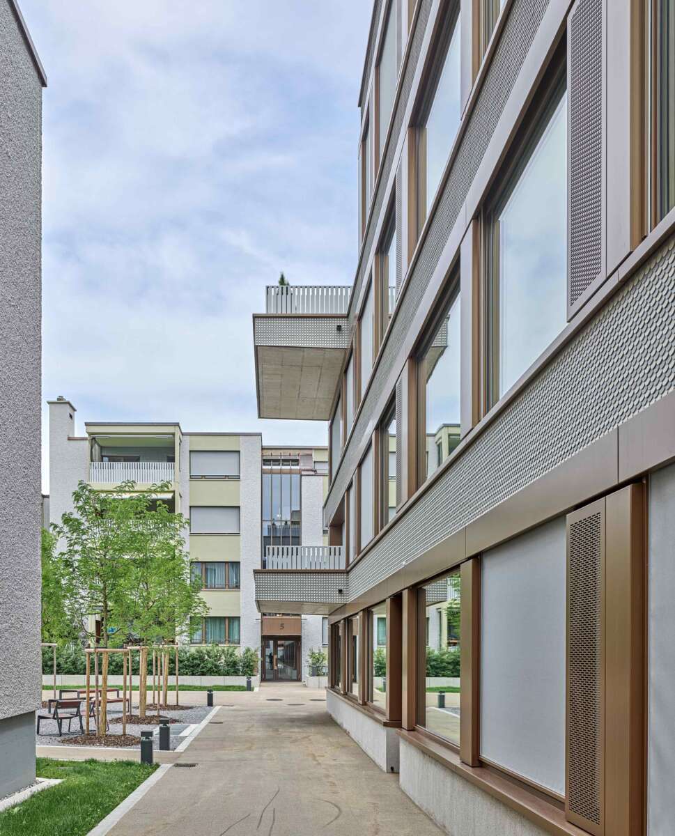 Der Erneuerungsbedarf einer 1980er-Siedlung sowie das Verdichtungsgebot der Stunde erforderten eine kluge Strategie: Statt alles der Abrissbirne preiszugeben, entwickelten Züst Gübeli Gambetti in einem inspirierenden Prozess mit dem Bauherrn ein Projekt, bei dem punktuelle Interventionen den Bestand aufwerten. Anders als das oft austauschbare Bild ewiggleicher Wohnblöcke kündet die neu sanierte Siedlung von grossem Beziehungs- und Detailreichtum, während ein absoluter Gestaltungswille Alt und Neu zur kommunikativen Gestalt zusammenbindet.
