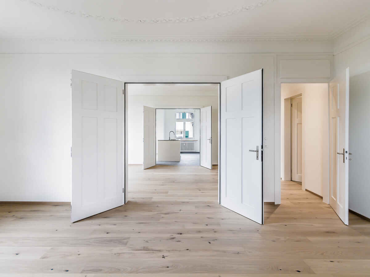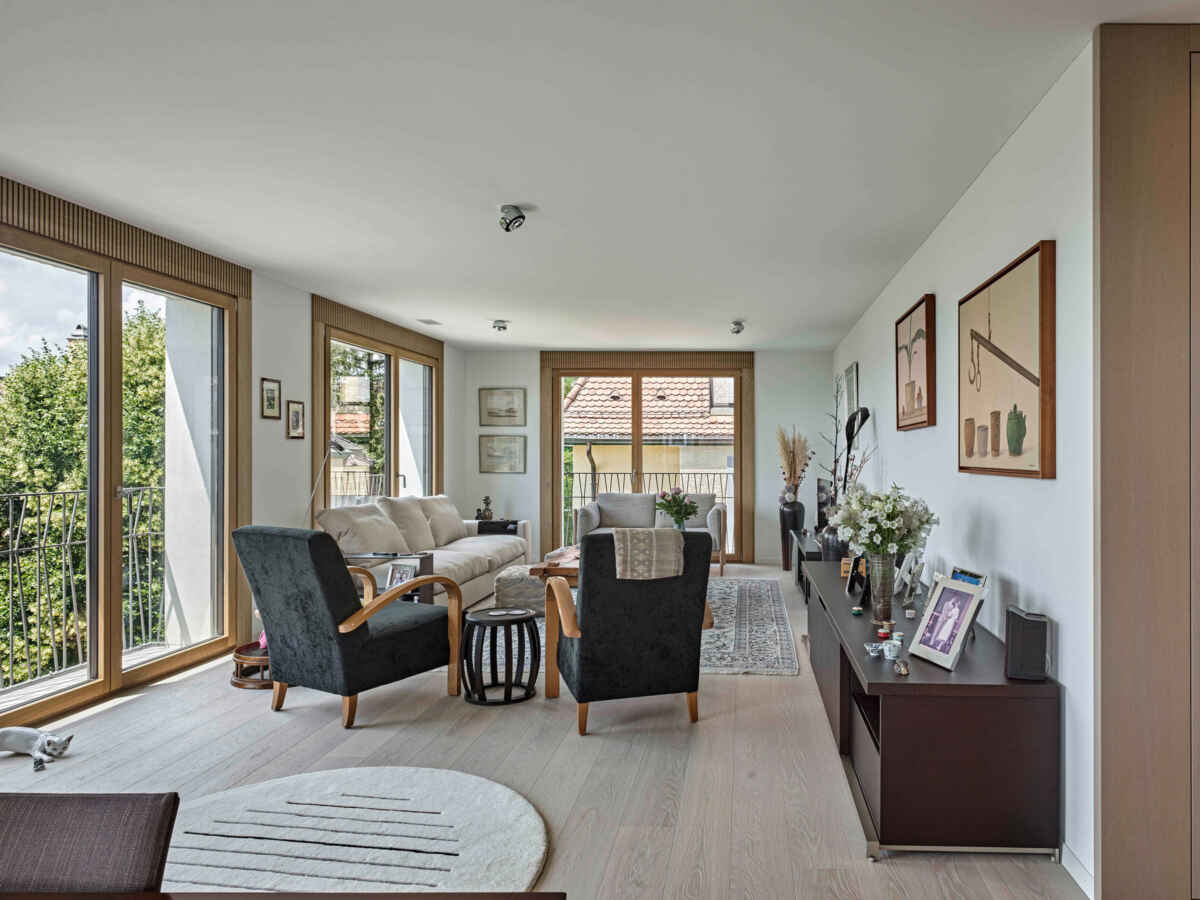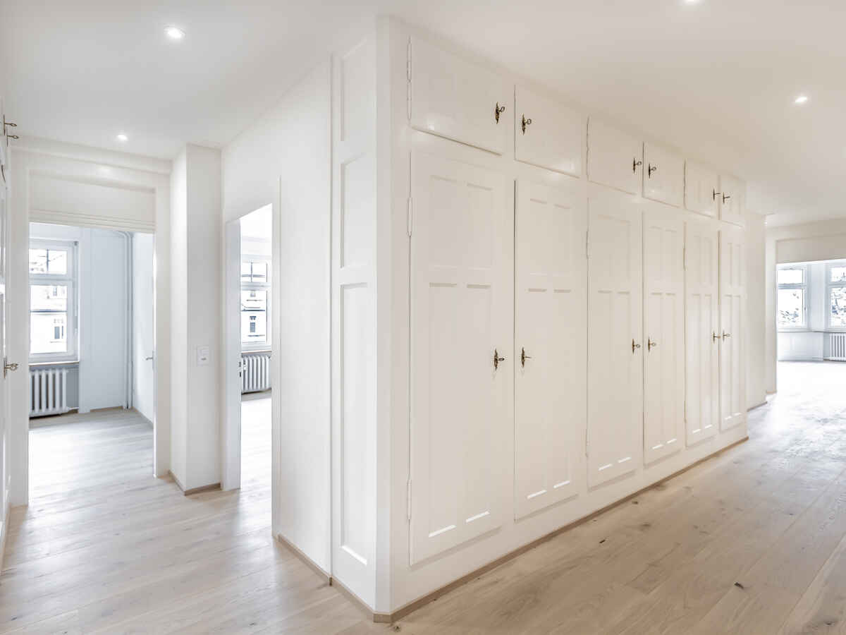 Auch sonst knüpft der Neubau an das Kammersystem gründerzeitlichen Wohnens an. Angedeutete Enfiladen, Durchblicke und Raumzugänge über die Diagonale bereichern die Wohnungen. Die Eckbalkone mit Vorhängen sind echte Raumerweiterungen und rufen Erinnerungen an die Veranden der Jahrhundertwende wach. Die Sorgfalt, die auf die Materialisierung verwendet wurde, ist auch bei der Altbausanierung zu spüren. Sie sollte das Exemplarische wieder sichtbar machen, ohne auf heutigen Komfort zu verzichten. An geeigneter Stelle wurde ein Lift eingebaut, während Täfer, Türen und Einbauten eine Auffrischung erfuhren. (mc)