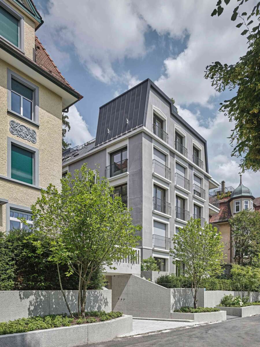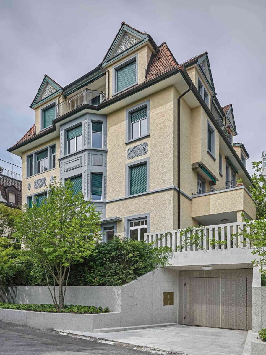 Immer mehr Altbauten müssen auch am Zürichberg im Zeichen der Verdichtung weichen. Umso glücklicher empfand Züst Gübeli Gambetti die Aufgabe, ein Stadthaus von 1914 zu sanieren und für das angrenzende Gartengrundstück einen passenden Neubau vorzusehen. Beim Entwurf liess man sich von der bürgerlichen Wohnatmosphäre des Viertels leiten. Entstanden ist ein Bau, der über einen Fächer an Reminiszenzen mit seinen gründerzeitlichen Nachbarn verbunden ist. Einer der Mass nimmt, ohne sich anzubiedern.