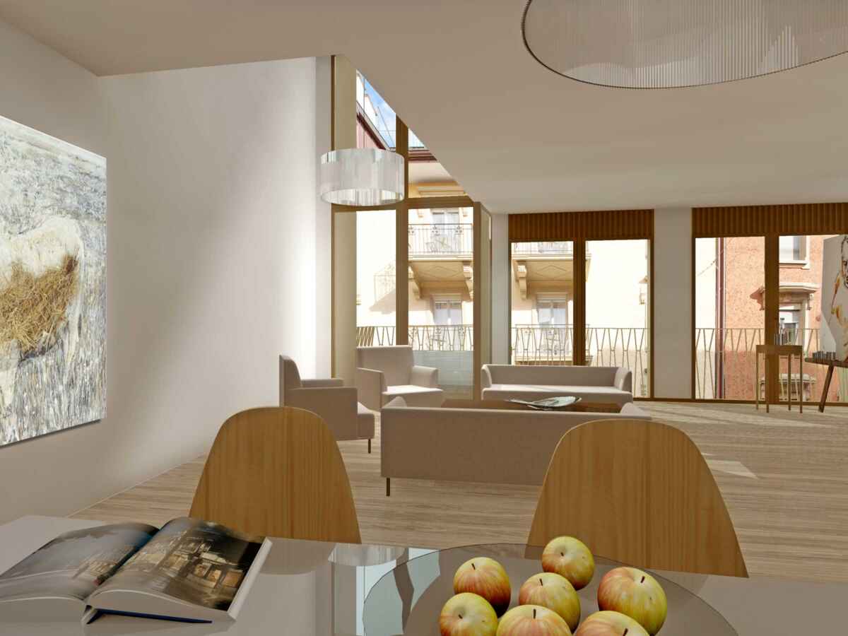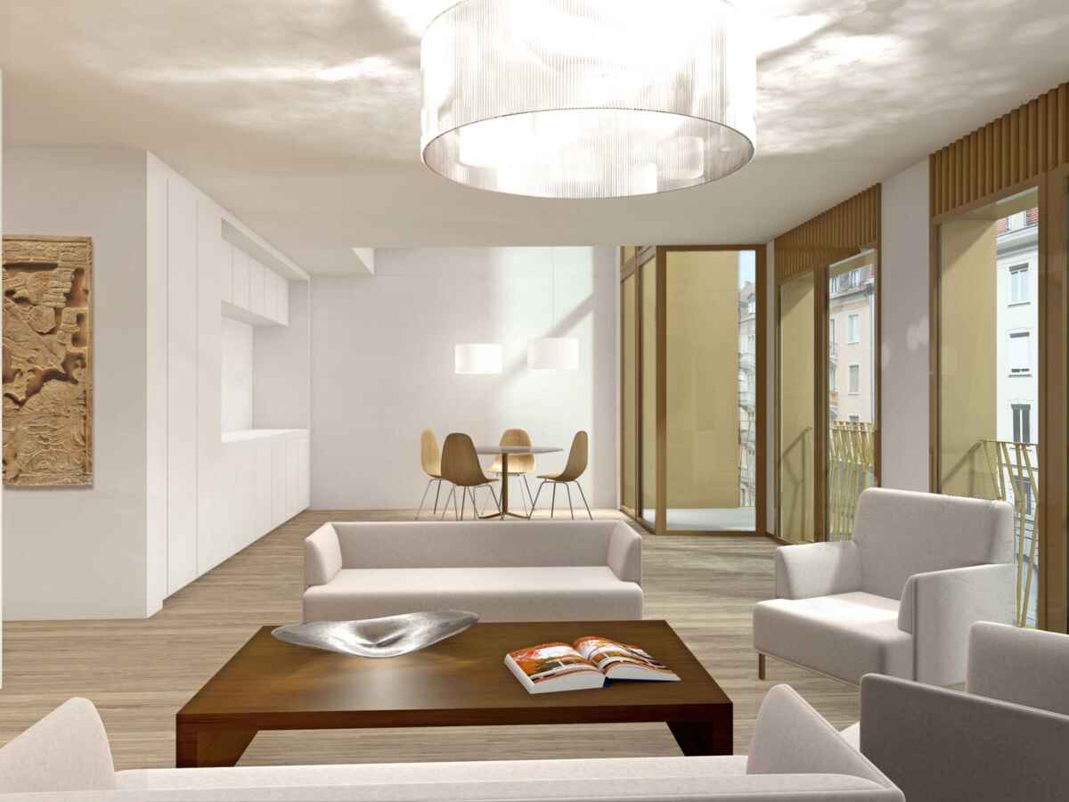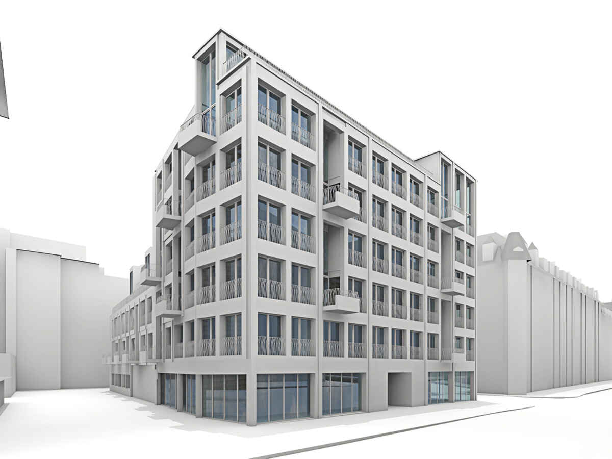 Die neue Nutzung des Hauses soll nach aussen getragen werden. Die Liegenschaft erhält ein neues Gesicht und eine neue Identität. Kleinmassstäbliche Elemente wie vorspringende Balkone und Attikaaufbauten schaffen eine wohnliche Atmosphäre und verweisen auf die neue Nutzung. Französische Fenster und vorspringende Balkone prägen das neue Fassadenbild als ein kontextbezogener Stadtbaustein, als Wohnhaus mit Gewerbesockel. Ein wichtiges Merkmal der Wohnungen sind die neuen Stadtbalkone. Die Wohnungen bekommen eine partielle Überhöhe zur besseren Belichtung der Räume. Diese ortsbezogenen Merkmale schaffen für jede Wohnung eine spezifische Qualität.