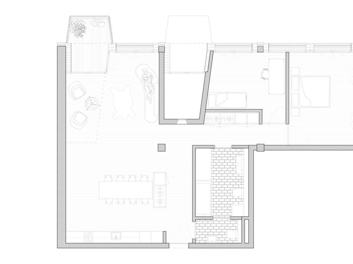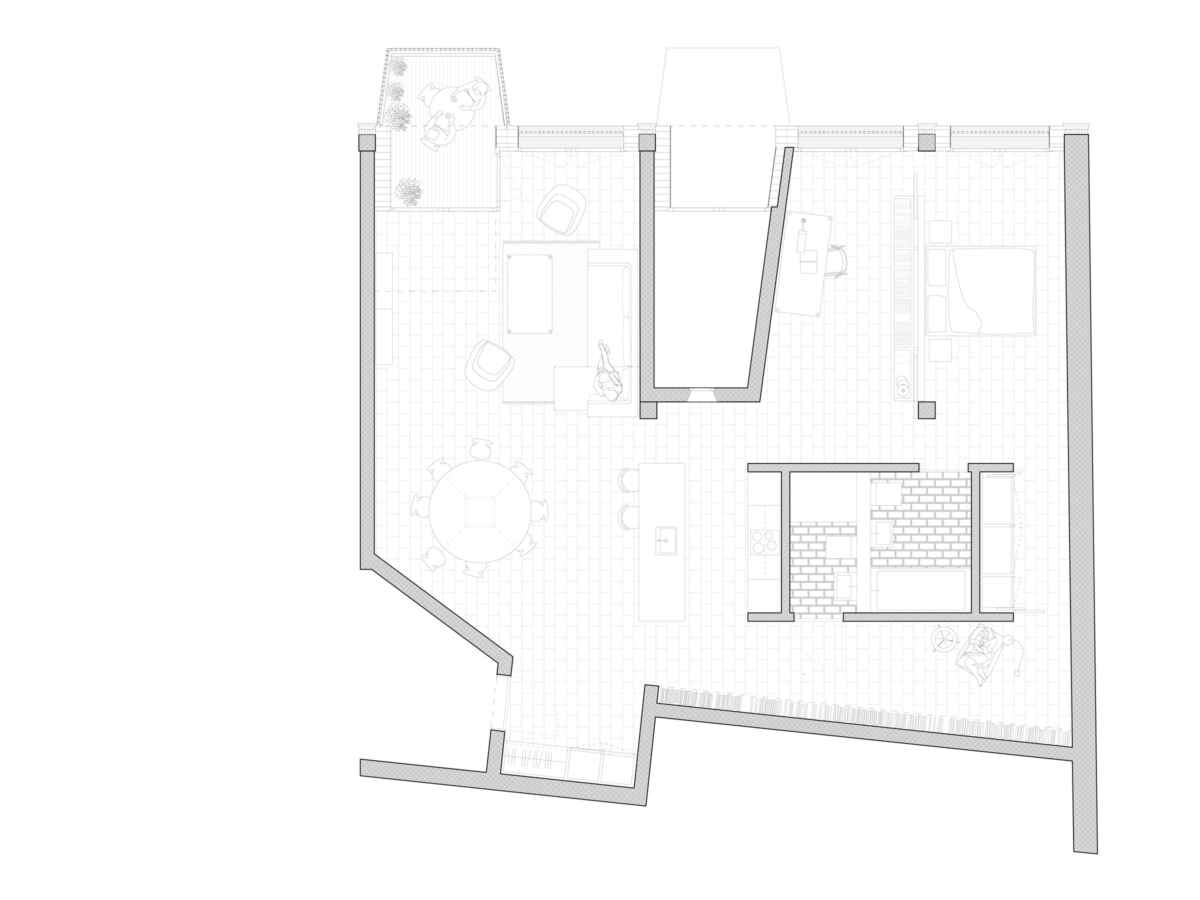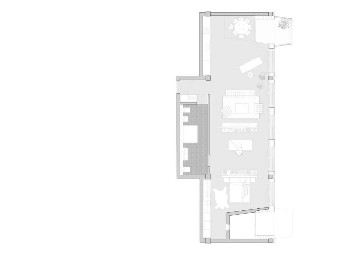 Die neue Nutzung des Hauses soll nach aussen getragen werden. Die Liegenschaft erhält ein neues Gesicht und eine neue Identität. Kleinmassstäbliche Elemente wie vorspringende Balkone und Attikaaufbauten schaffen eine wohnliche Atmosphäre und verweisen auf die neue Nutzung. Französische Fenster und vorspringende Balkone prägen das neue Fassadenbild als ein kontextbezogener Stadtbaustein, als Wohnhaus mit Gewerbesockel. Ein wichtiges Merkmal der Wohnungen sind die neuen Stadtbalkone. Die Wohnungen bekommen eine partielle Überhöhe zur besseren Belichtung der Räume. Diese ortsbezogenen Merkmale schaffen für jede Wohnung eine spezifische Qualität.