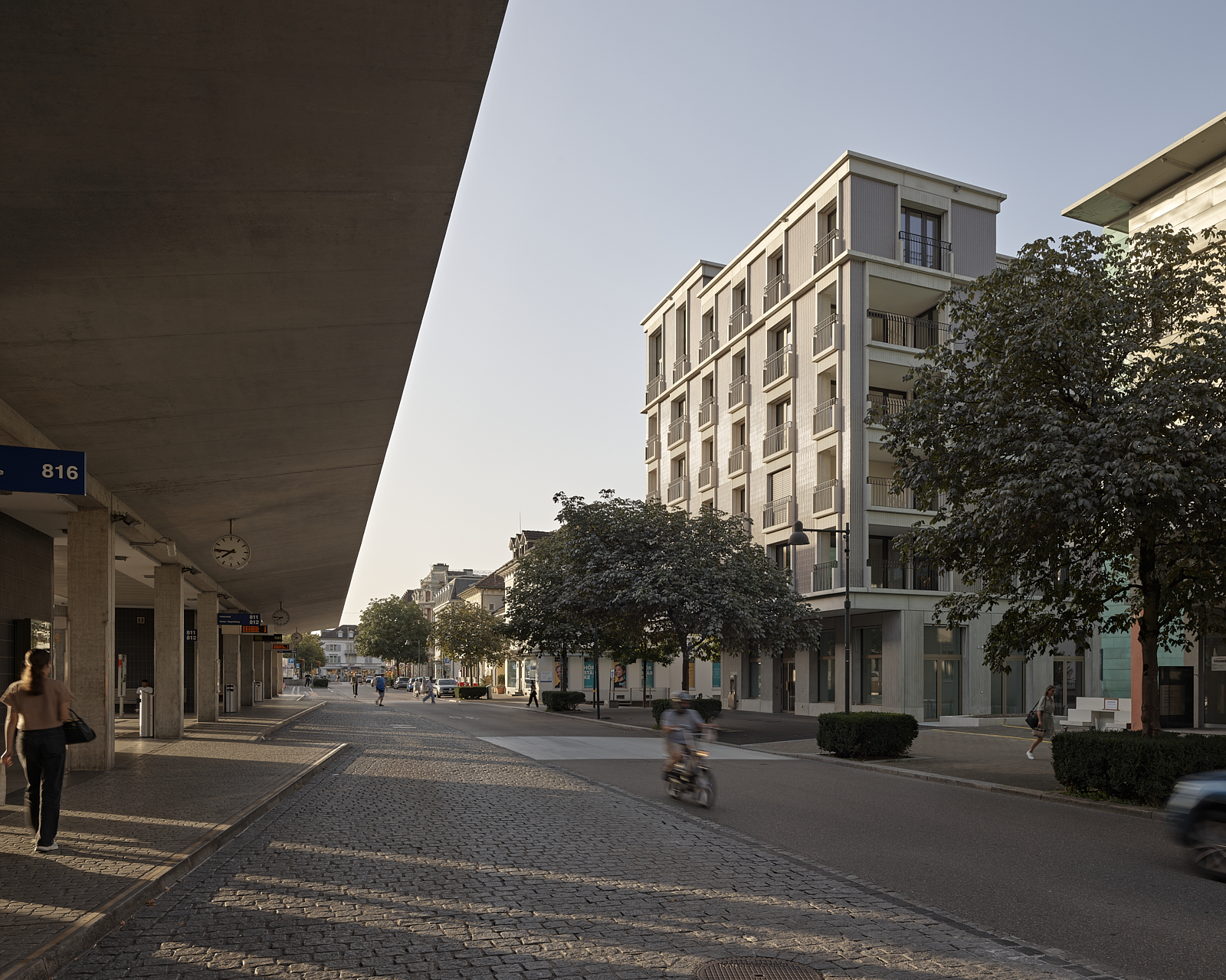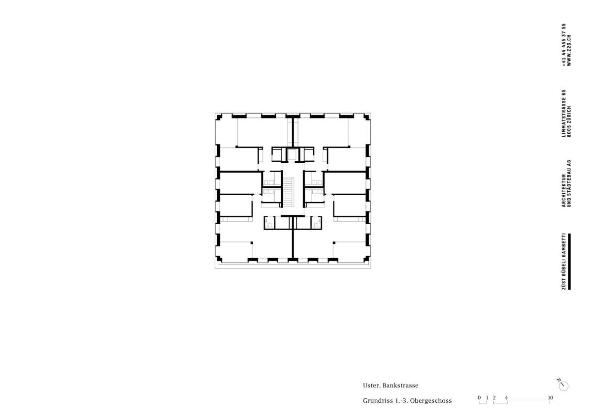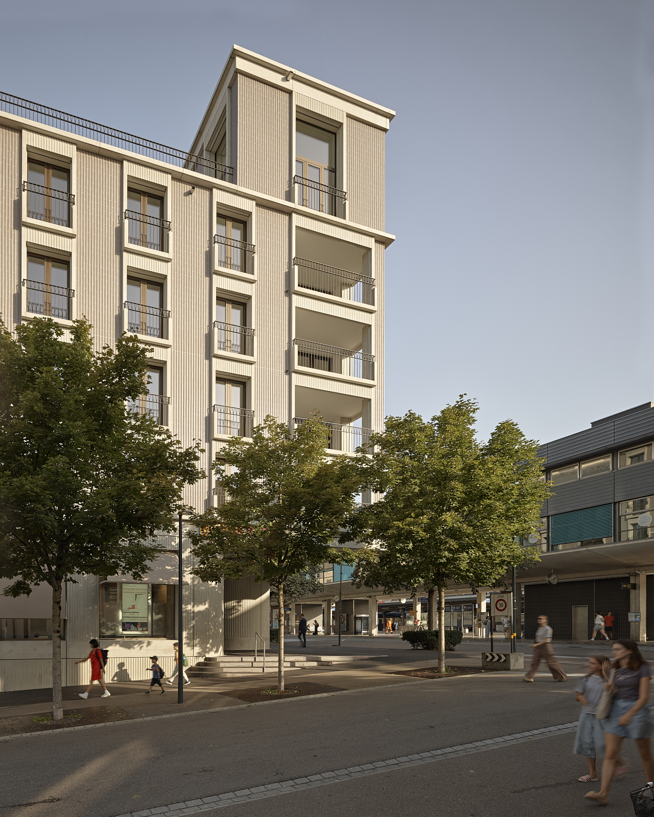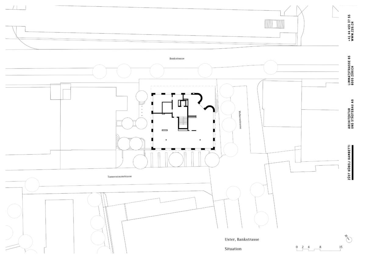 Aufbruchstimmung in Uster, die neue Skyline zeichnet das klare Bekenntnis zur Geschäfts- und Wohnstadt. Auch rund um den Bahnhof stehen diverse städtebauliche Projekte an. Nach mehreren Studien und wechselnder Bauherrschaft wurde Züst Gübeli Gambetti für einen Ersatzneubau direkt vis-à-vis mandatiert. Angrenzend an die Kernzone sowie eingereiht in eine Häuserzeile, entwickelten sie einen Solitär, der Durchlässigkeit und Mehrwert für die Öffentlichkeit schafft. Dabei werden auch Themen des Vorgängerbaus aufgegriffen.
