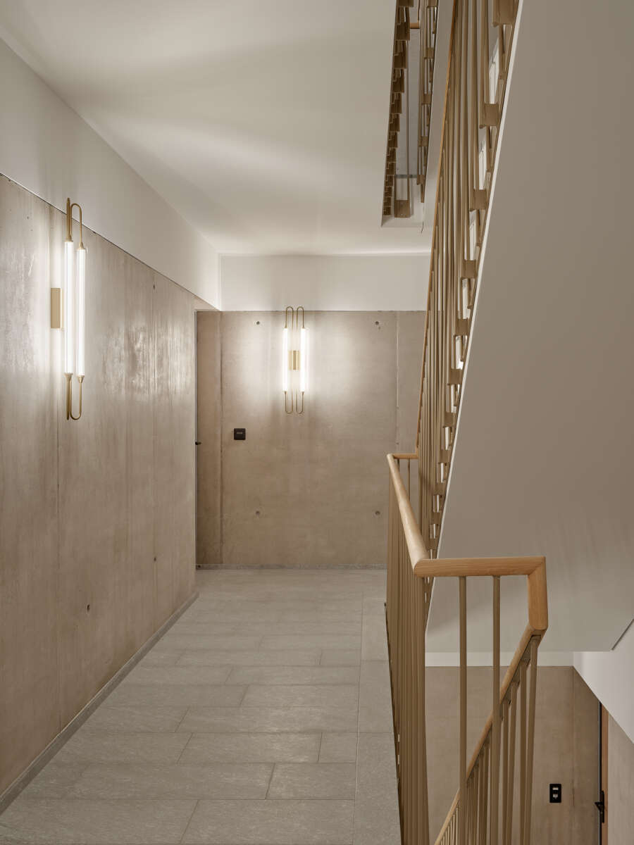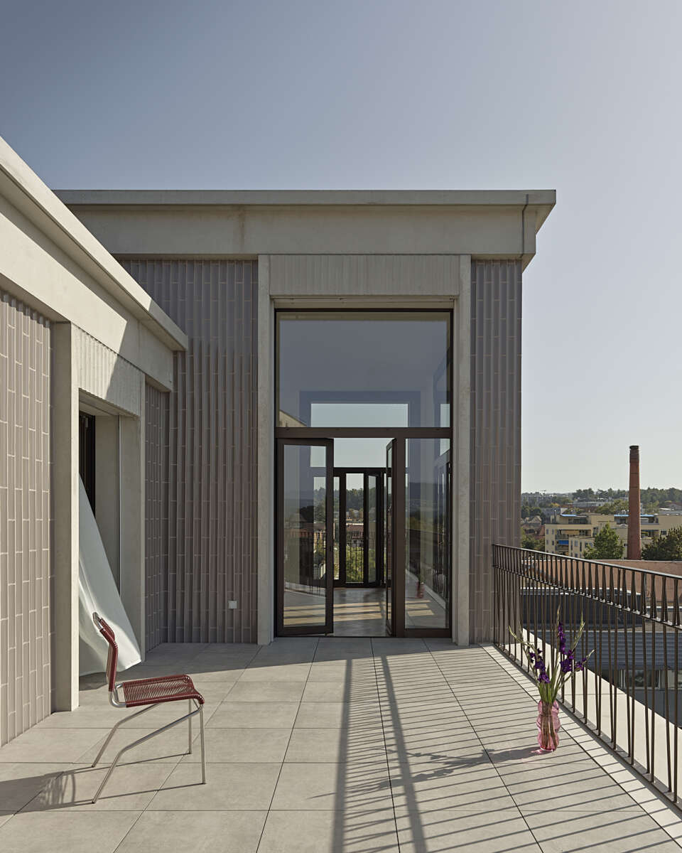 Die prominente Ecke an der Webernstrasse wird nebst skulpturalem Eingang mit einem Attikaakzent bedacht – auch als Reminiszenz an den Vorgänger. Zudem erweist sich das dank des Geländesprungs freigespülte Untergeschoss als Raumgeschenk, das zusammen mit dem Erdgeschoss eine Zäsur zur Strasse bewirkt. Die Obergeschosse teilen sich je vier zweiseitig orientierte Wohnungen mit Eckloggien. Das Attika wird je hälftig von einer grossen Wohnung besetzt, wobei eine vom überhohen Eck-Raum profitiert. Gekleidet ist alles in städtische Angemessenheit: Über dem elegant gerillten Betonsockel alternieren – getrennt von einem kräftigen Gurt – markante Fenstergewände mit konkaven Keramikpartien. (mc)
