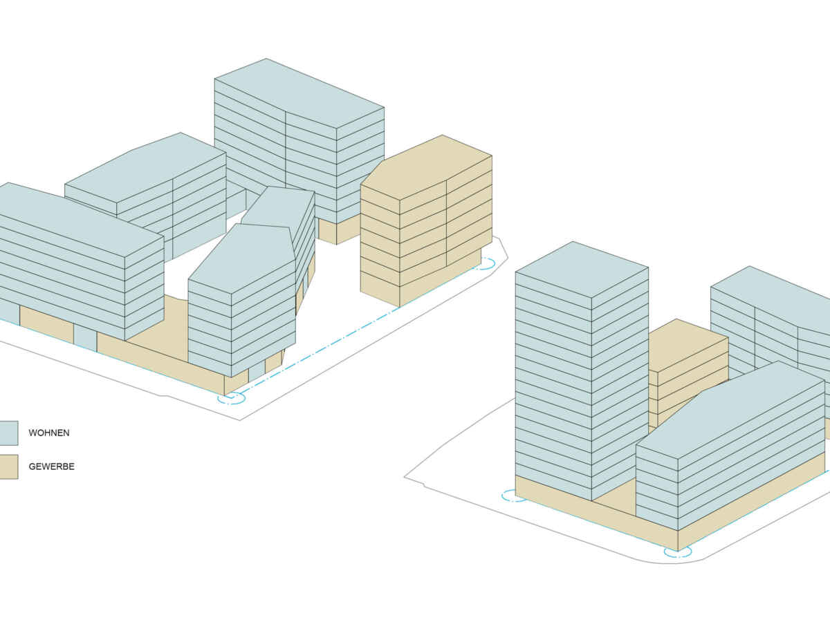 Wohn- und Gewerbeensemble Althardstrasse Kategorie StädtebauMixed Use Ort Regensdorf Auftragsart Studienauftrag Jahr 2017 Status Wettbewerb
