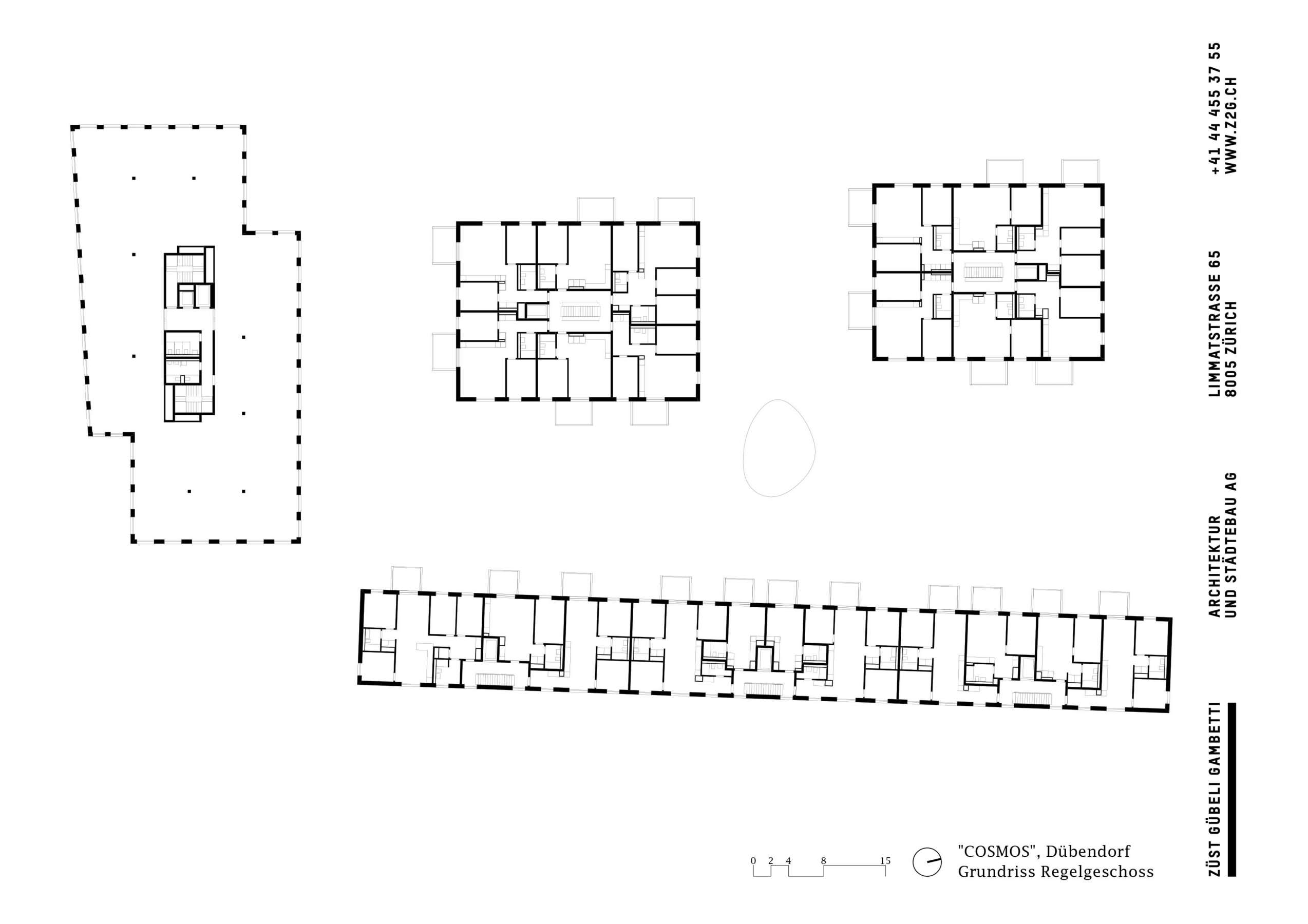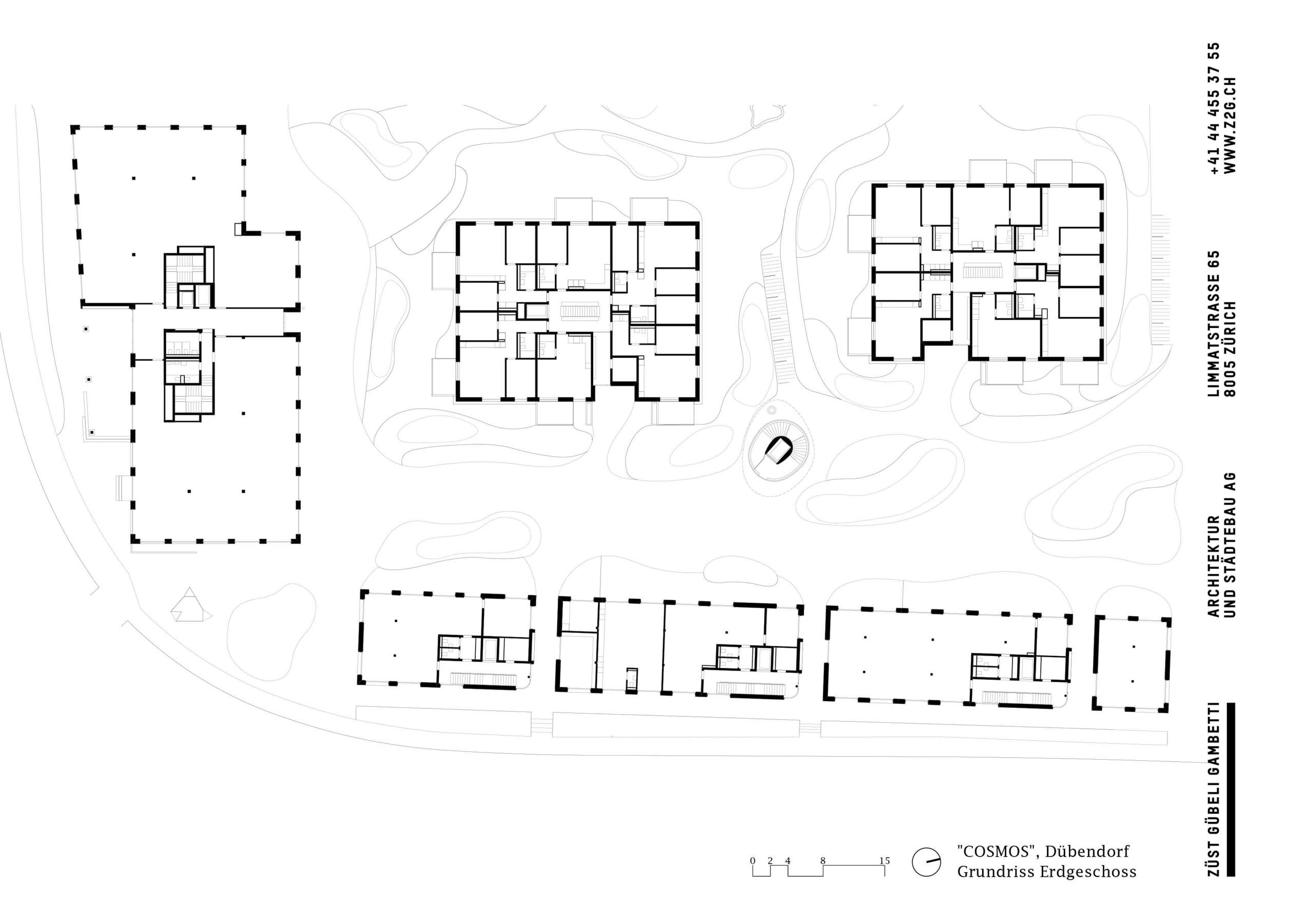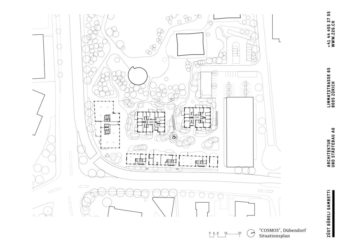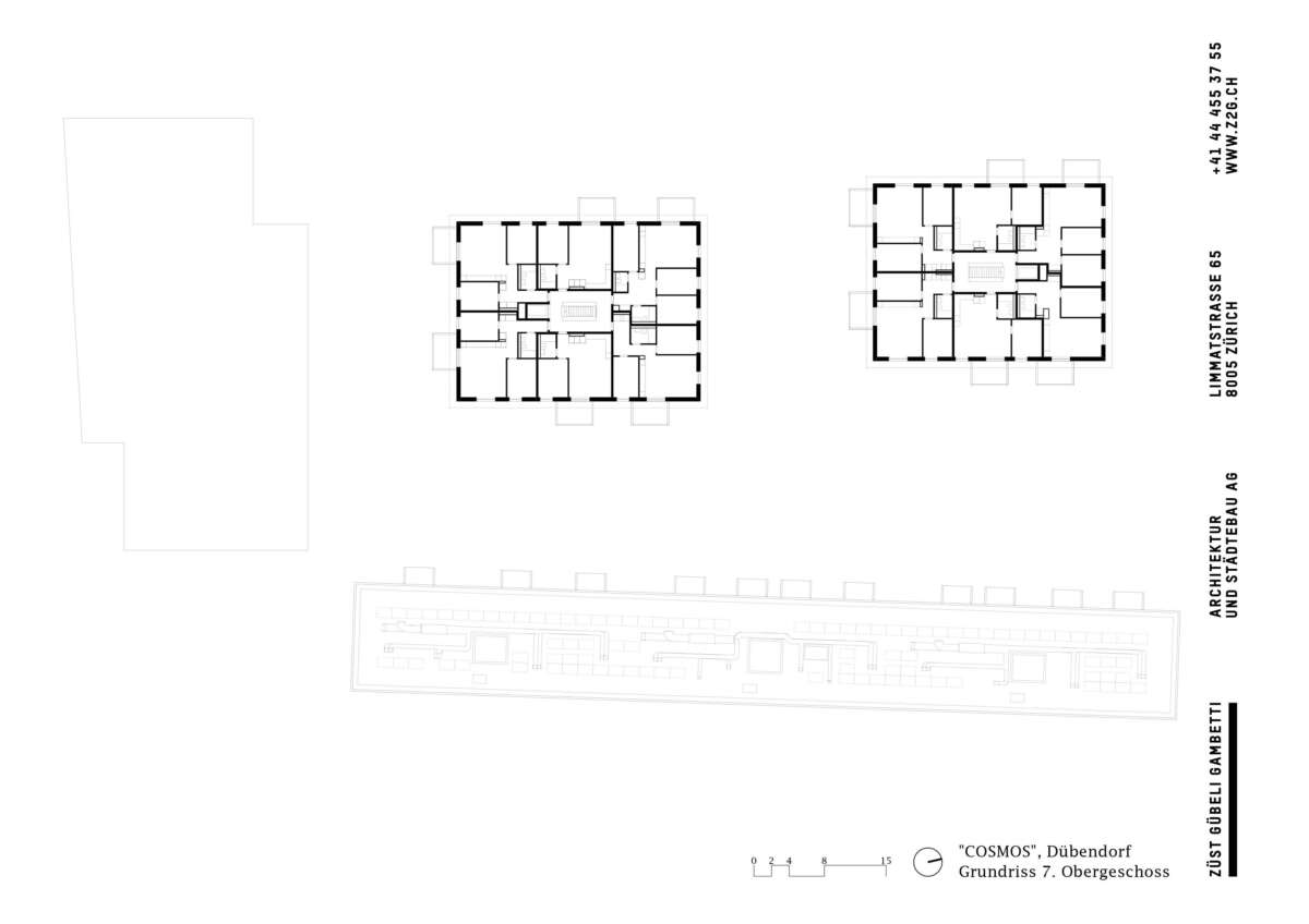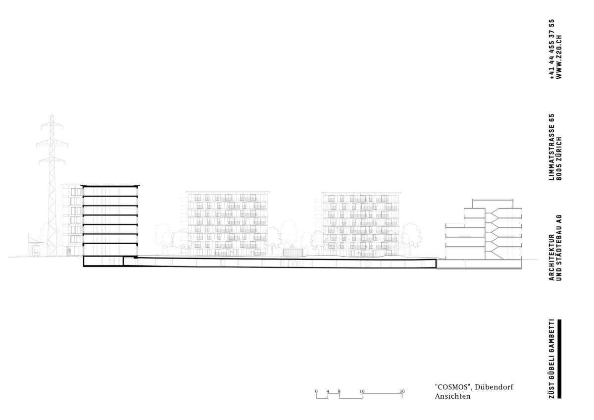 Das Hochbord-Quartier an Zürichs Stadtrand will sich zum vielfältigen Zentrum mausern. Mit dem COSMOS ist in prominenter Ecklage ein Ensemble aus Wohnen und Arbeiten entstanden, das im Südwesten das Einfallstor markiert. Dabei bot der direkt angrenzende Park eine einmalige Lagegunst, an die die Bebauung anknüpft. Inmitten inselhafter Investments und hochschiessender Solitäre sollte ein Ort entstehen, der das Boom-Quartier mit hochwertigem, bezahlbarem Wohnraum versorgt. Und zugleich belebende Impulse verschafft. So will die präzise Setzung vor allem eins: Verbindungen schaffen – zum Park, zwischen den Häusern und auch zum Kontext.