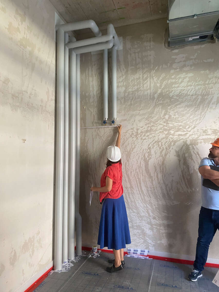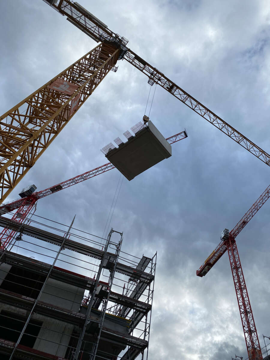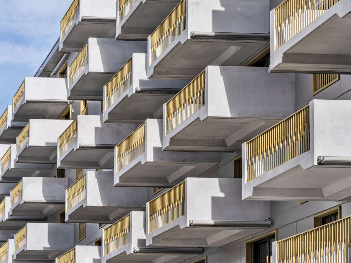 Ob Wohnen oder Arbeiten, die Fassaden dominiert ein strenges Raster aus sechs Fenstertypen, die mit den in den Wohnhof ausgreifenden Balkonschubladen alternieren. Sie überspielen die innere Variabilität der 162 Wohnungen. Daraus spricht der Spagat zwischen Wirtschaftlich- und Nachhaltigkeit: Alles ist möglichst einfach gehalten, das Material dafür am richtigen Ort investiert. Hier ein paar assoziative Einblicke in die Entstehung eines neues COSMOS …