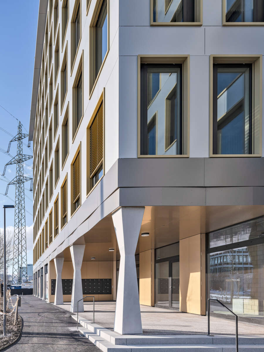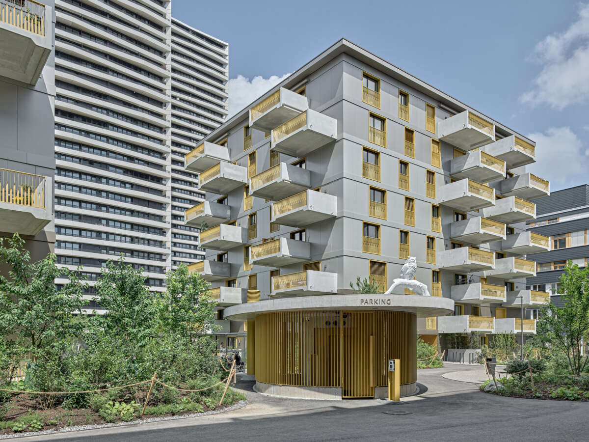 Ein neues Ensemble will Dübendorfs Stadtumbau unterstützen: Beim Entwurf lag das Augenmerk weniger auf der überbauten Fläche als auf der Lagegunst des benachbarten Parks – sowie der Idee der Suffizienz. Inmitten der inselhaften Investments und Solitäre sollte ein poröser Ort entstehen, der das Boom-Quartier mit hochwertigem, bezahlbarem Wohnraum versorgt.
