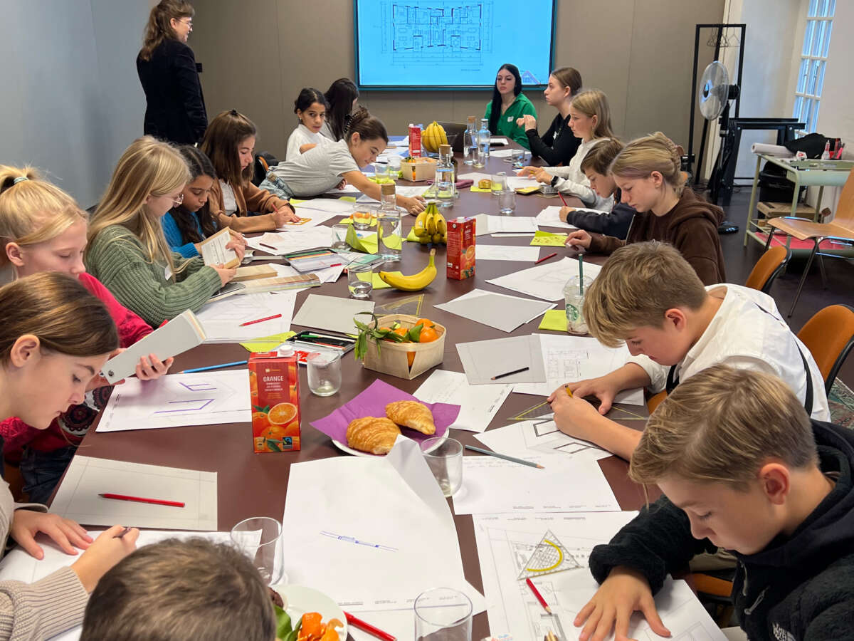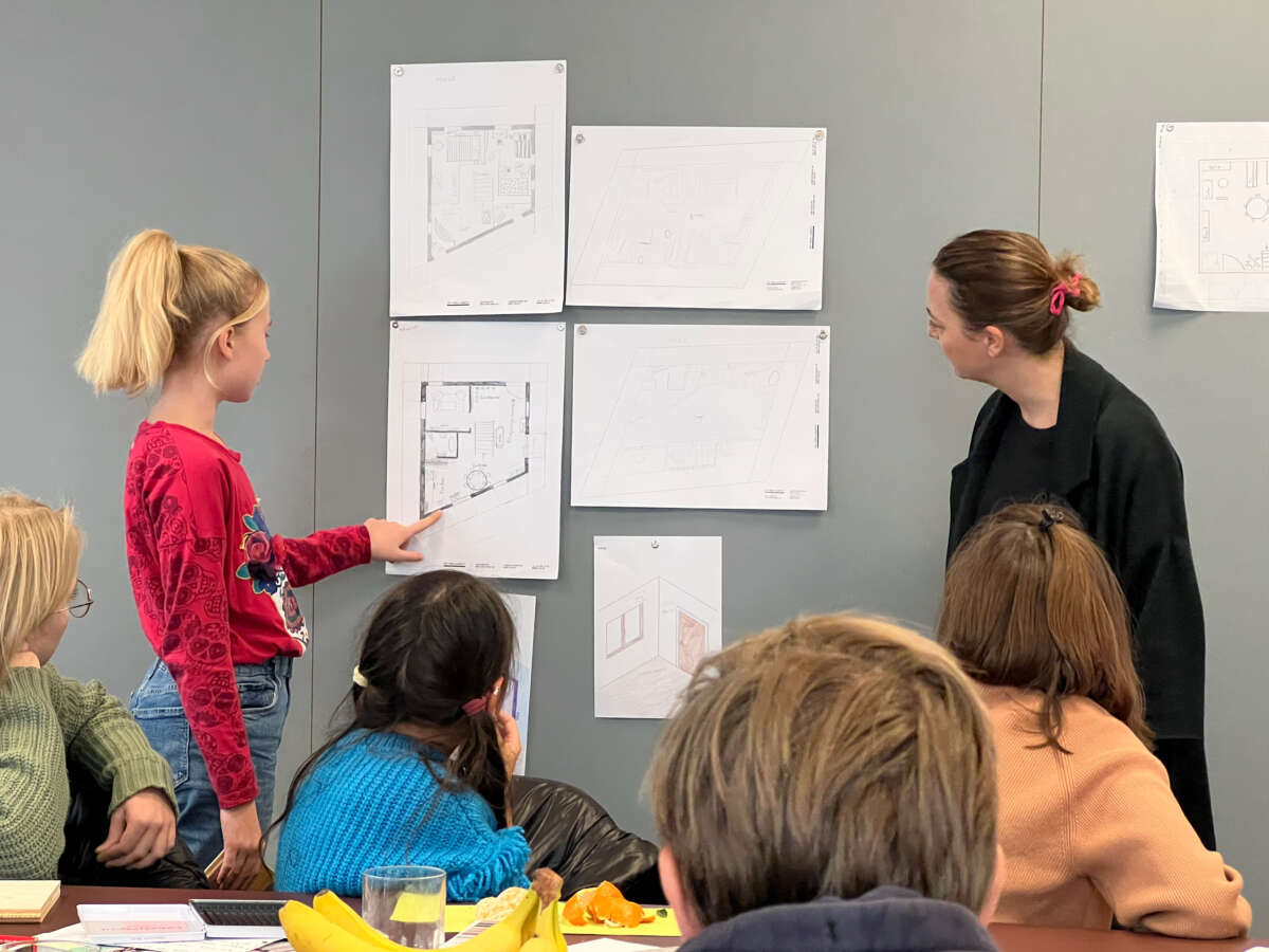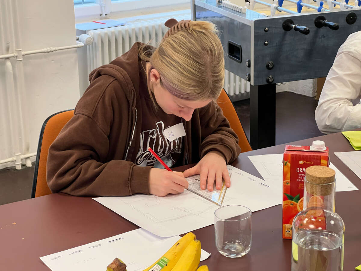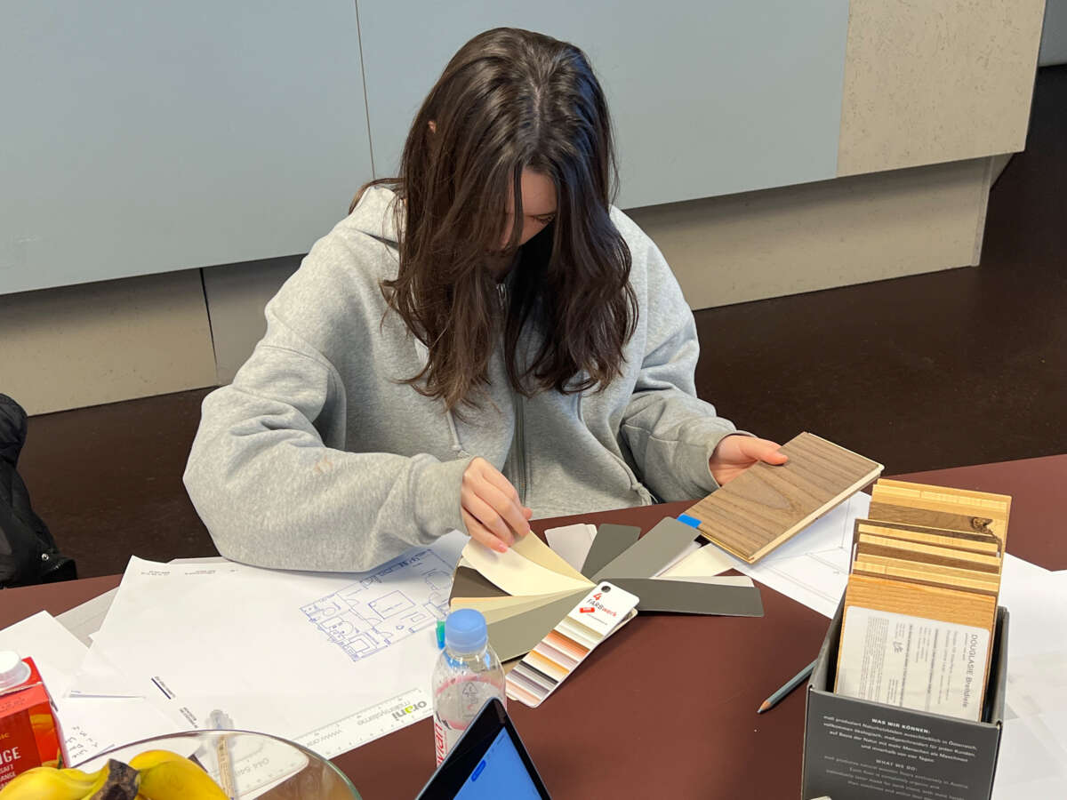 Die Welt ist aus den Fugen und dennoch gibt es Grund zur Hoffnung: Gestern wollten zehn Mädchen und vier Jungs Einblick in unseren Alltag gewinnen – so viele wie noch nie! Nachdem die ersten, finanziellen Fragen geklärt waren (Wieviel verdient man als Architekt:in?) ging es direkt in medias res: Entwerfe Dein Traumhaus mit Farb- und Materialkonzept.
